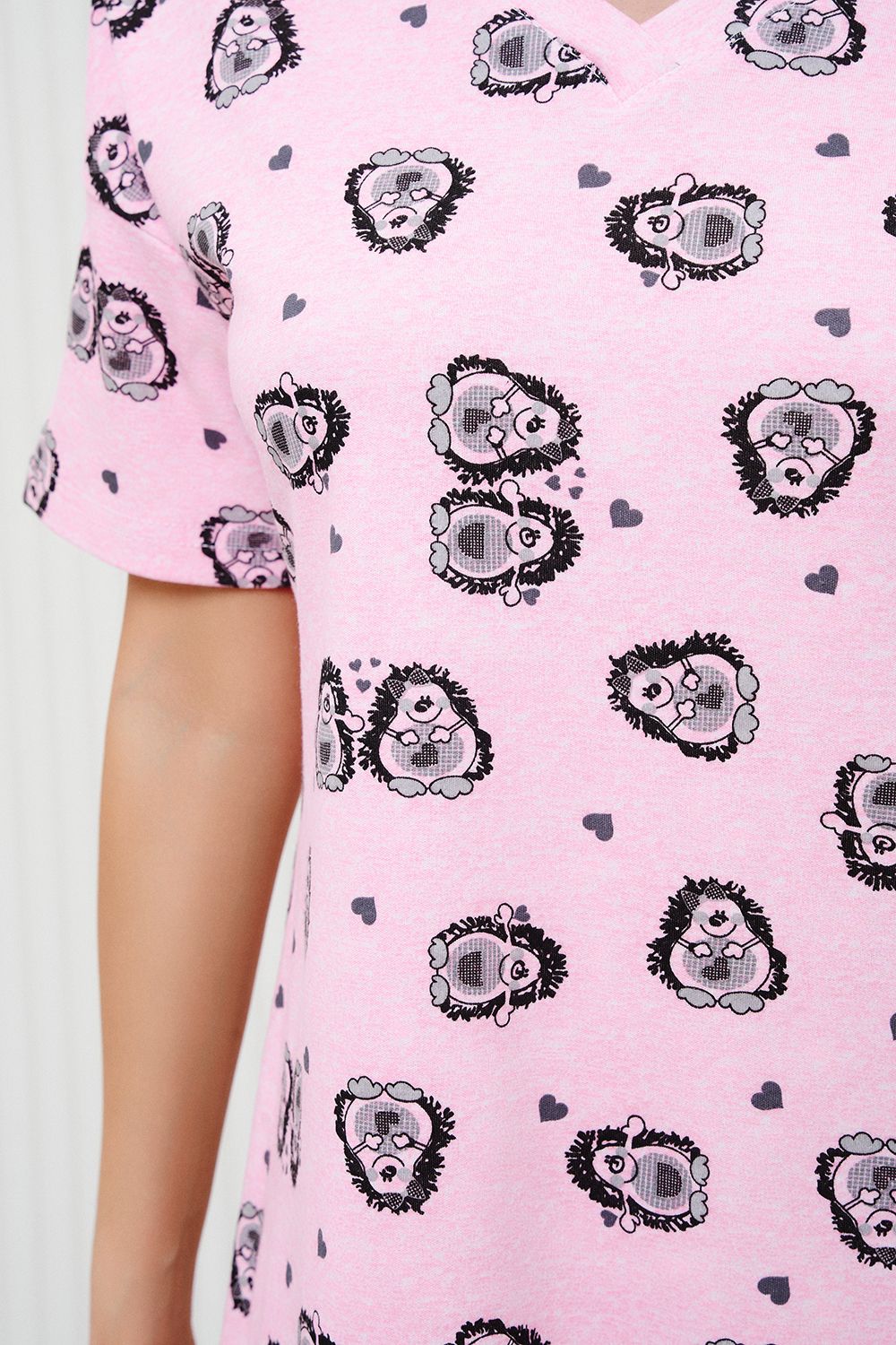 Туника прямого силуэта, с V-образной горловиной. Рукав короткий. Спинка с кокеткой. В нижней части боковых швов обработаны разрезы. Горловина обработана обтачкой из основного полотна.