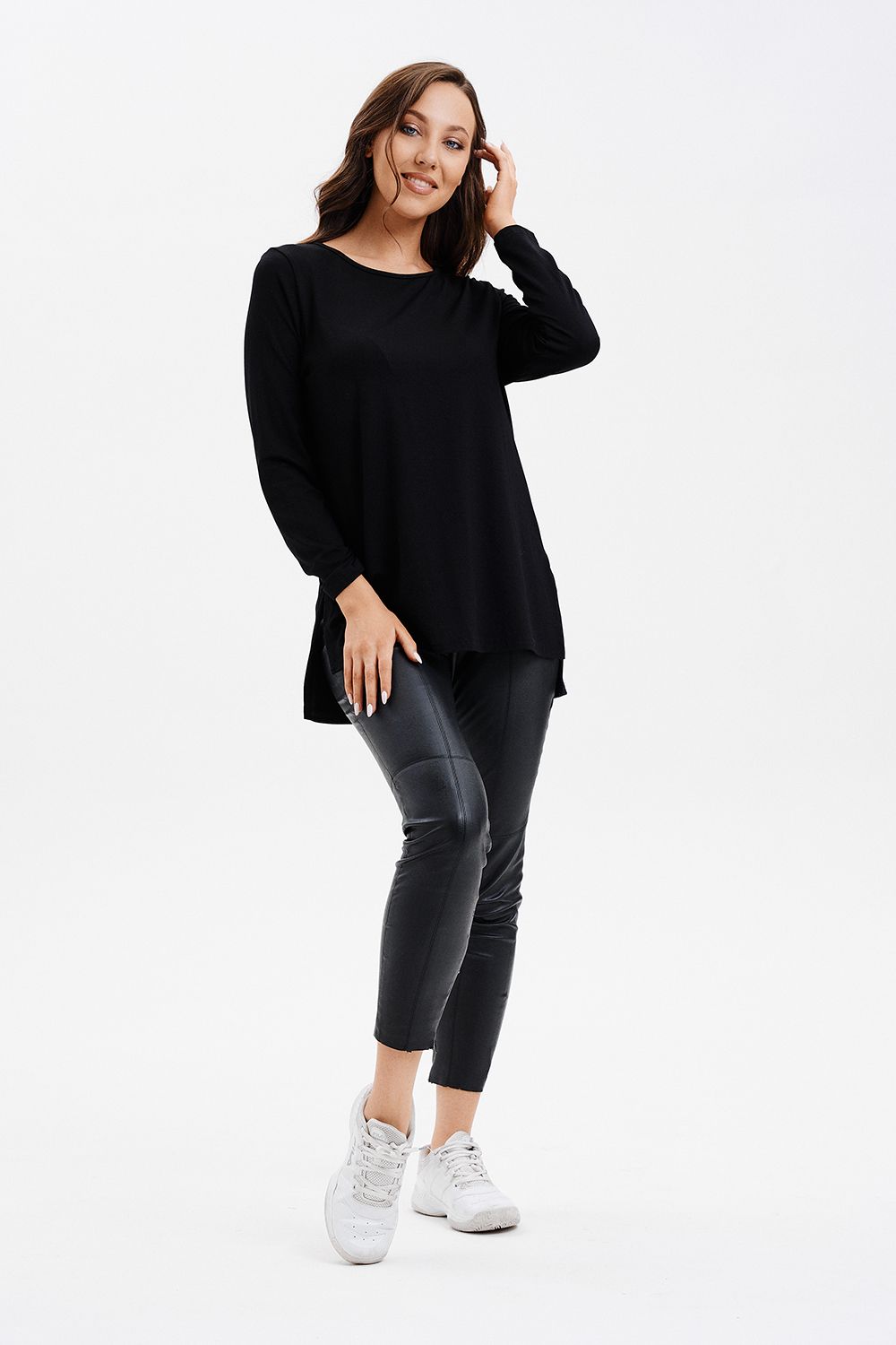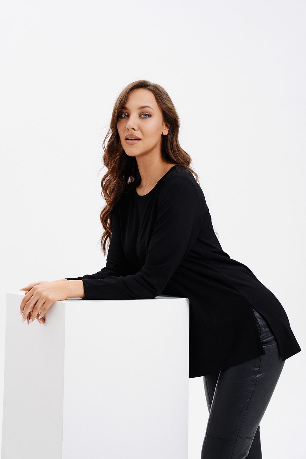Туника прямого силуэта, с округлой горловиной, с разрезами в нижней части боковых швов. Спинка с кокеткой, удлиненная. Рукав втачной, длинный. Горловина обработана бейкой из основного полотна.