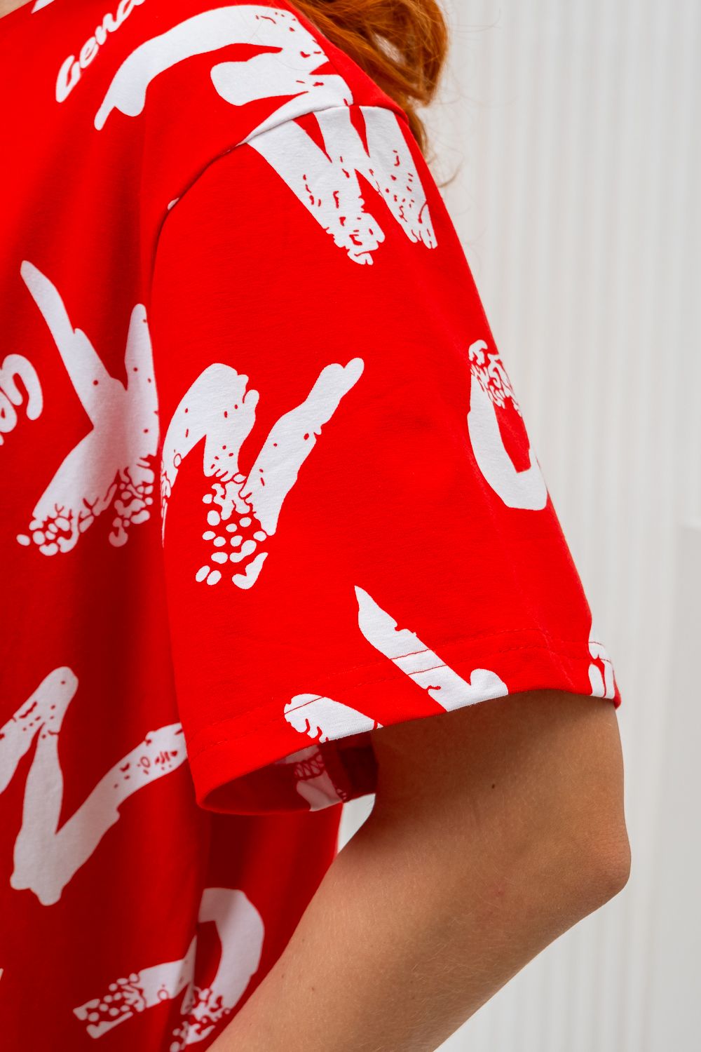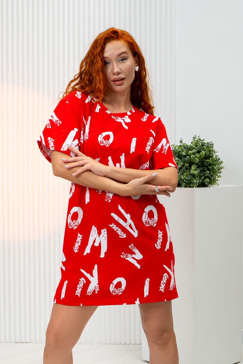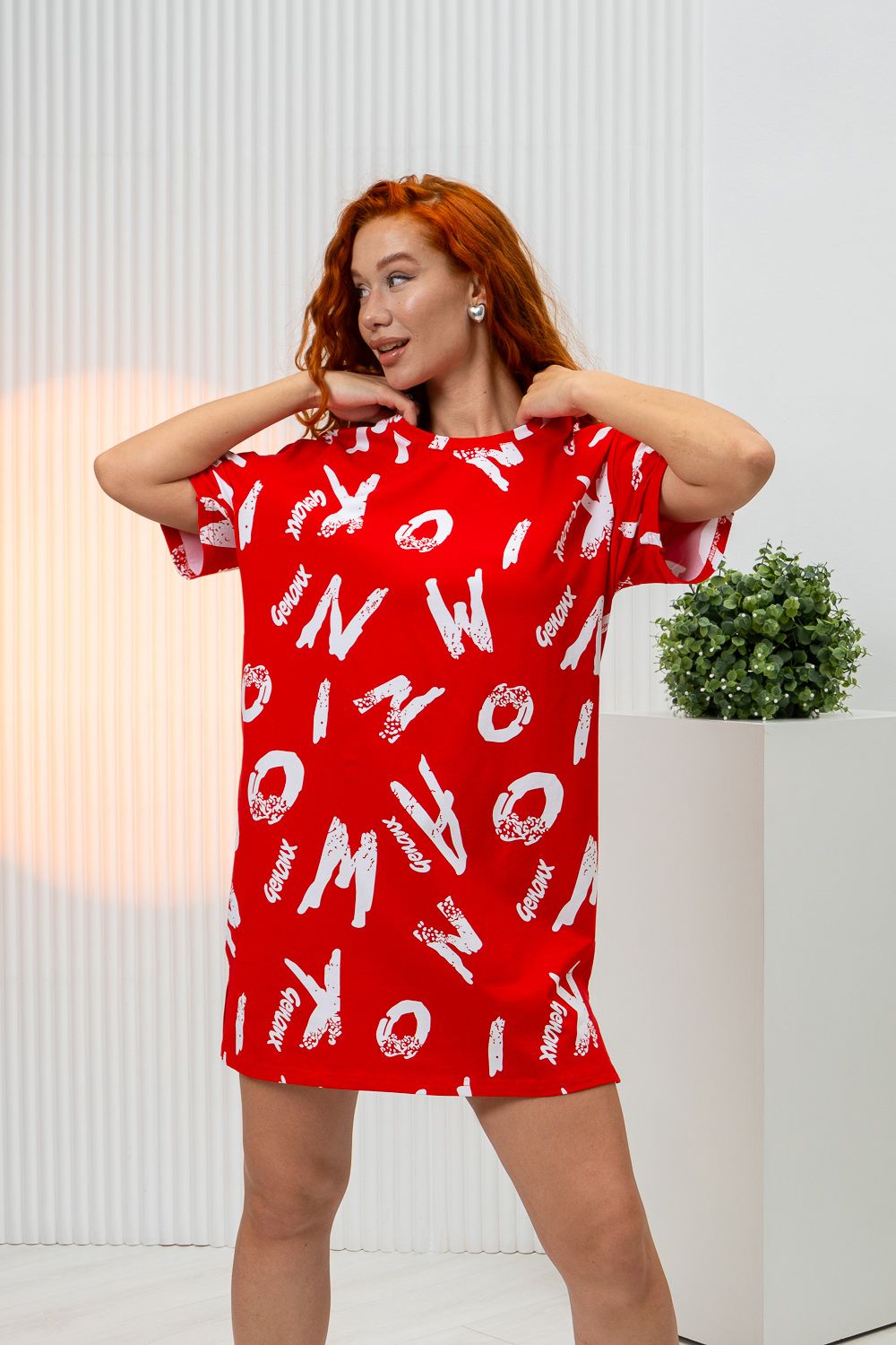 Туника-футболка в стиле "оверсайз". Прямая, свободная, длиной выше колена, с округлой горловиной. Рукав короткий. Горловина обработана обтачкой из основного полотна.