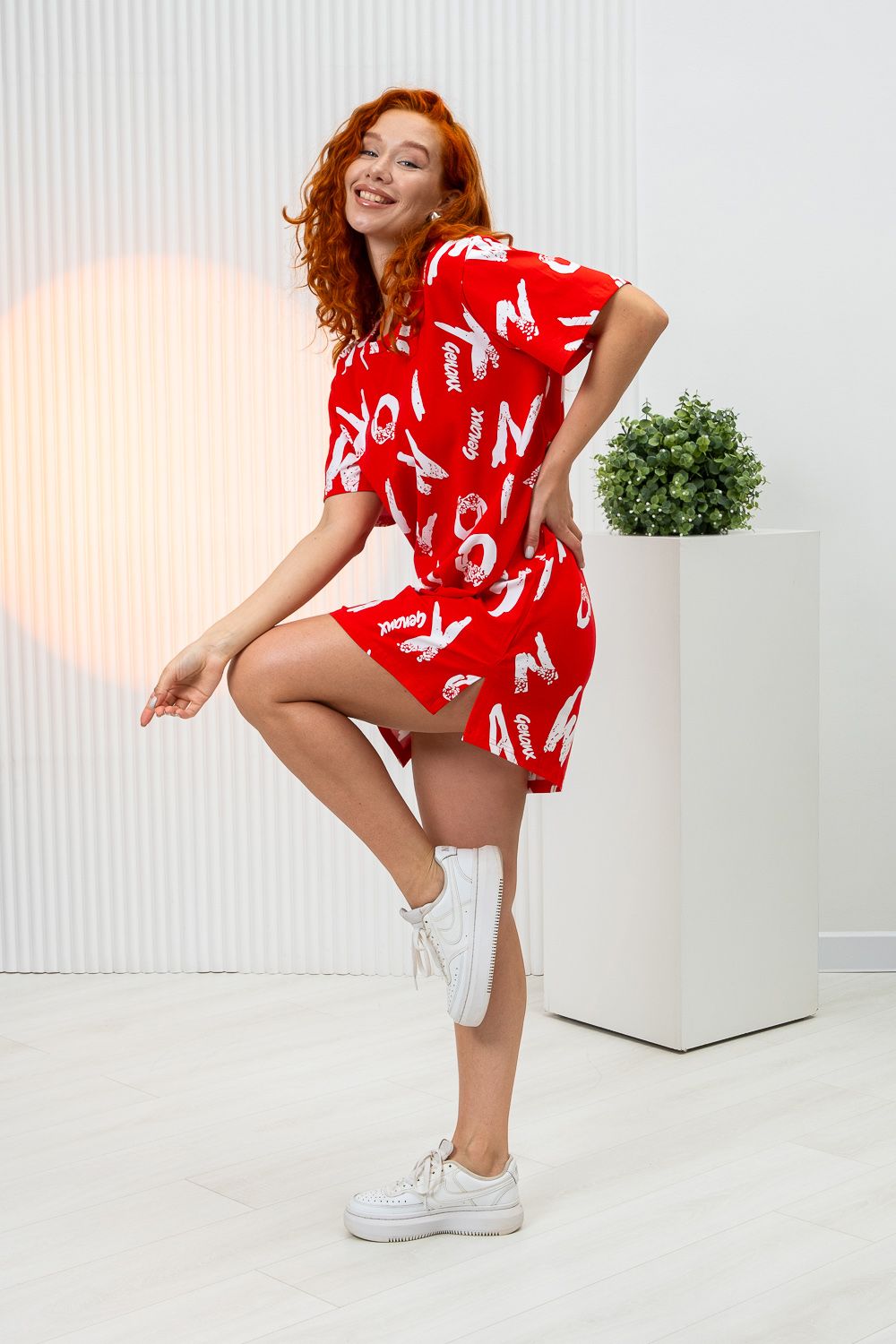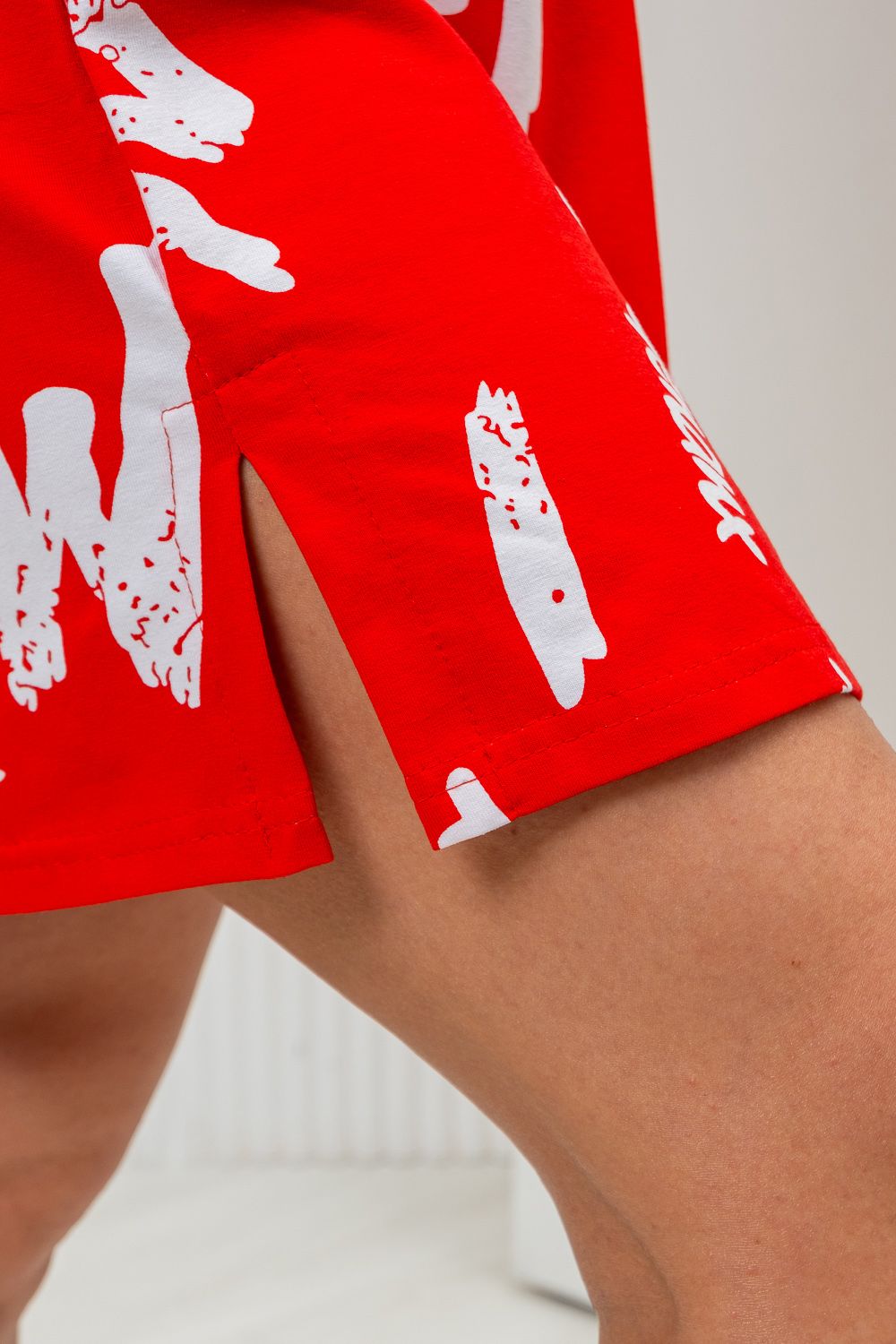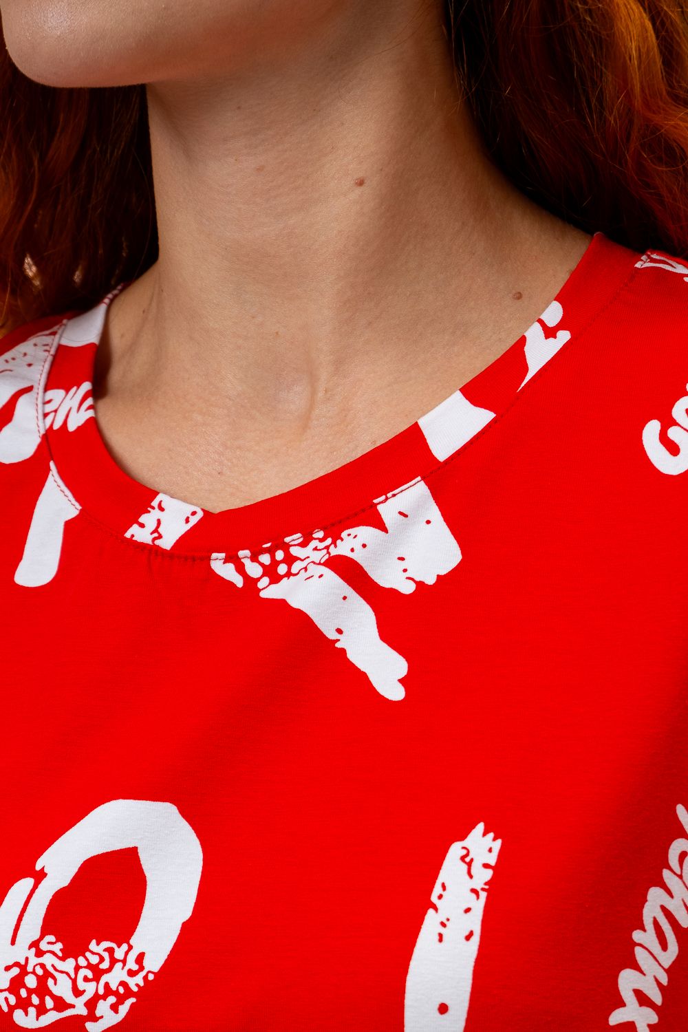 Туника-футболка в стиле "оверсайз". Прямая, свободная, длиной выше колена, с округлой горловиной. Рукав короткий. Горловина обработана обтачкой из основного полотна.