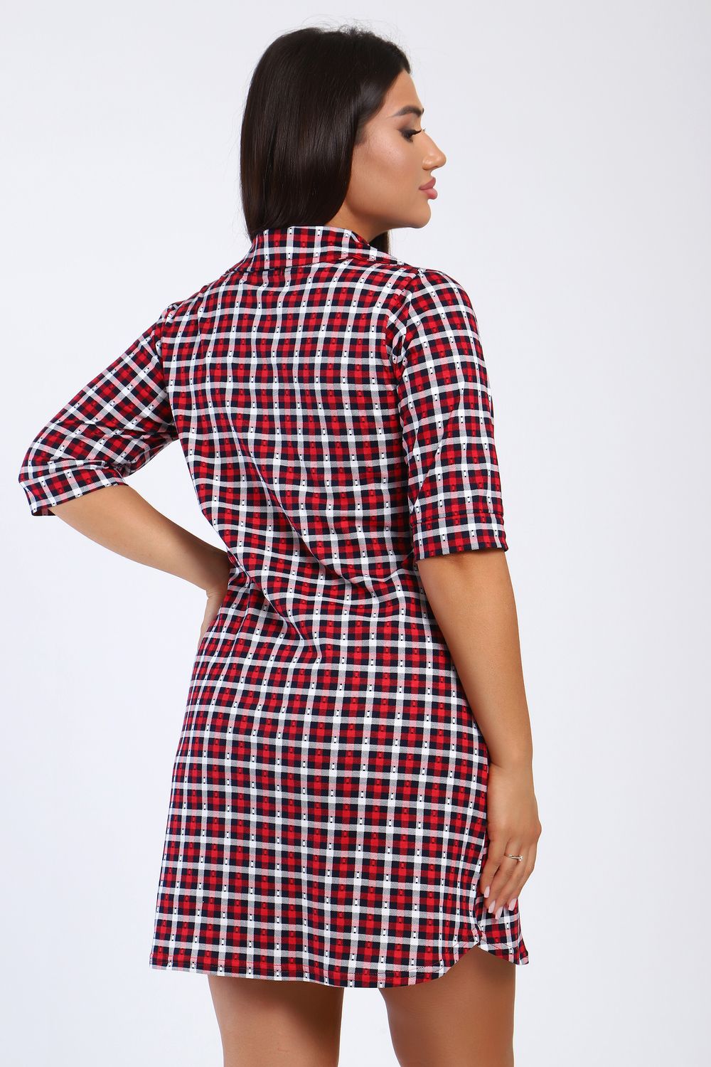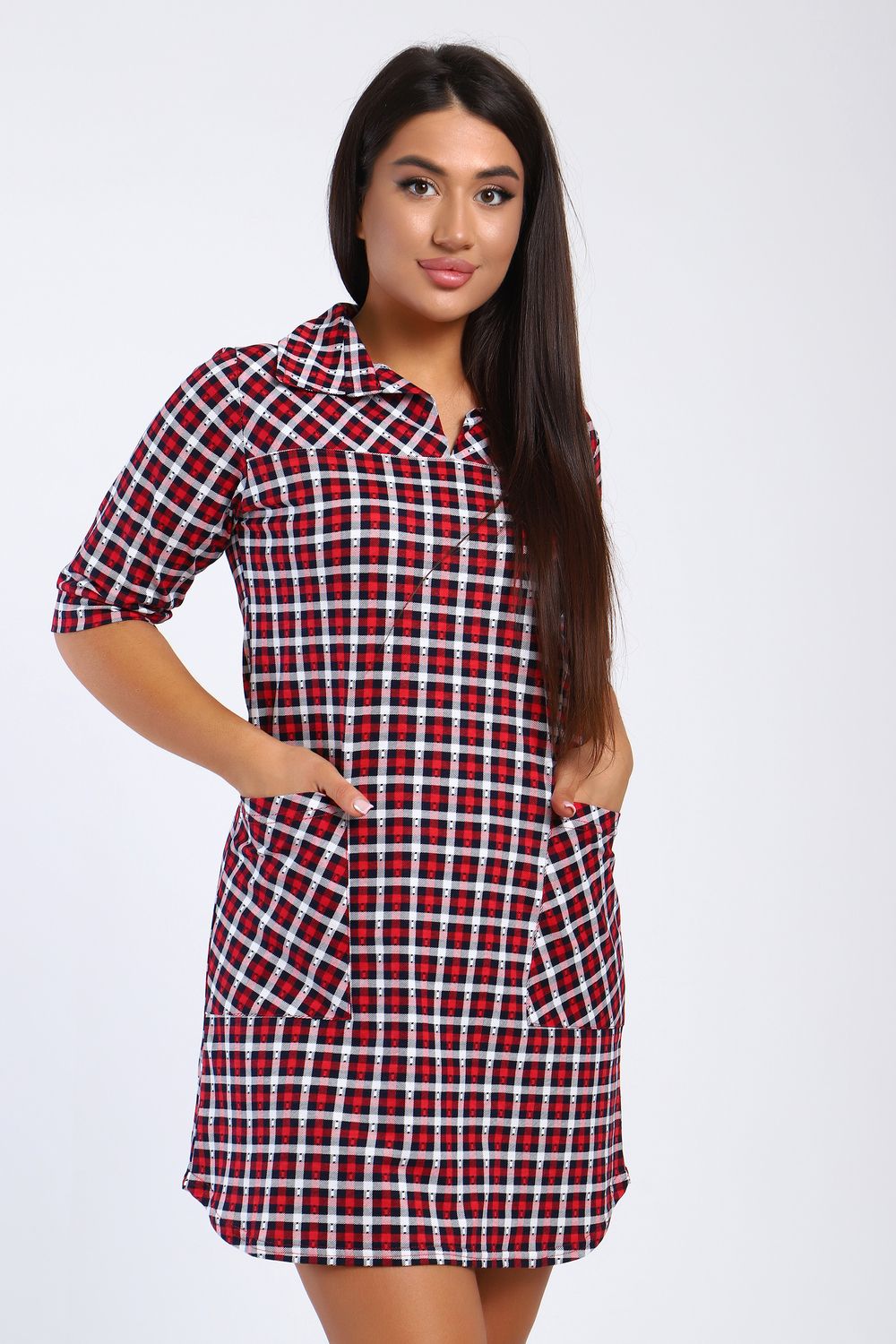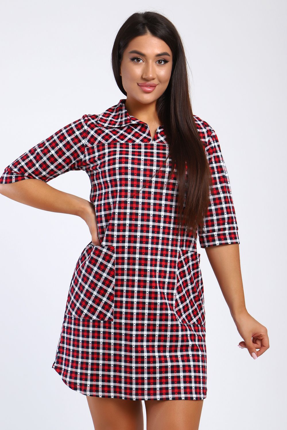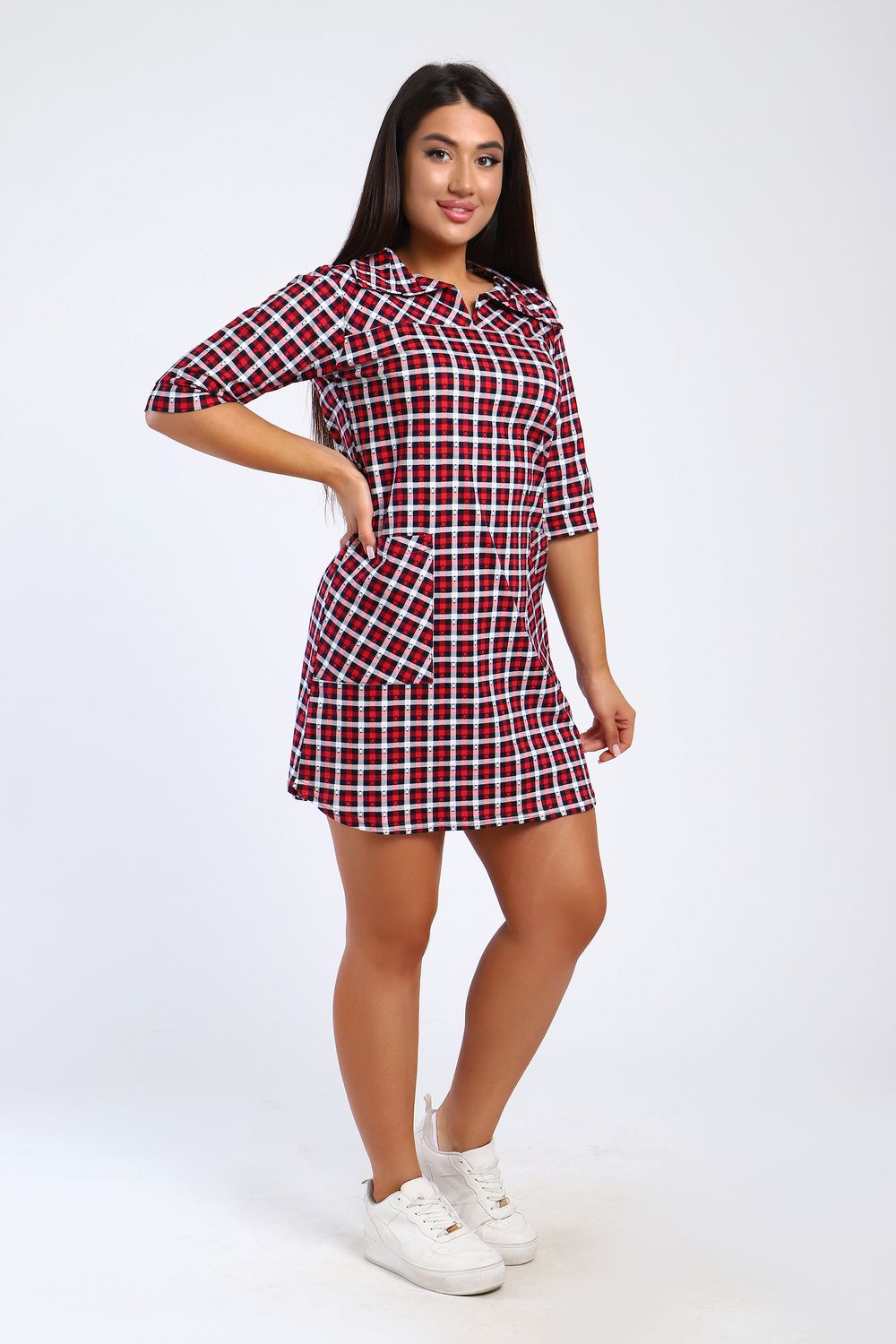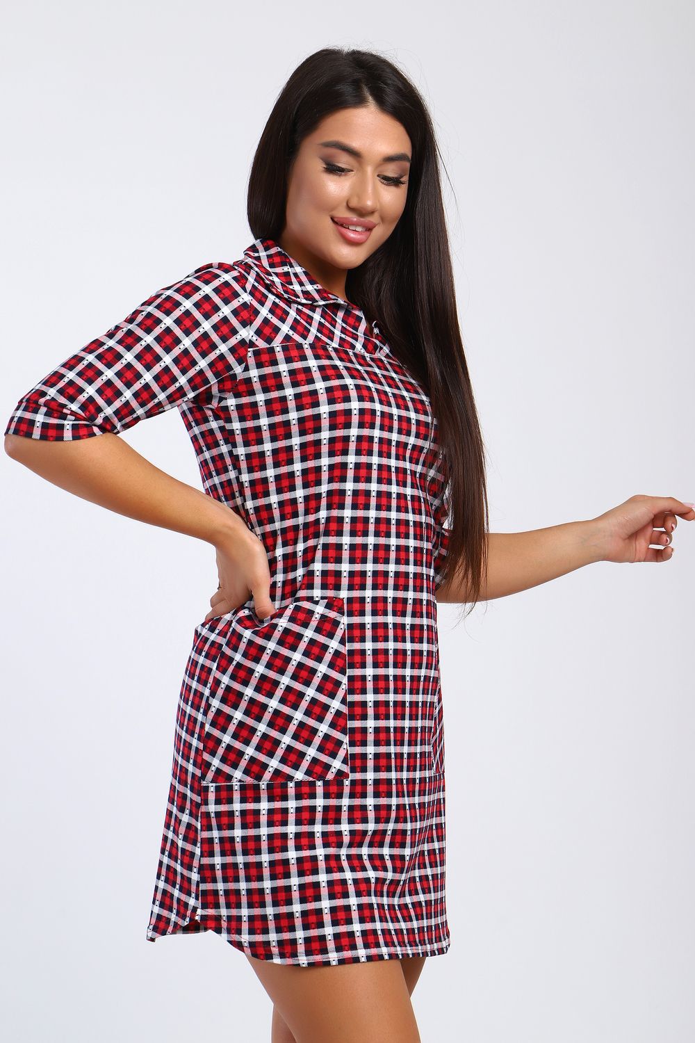 Туника женская полуприлегающего силуэта. На полочке кокетка, накладной карман. Воротник рубашечный на стойке. Рукав 3/4 на манжете. Низ изделия закруглен к боковому шву. Туника прекрасно подойдет для дома, дачи и отдыха.