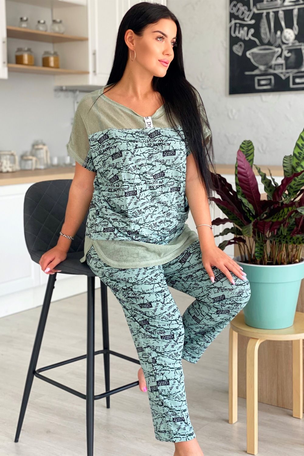 Туника женская прямого силуэта. Рукав цельнокроенный. Кокетка полочки и спинки, низ туники из оливковой хлопковой сетки. В среднем горизонтальном шве полочки два внутренних удобных кармана. В центре кокетка полочки собрана на серебряную тесьму.