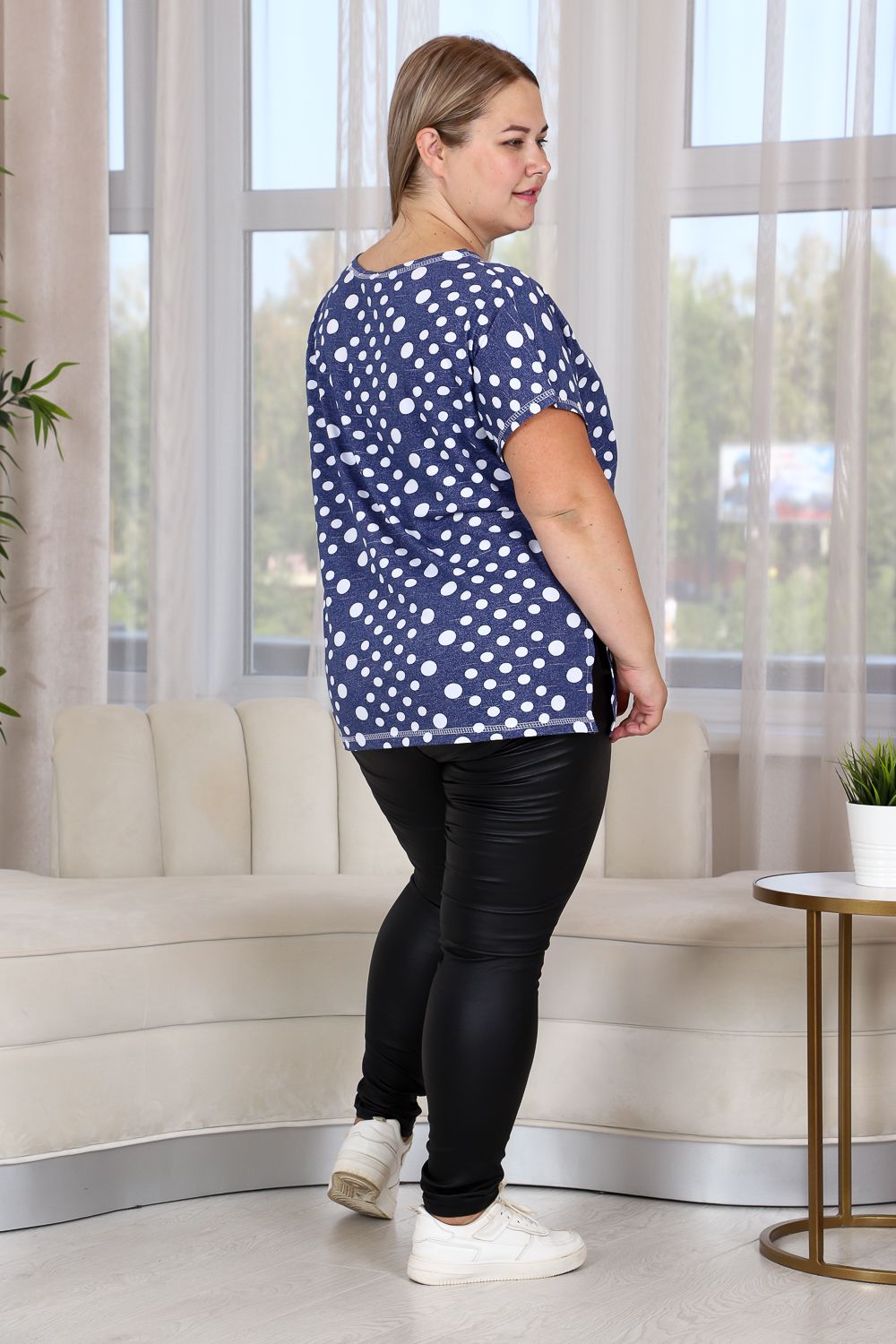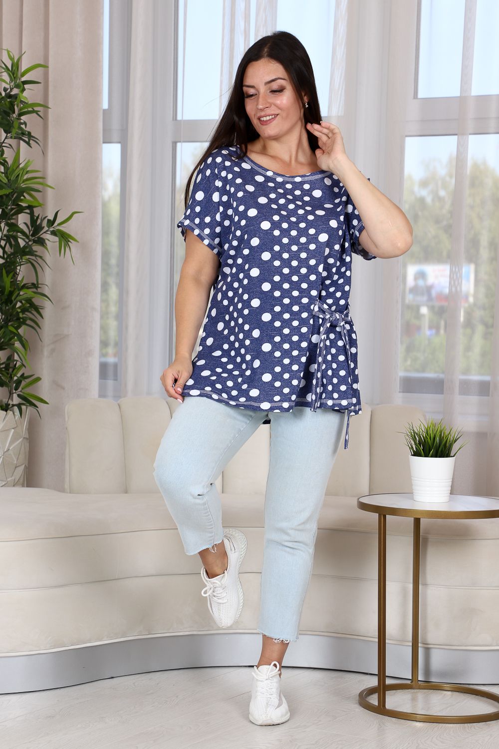 Туника женская, прямого силуэта. Рукав короткий цельнокроенный. Низ изделия регулируется двумя завязками, по боковым швам разрезы