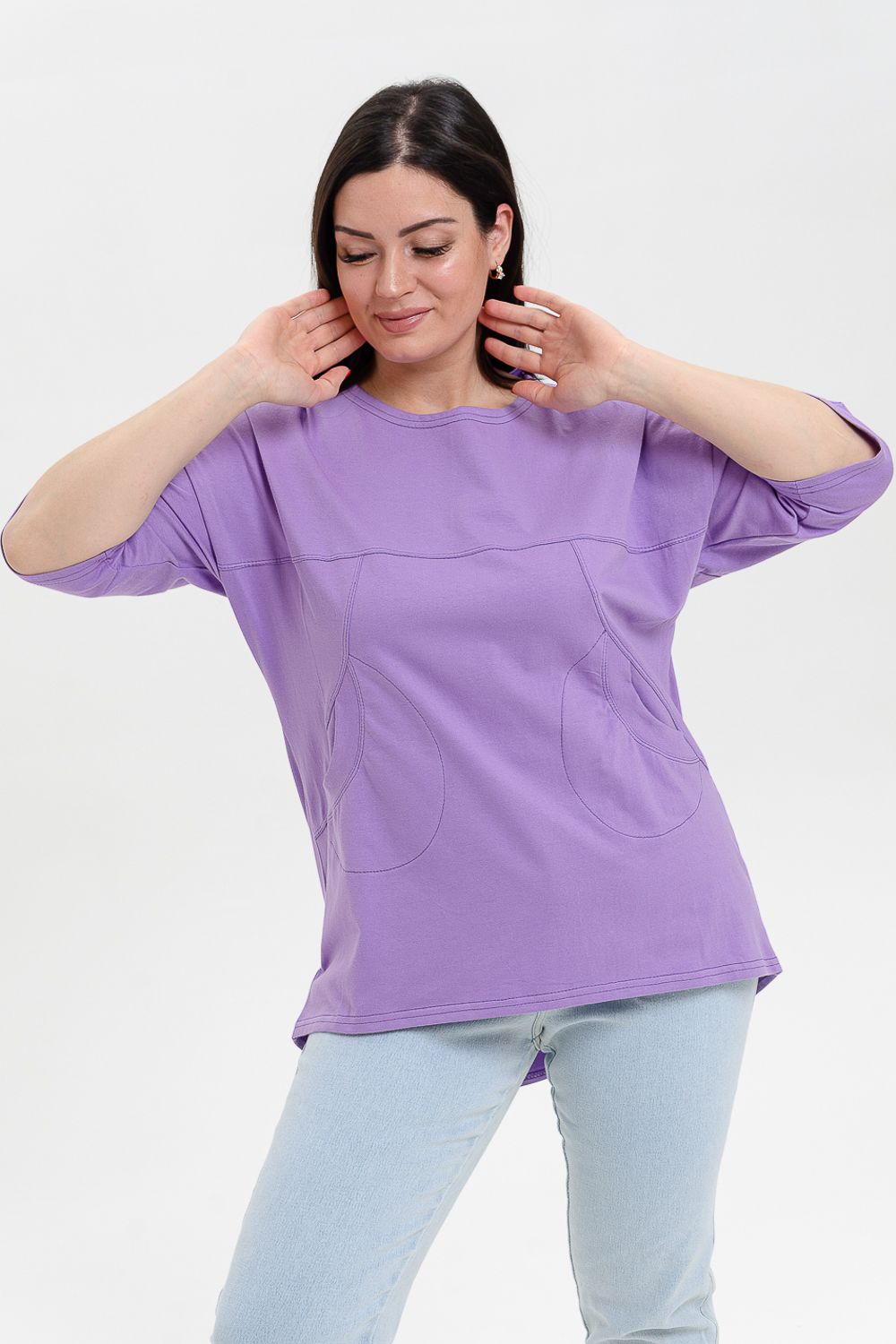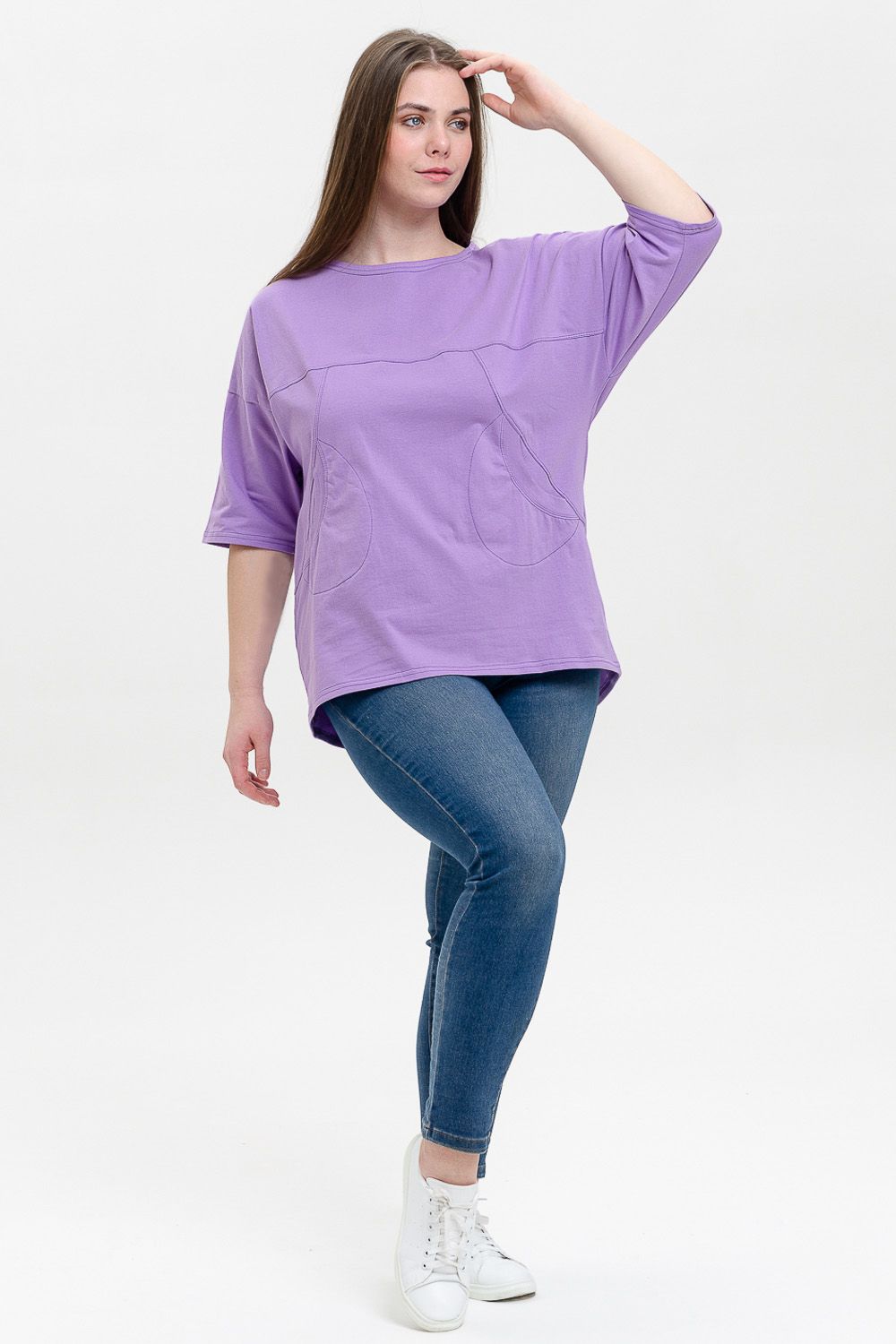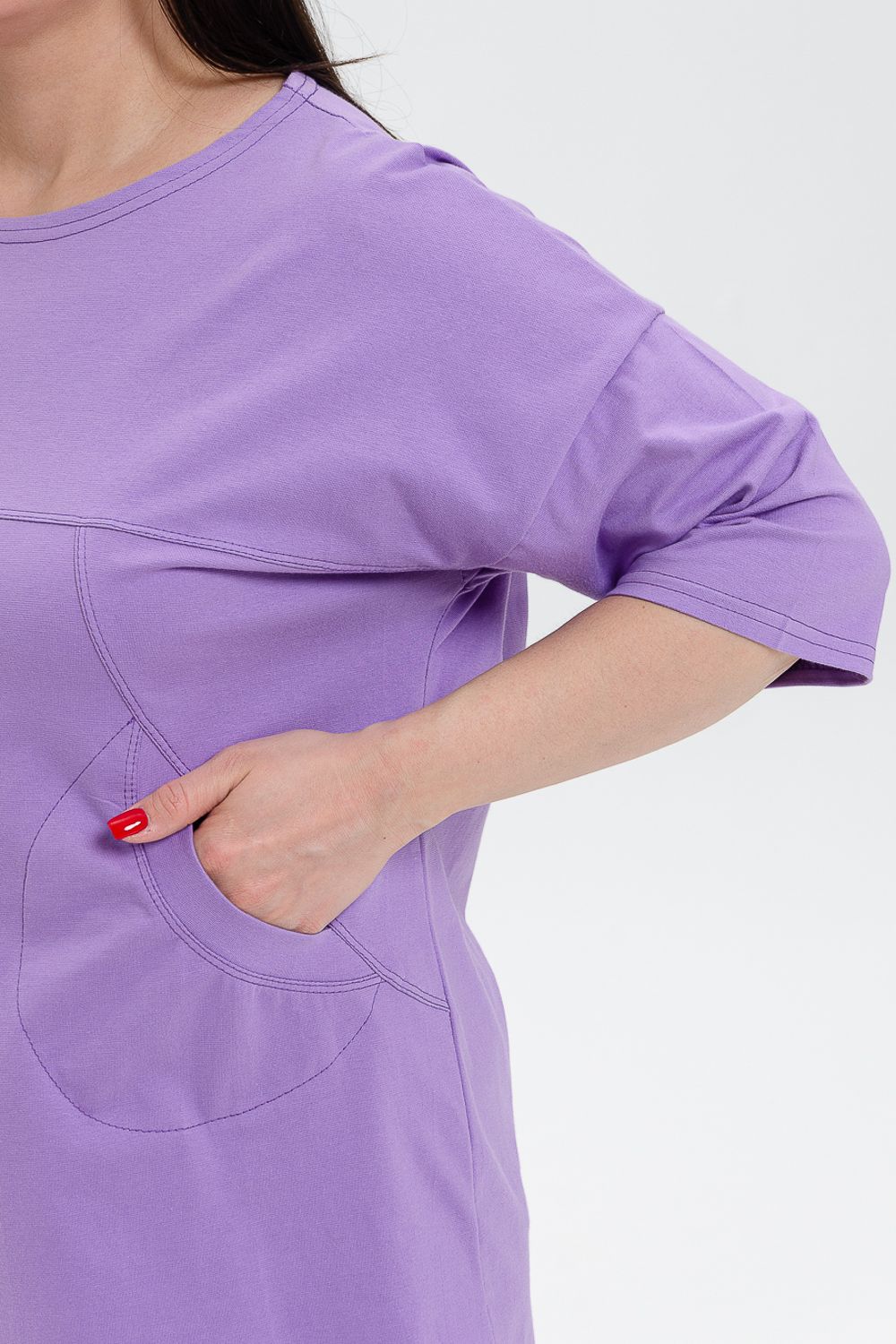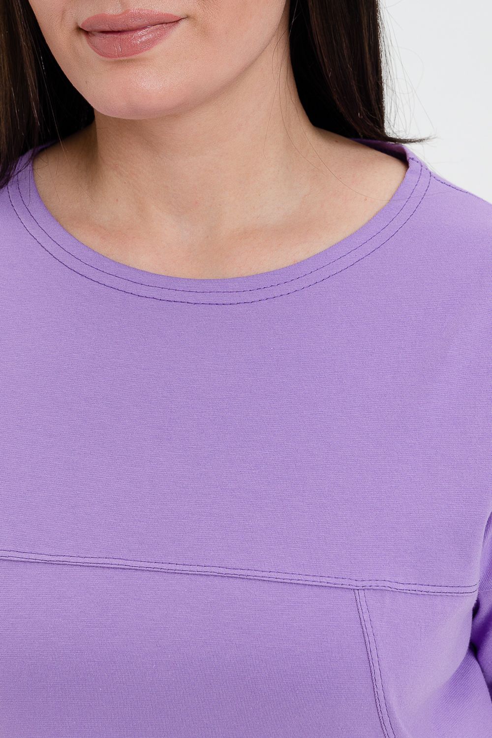 Туника женская полуприлегающего силуэта. Горловина округлая. Рукав цельнокроенный со швом, 3/4. На полочке кокетка. Внутренний карман с обтачкой в фигурном шве притачивания боковой части полочки к нижней части полочки. Спинка длиннее полочки.