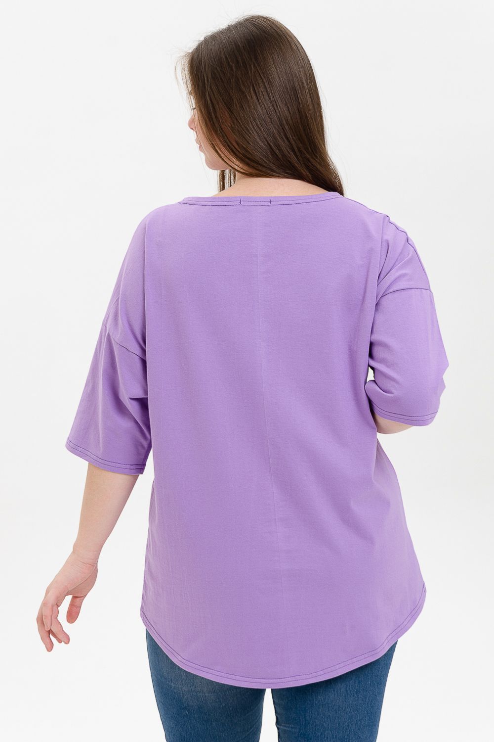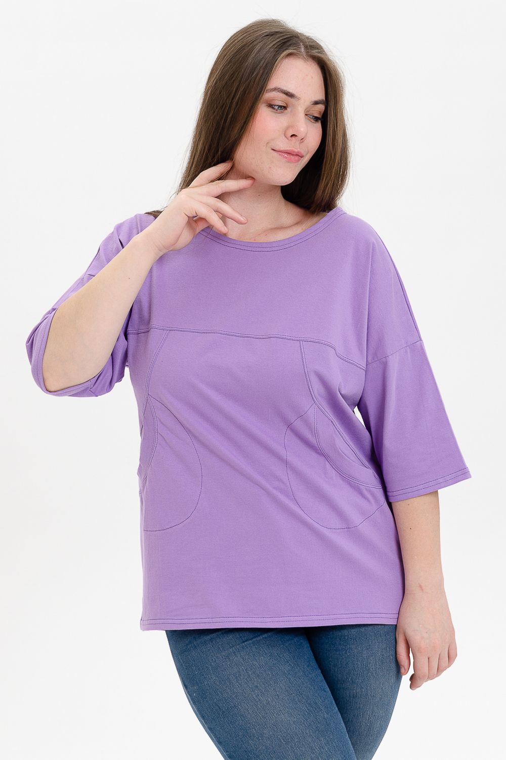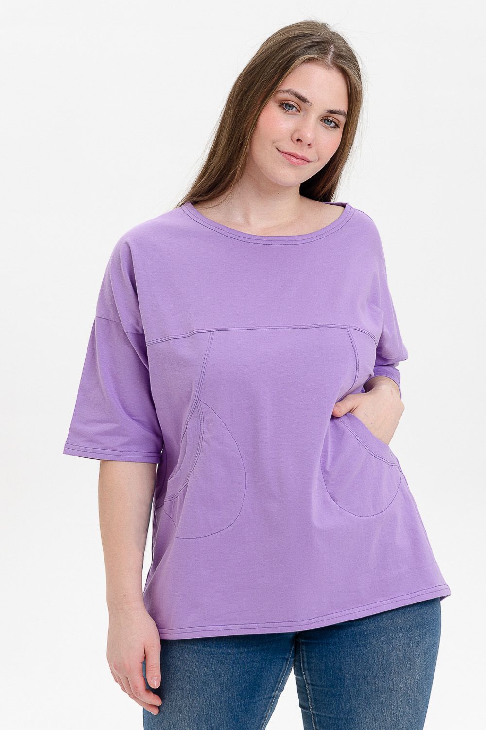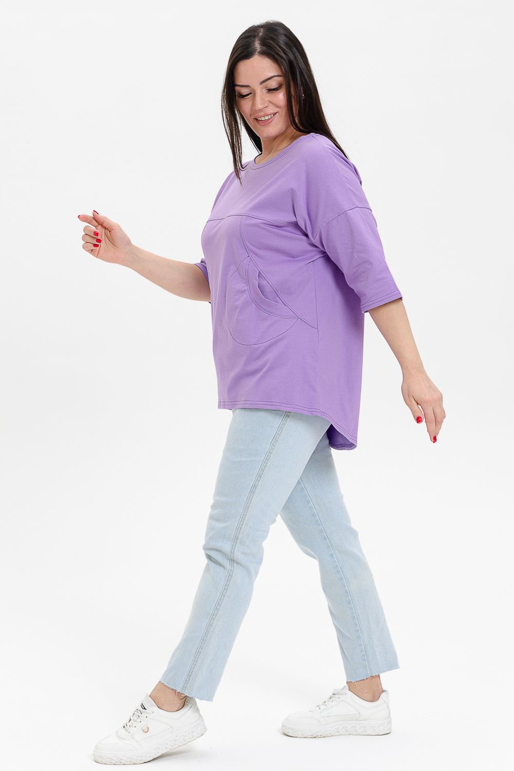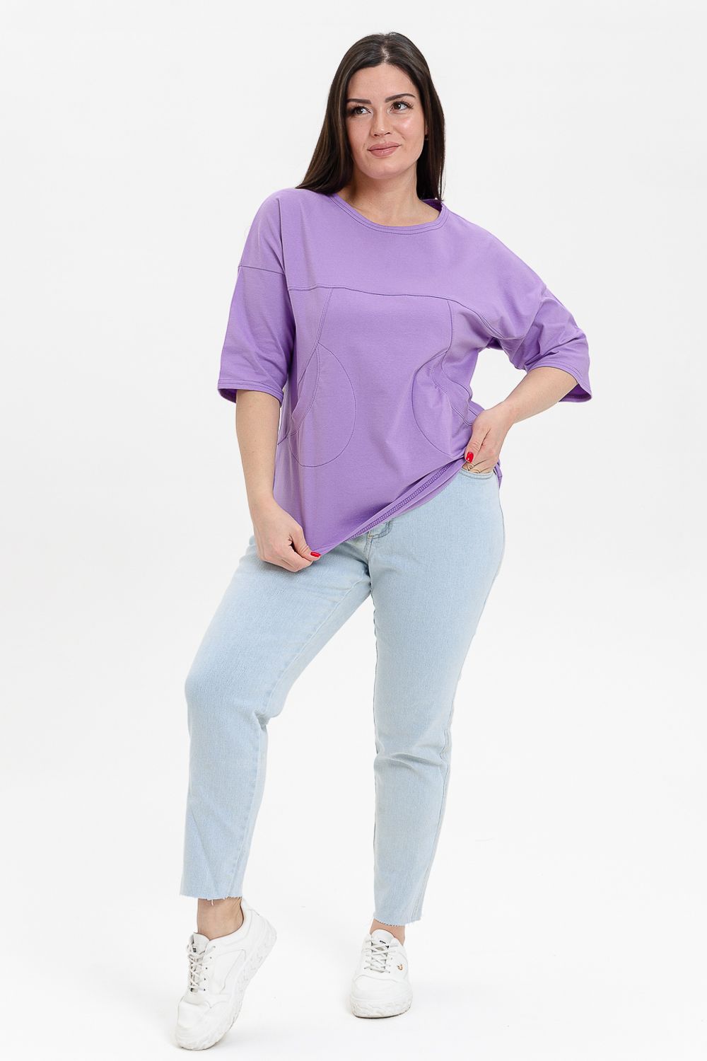 Туника женская полуприлегающего силуэта. Горловина округлая. Рукав цельнокроенный со швом, 3/4. На полочке кокетка. Внутренний карман с обтачкой в фигурном шве притачивания боковой части полочки к нижней части полочки. Спинка длиннее полочки.