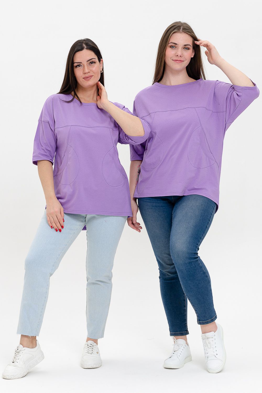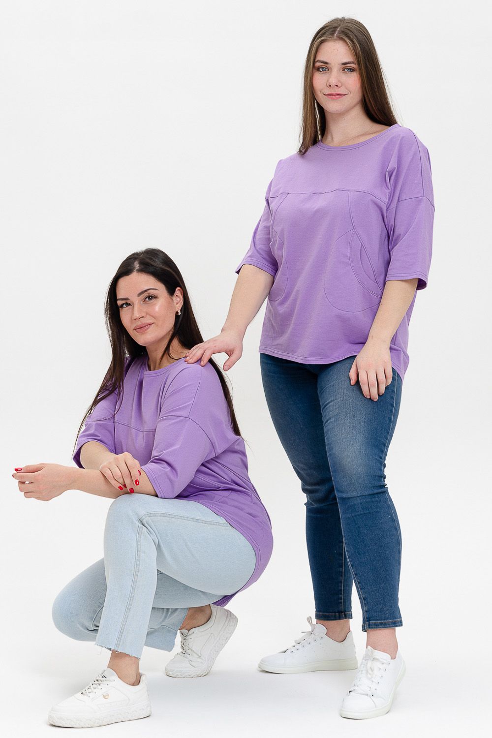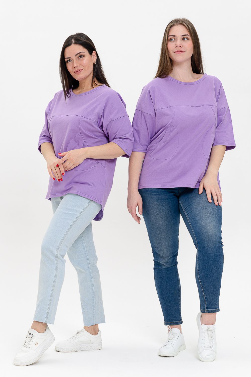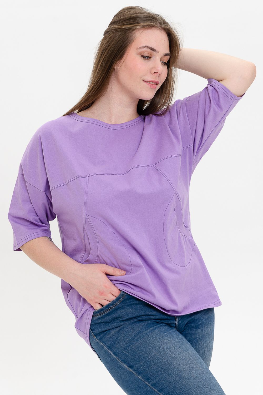 Туника женская полуприлегающего силуэта. Горловина округлая. Рукав цельнокроенный со швом, 3/4. На полочке кокетка. Внутренний карман с обтачкой в фигурном шве притачивания боковой части полочки к нижней части полочки. Спинка длиннее полочки.