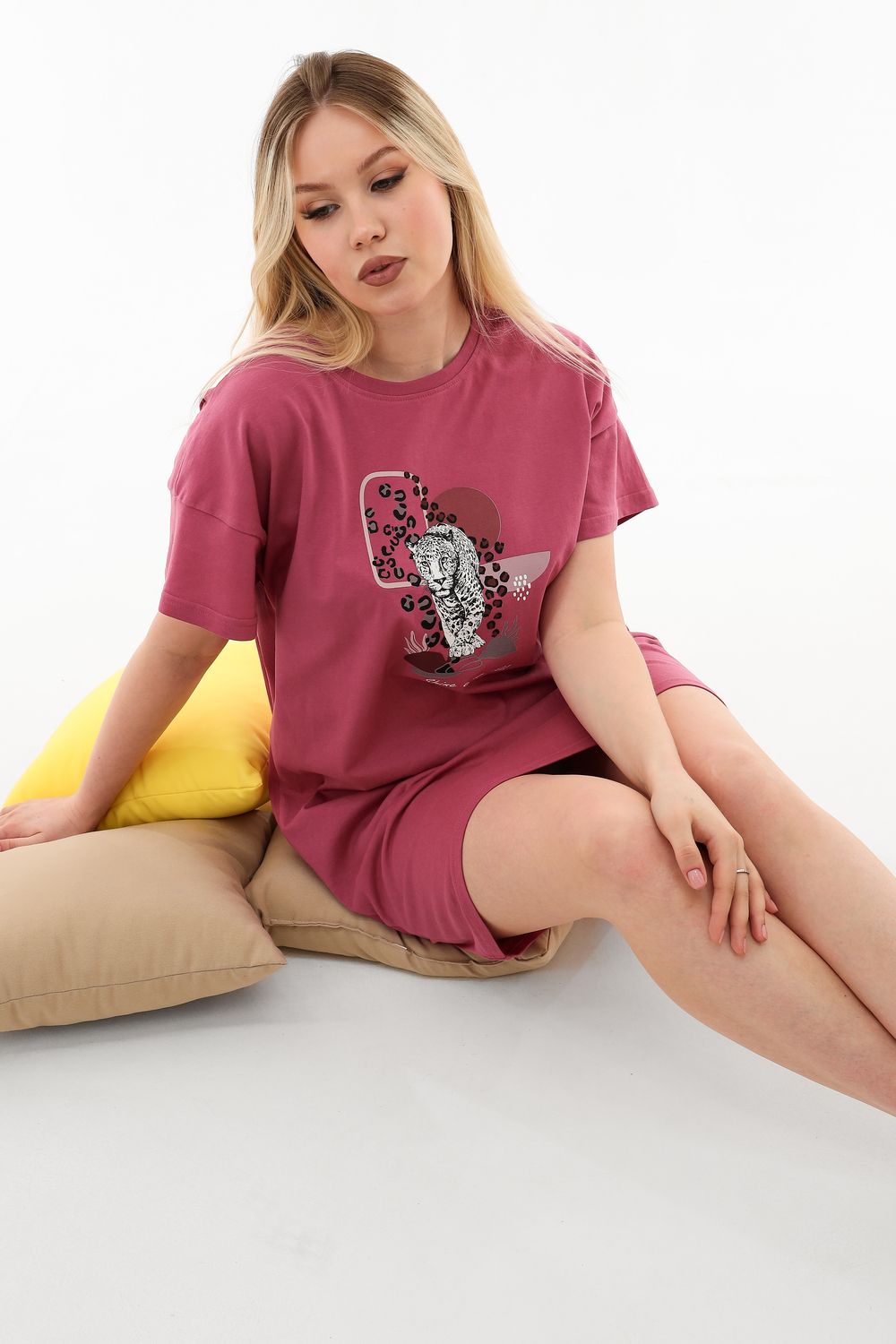 Туника приятно прилегает к телу и позволяет коже дышать. Оптимальная длина, короткие рукава и округлый вырез горловины отлично подойдет для дома и отдыха, дачи и прогулок.