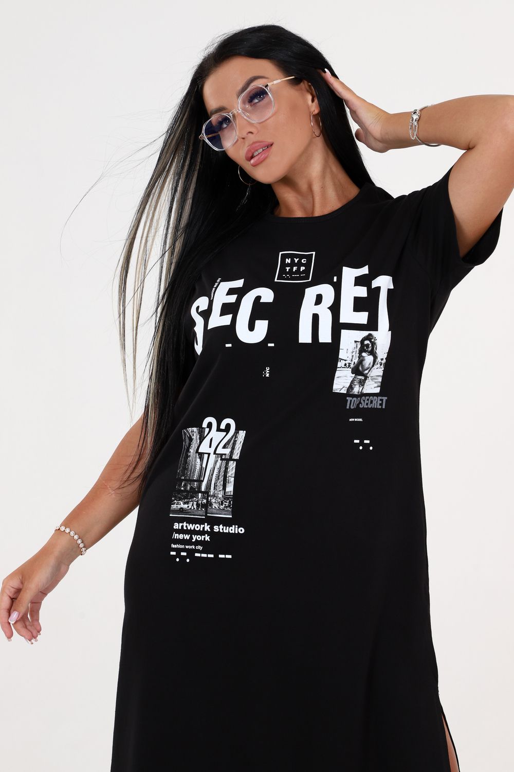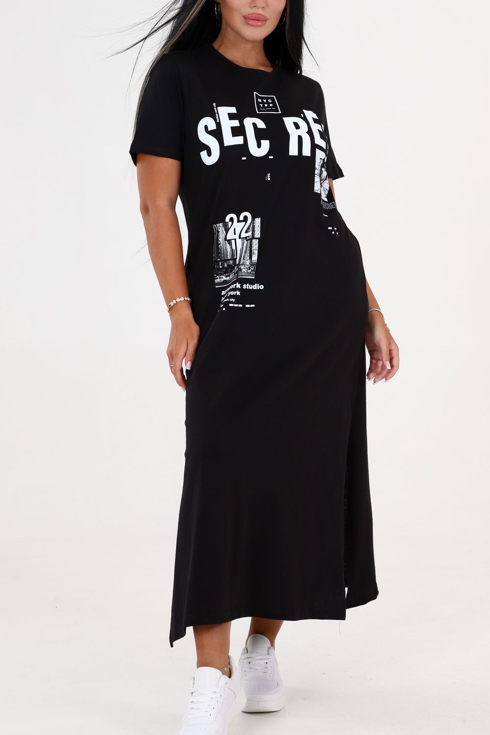 Туника длинная с разрезами 3320-0001-Т-РАЗ - черный,белый