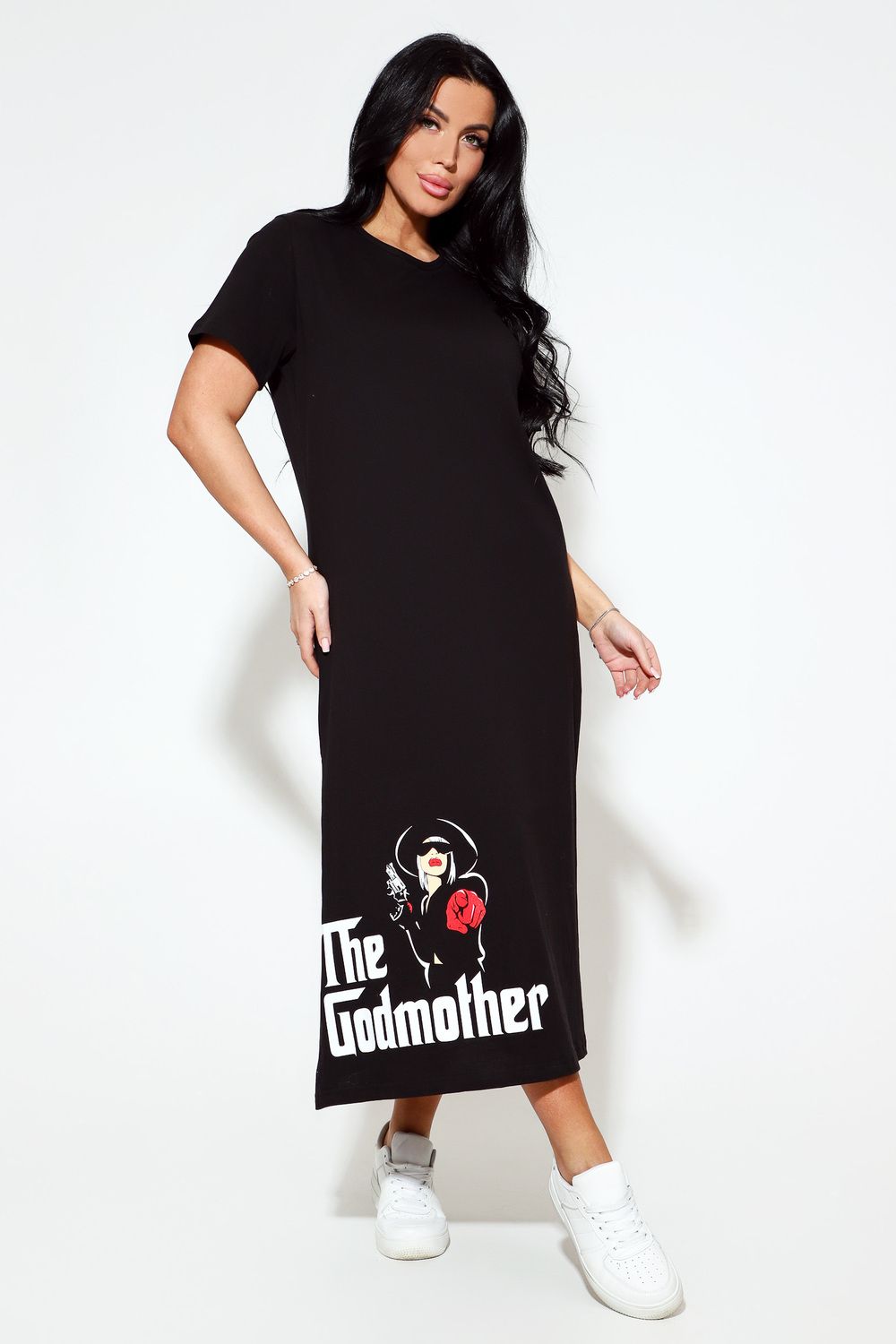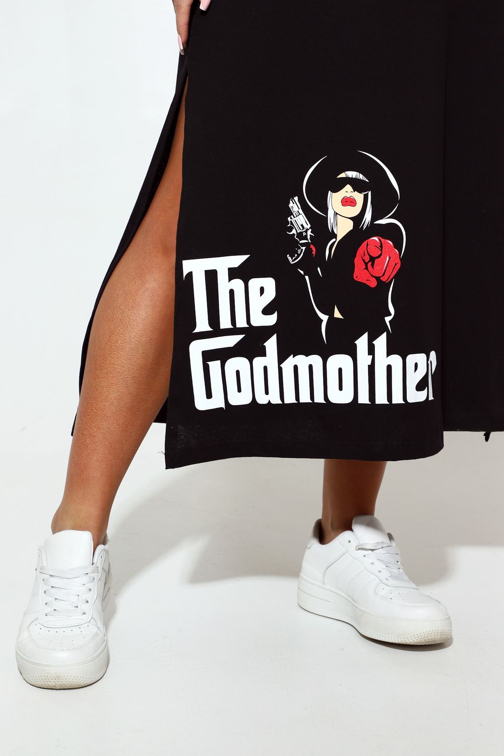 Туника длинная с разрезами 3320-0001-Т-РАЗ - черный+дама