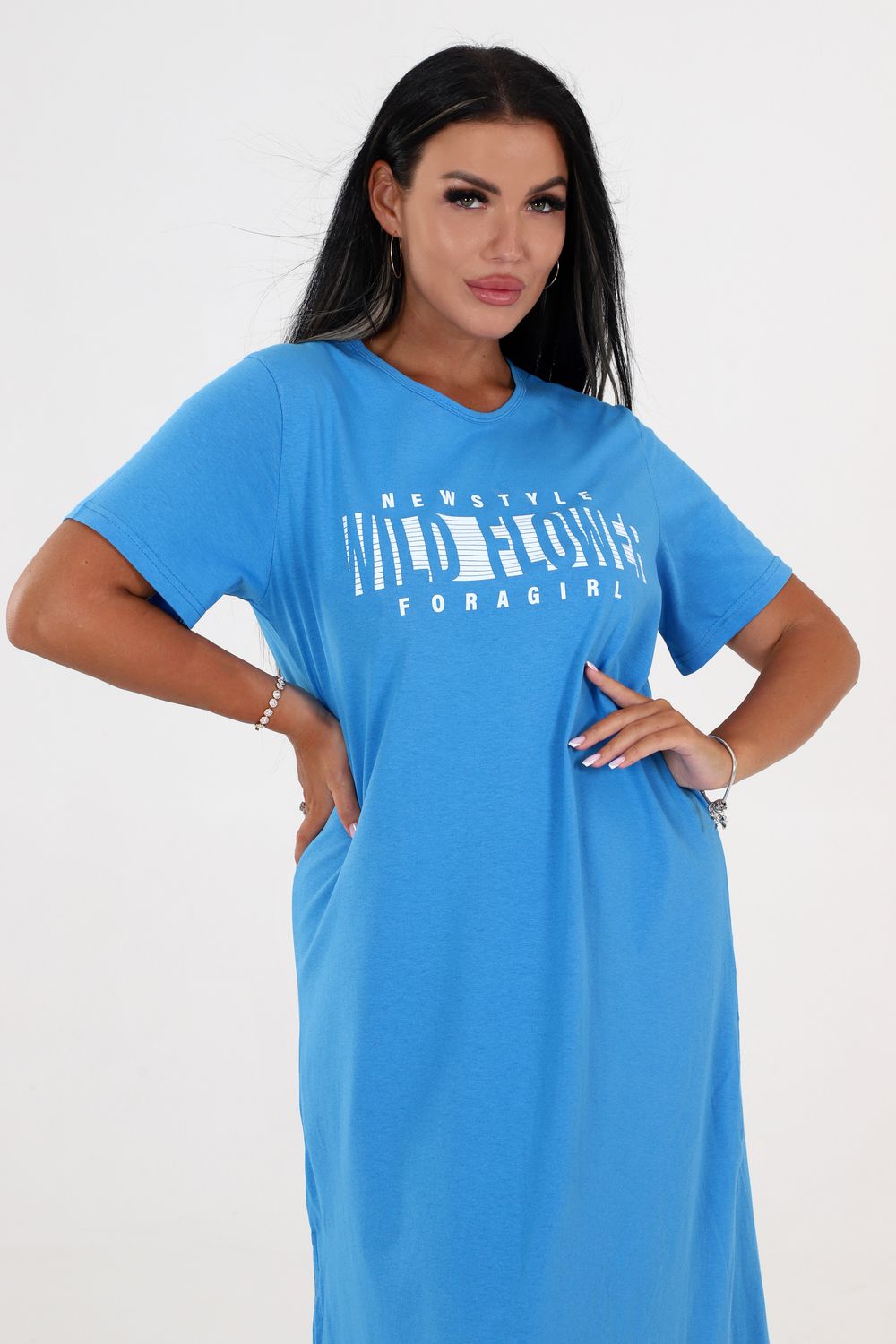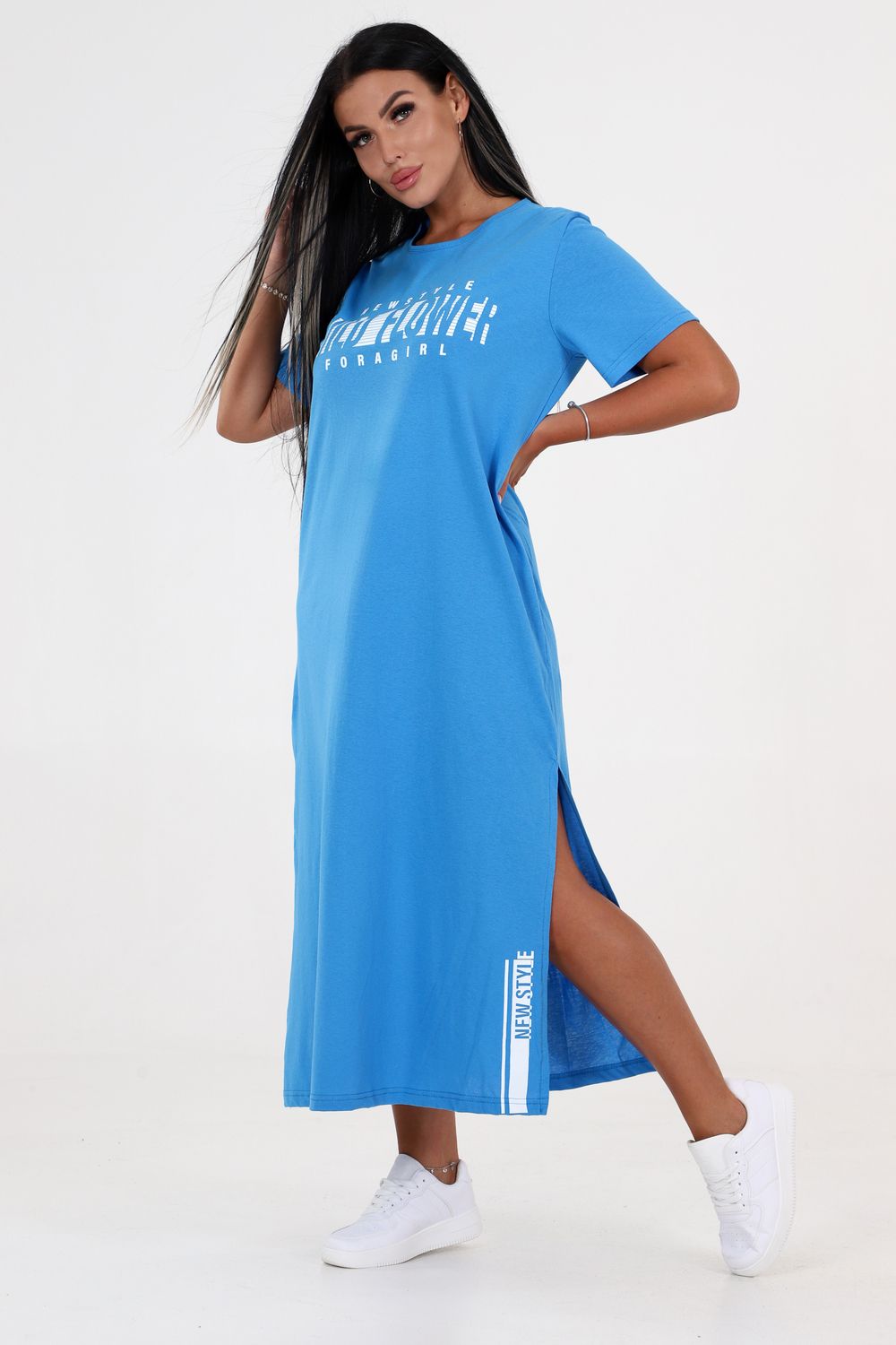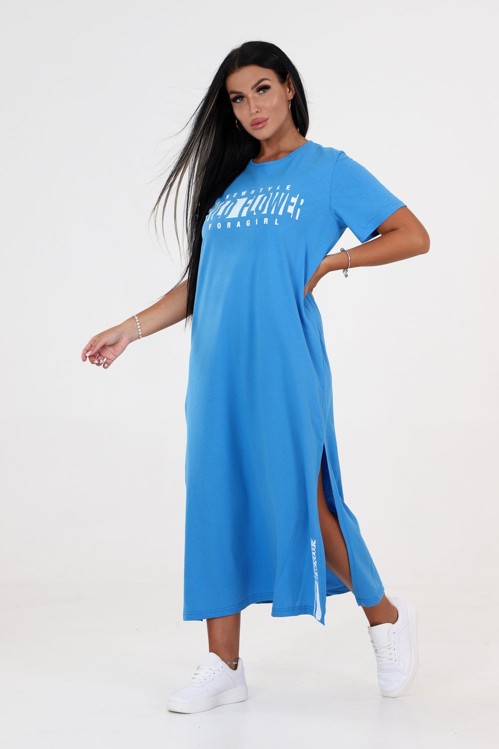 Туника длинная с разрезами 3320-0001-Т-РАЗ - голубой