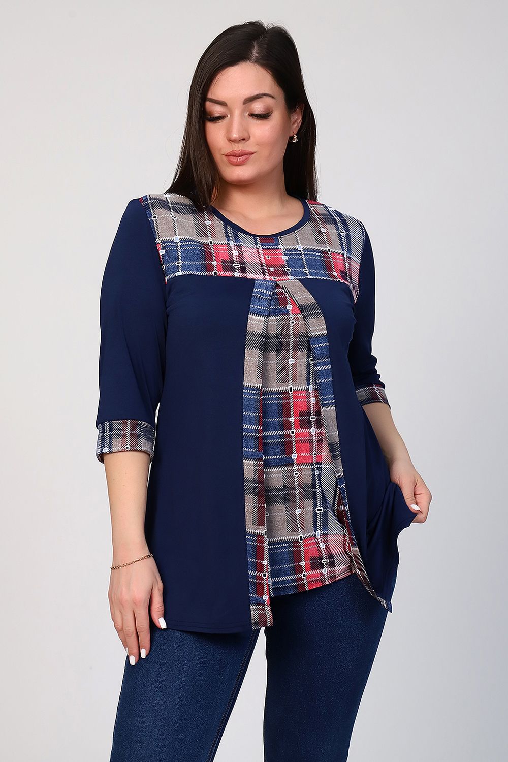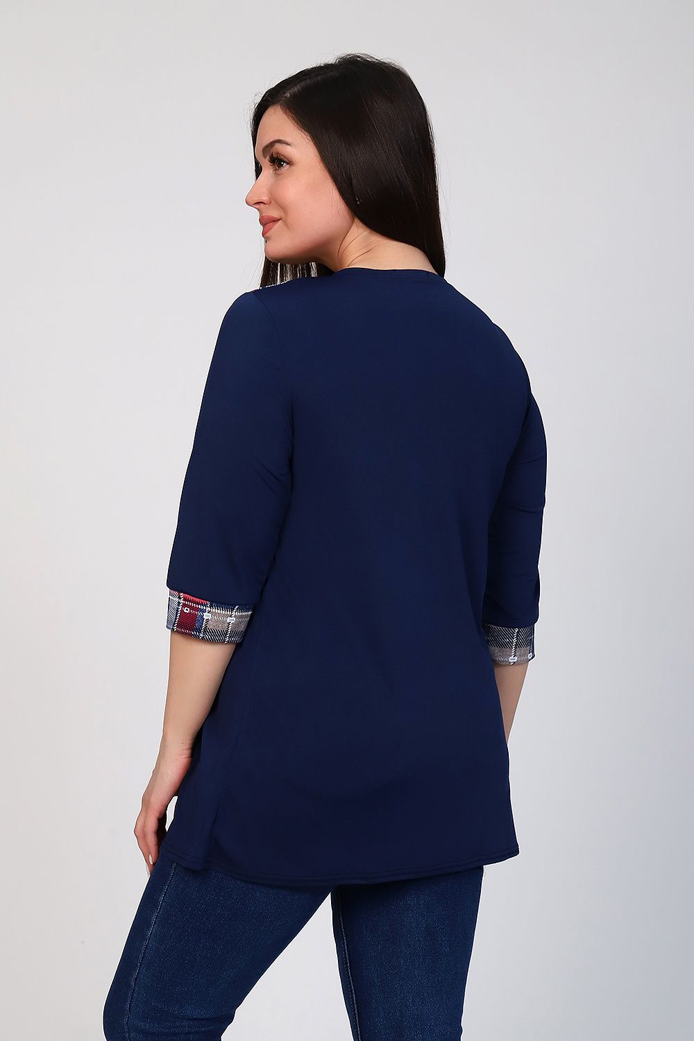 Оригинальная туника с эффектом 2 в 1, круглый вырез отделан окантовкой, рукав 3/4 на манжете. Очень удобная и скроет все недостатки.