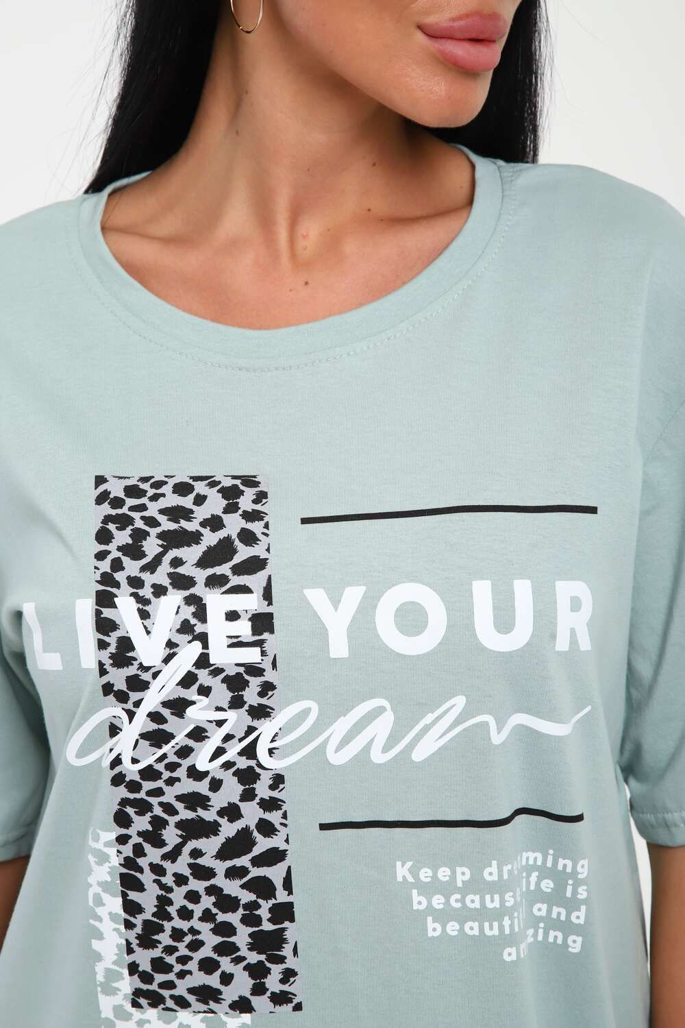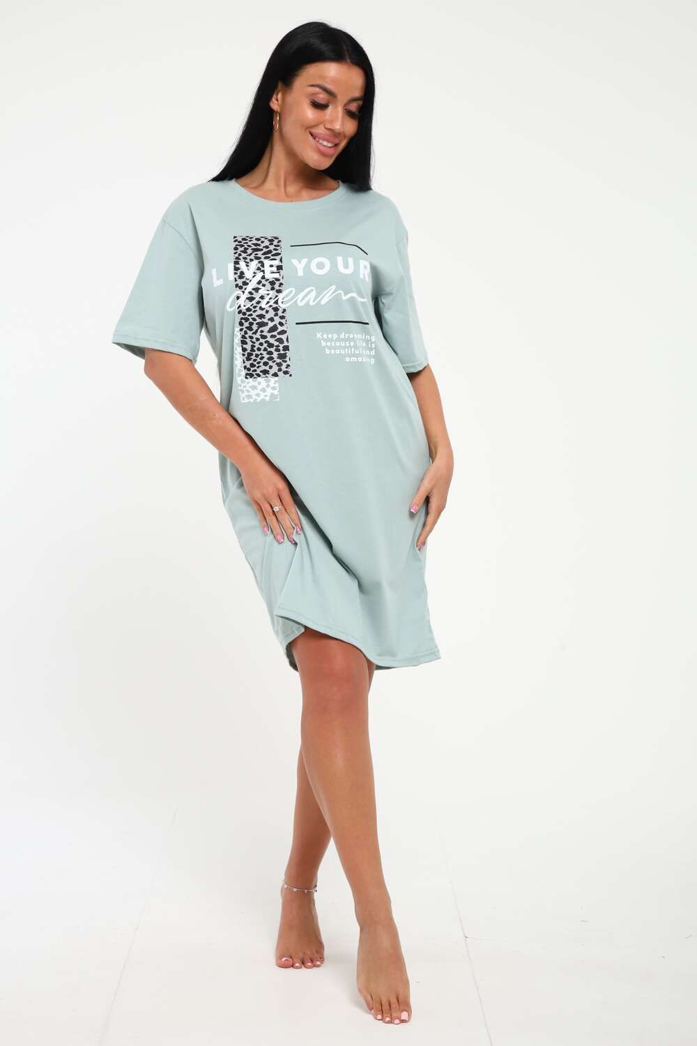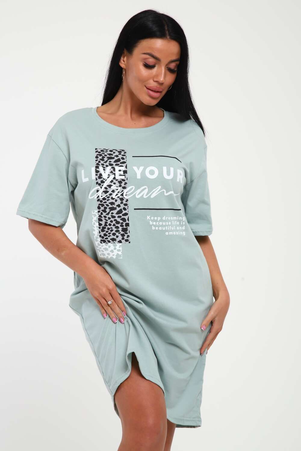 Туника женская прямого силуэта. Горловина выполнена с обтачкой. На передней полочке печать.