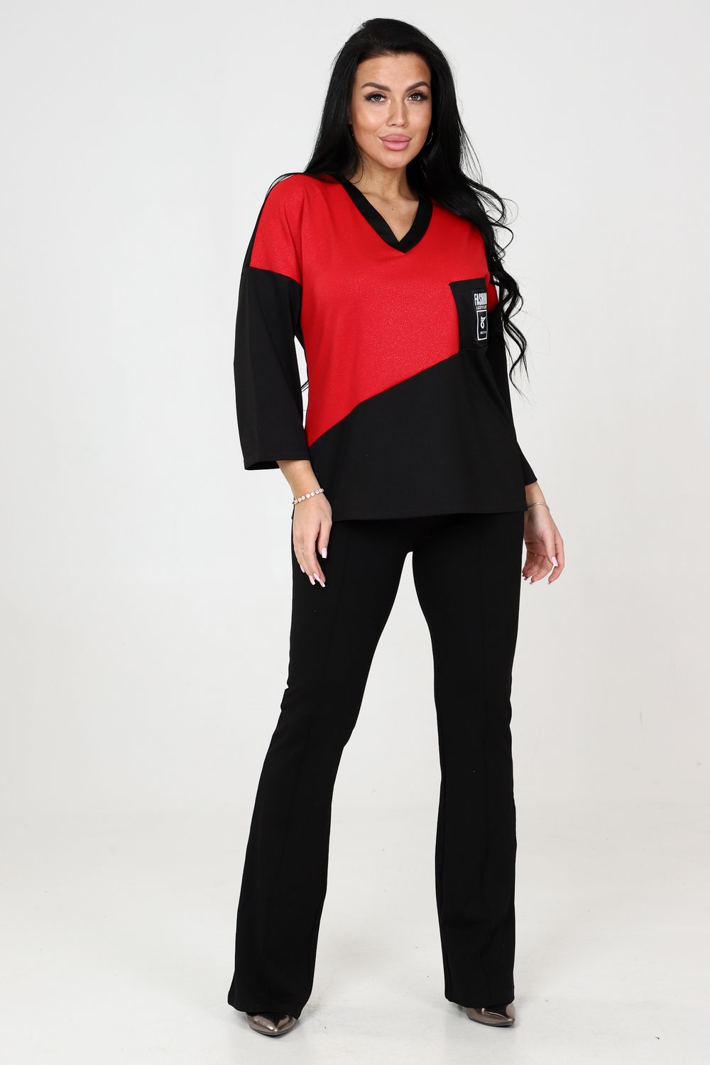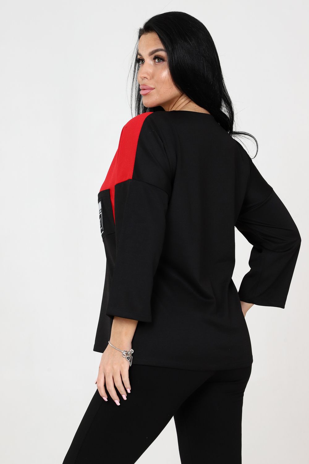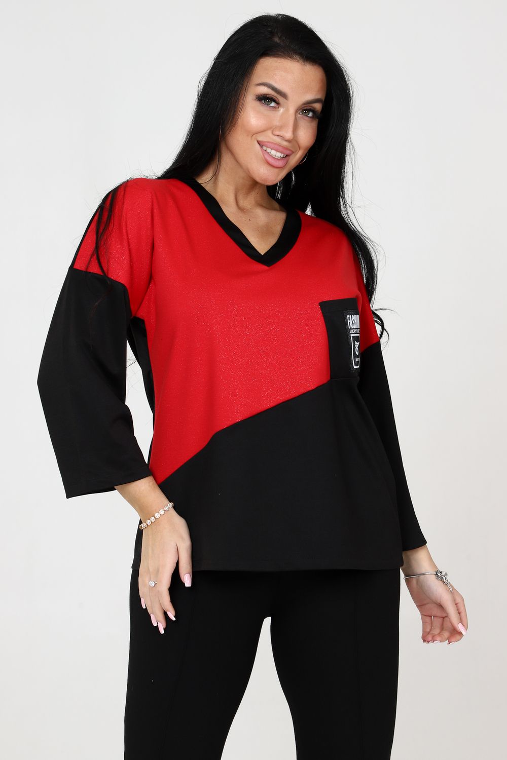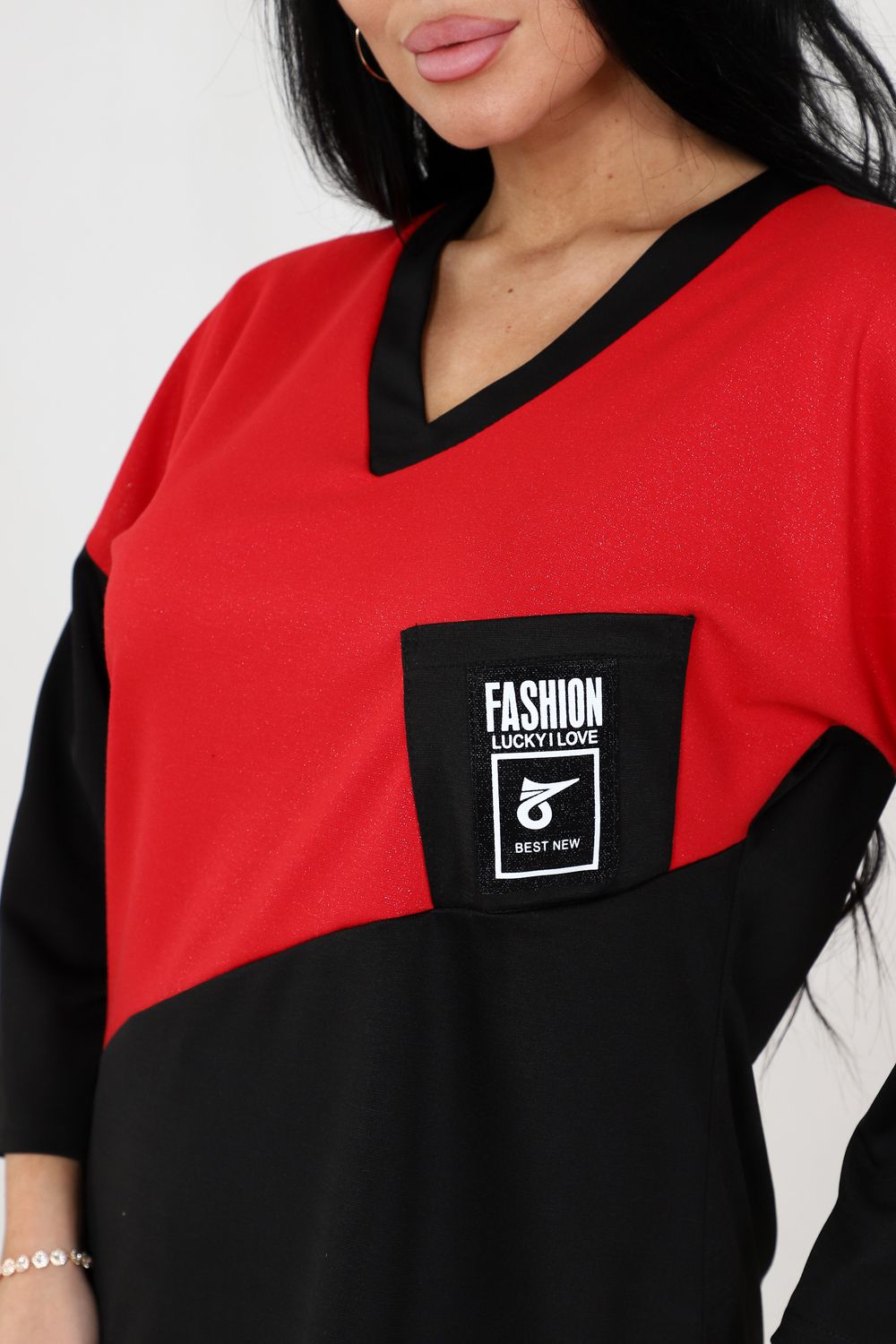 К сегодняшнему дню туника значительно похорошела, преобразилась и вошла в нашу жизнь, как один из самых любимых и востребованных нарядов. Актуальность которых не уменьшается со сменой сезонов. Туника женская востребована в любое время года и в любом месте. Туника силуэта "летучая мышь" всегда останется модной и незаменимой вещью вашего гардероба. Оригинальное переплетение двух цветов дополняет накладной карман, украшенный декоративной отделкой. V-образная горловина придаст загадочность вашему образу.