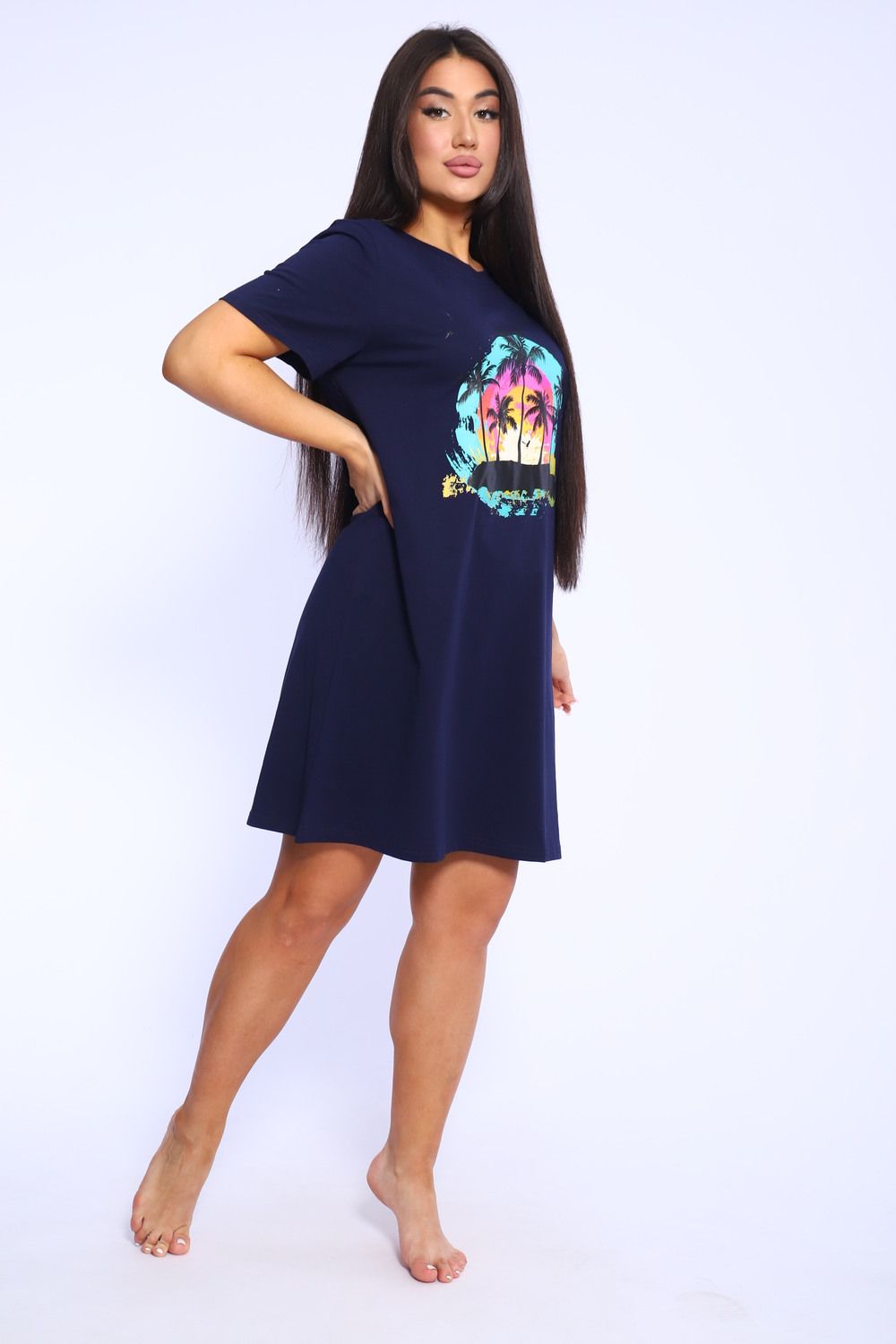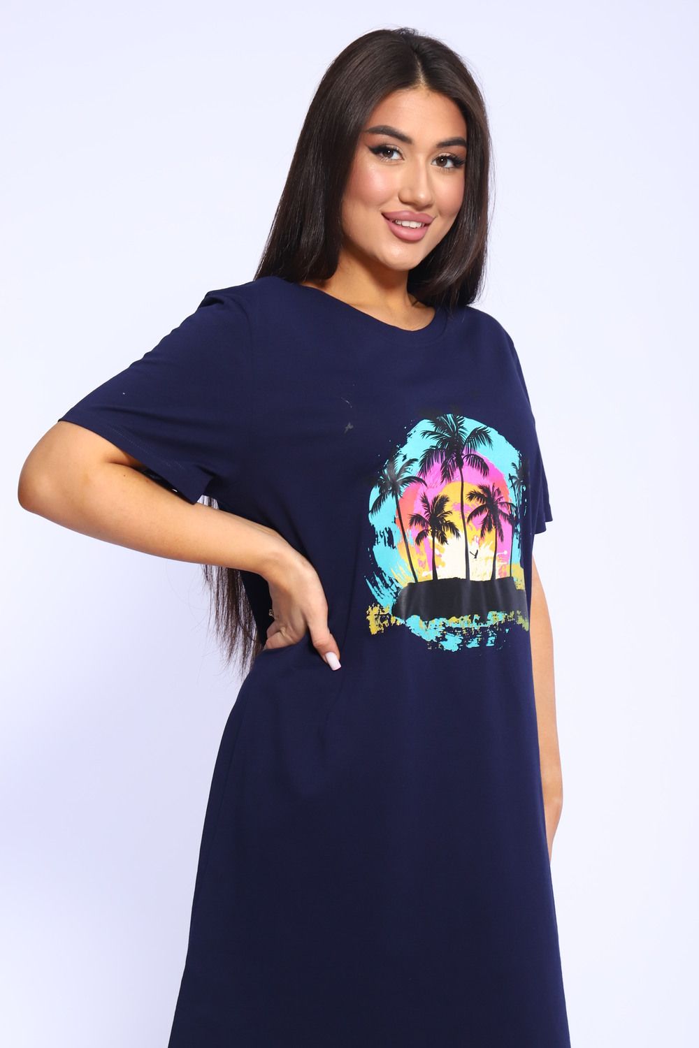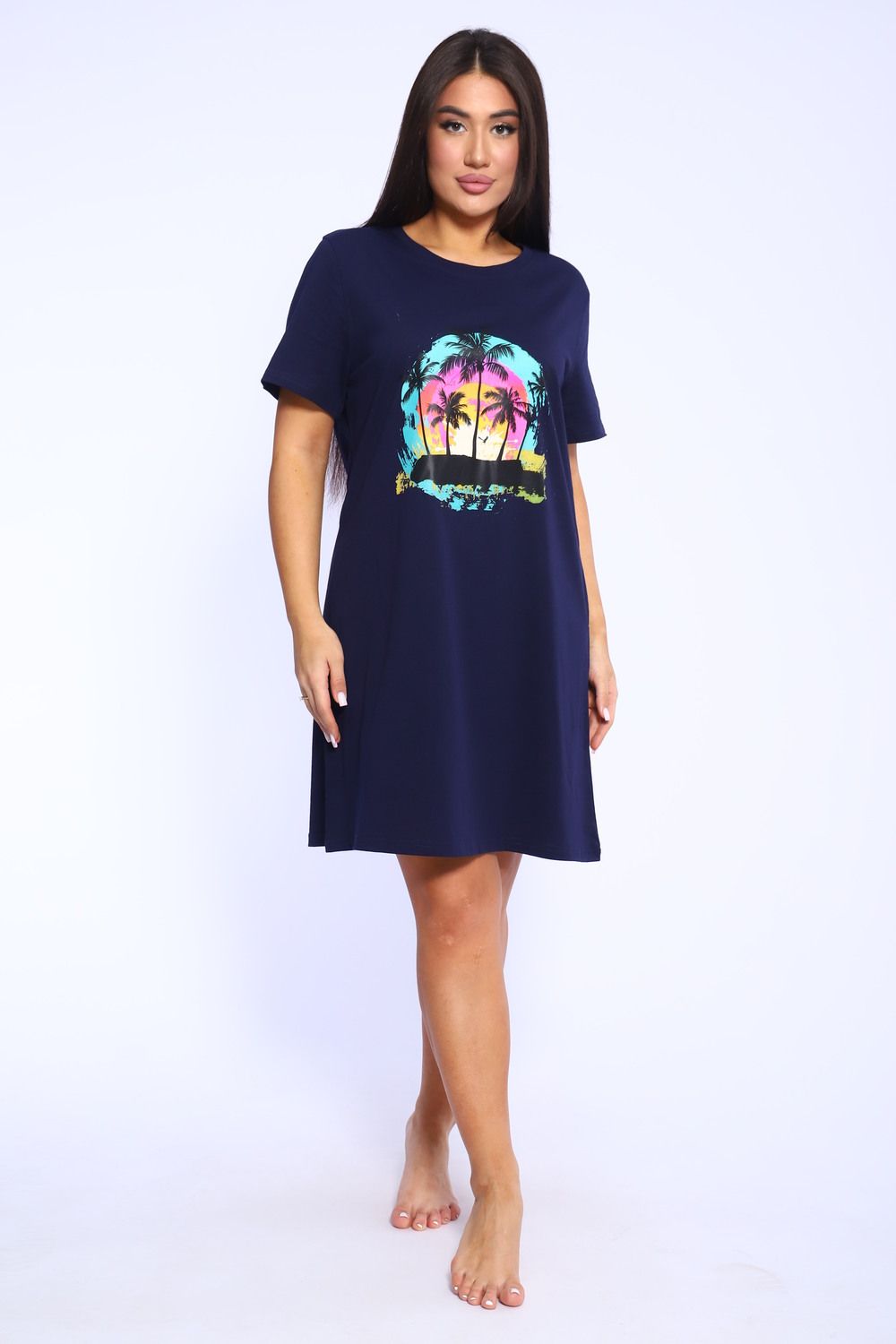 Оригинальная повседневная туника бренда Modalina из 100 % хлопка. Туника прекрасно подойдет для выхода на улицу в летнее время, прогулок на пляж и конечно, для дома, а также станет прекрасным подарком Вашим друзьям и близким. Туника полуприлегающего силуэта, рукав спущенный, короткий, круглый вырез горловины, дизайнерский принт, длина изделия до колена. Данная модель отлично подойдет на любой тип фигуры и на любой возраст.