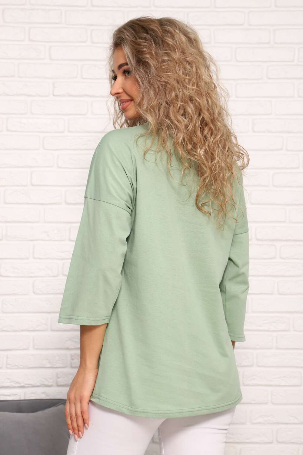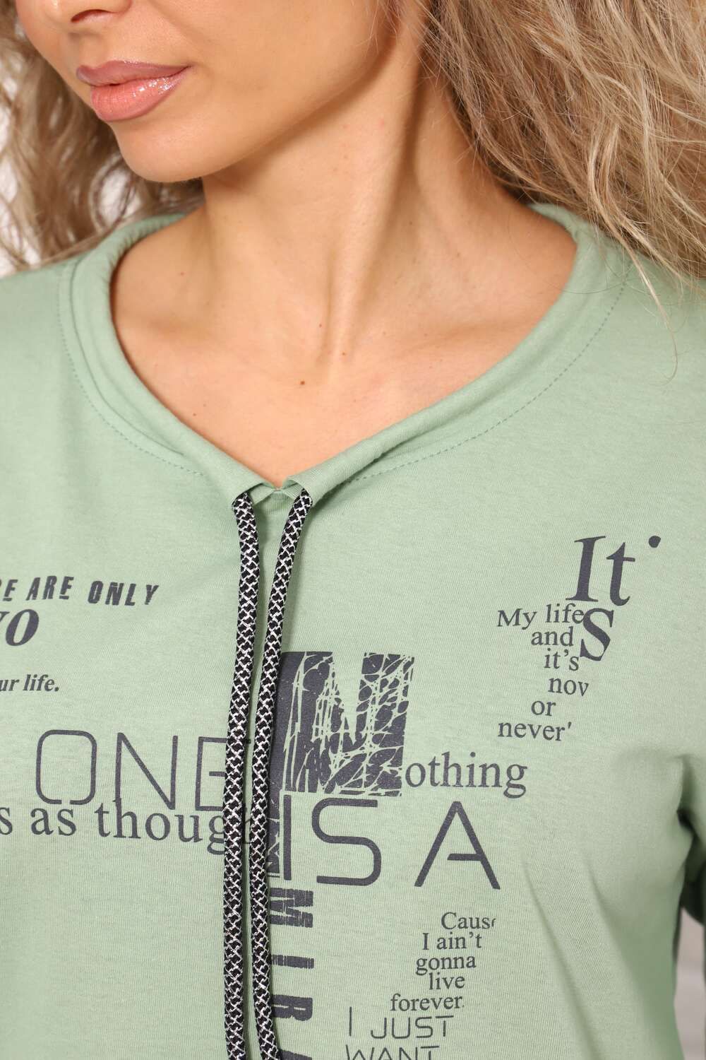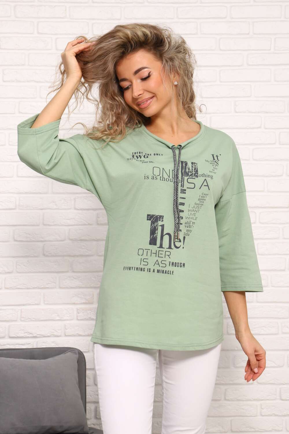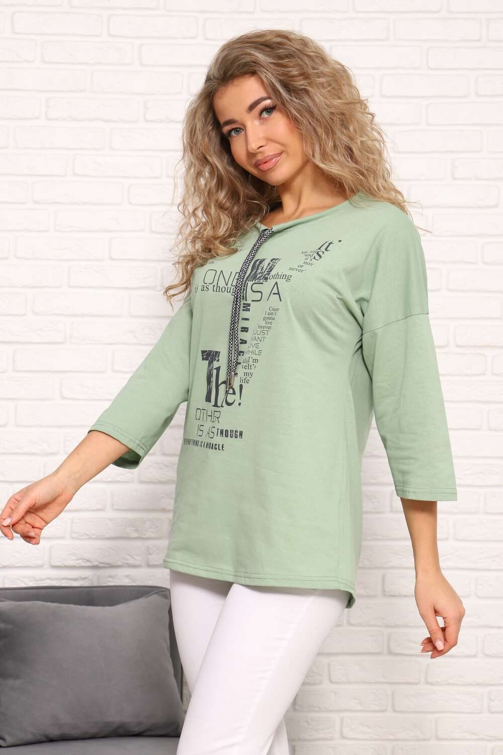Туника женская свободного кроя со шнурком на горловине и печатью на передней полочке.
