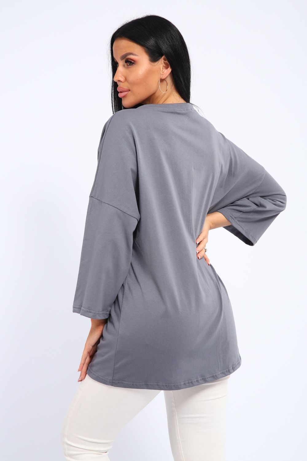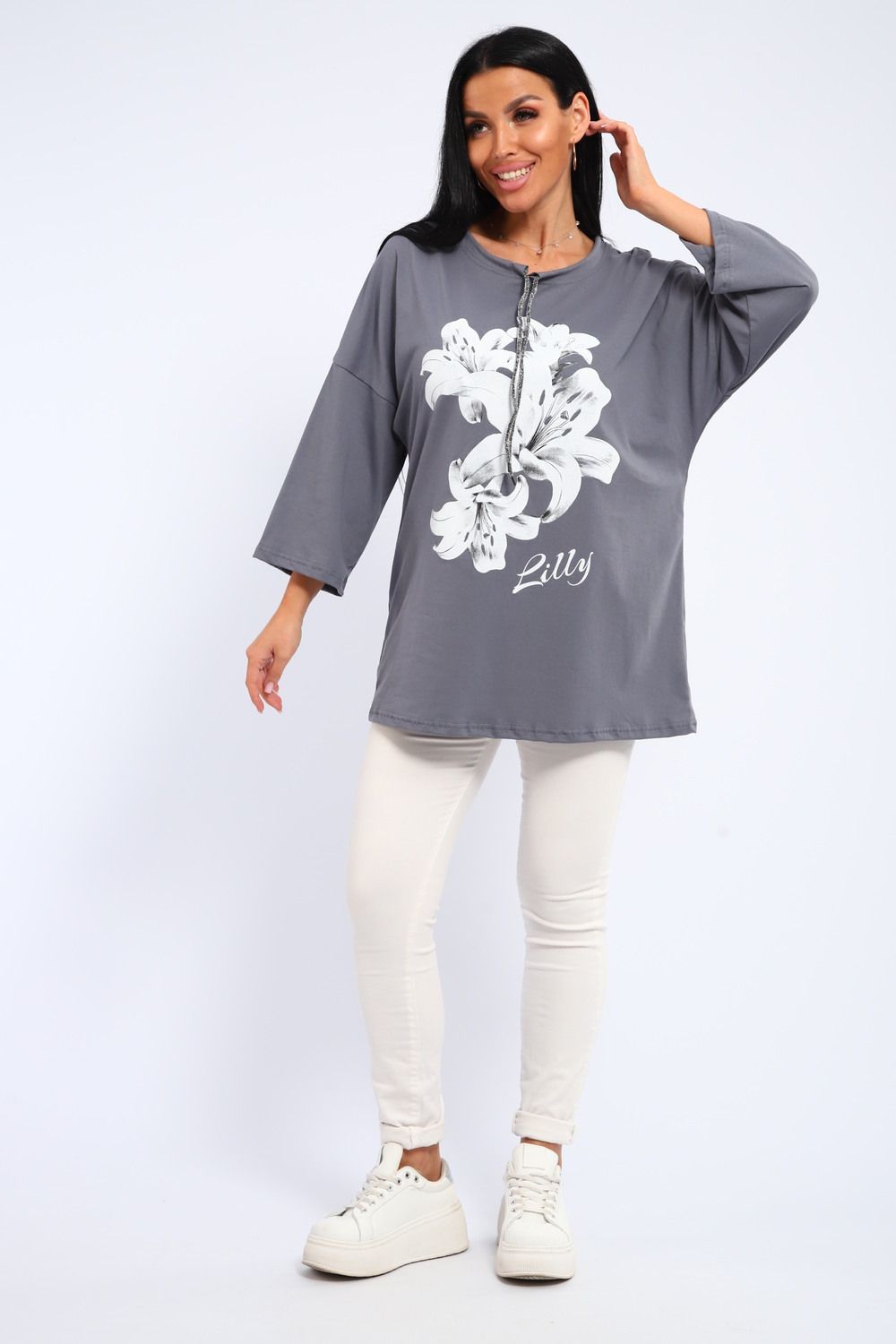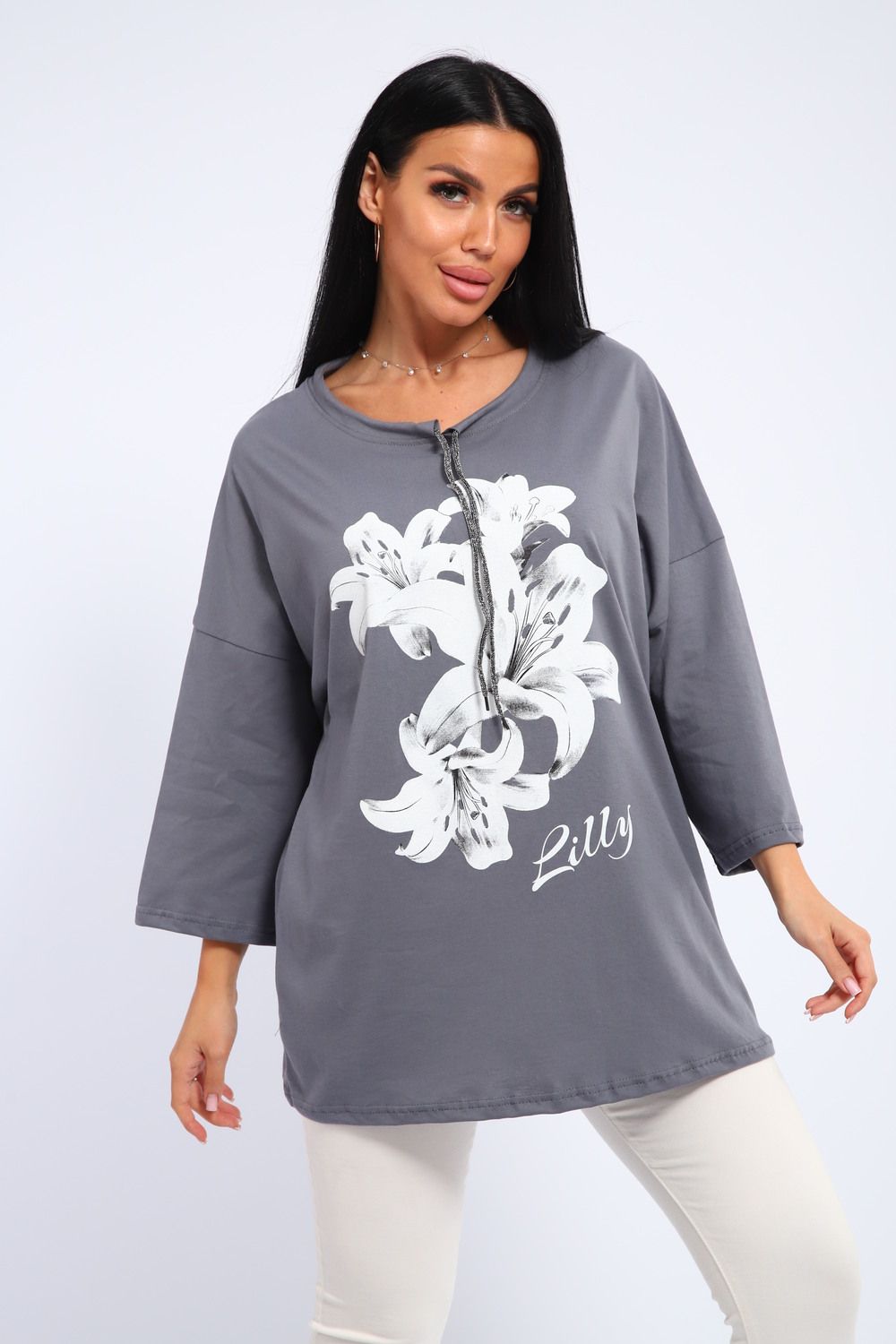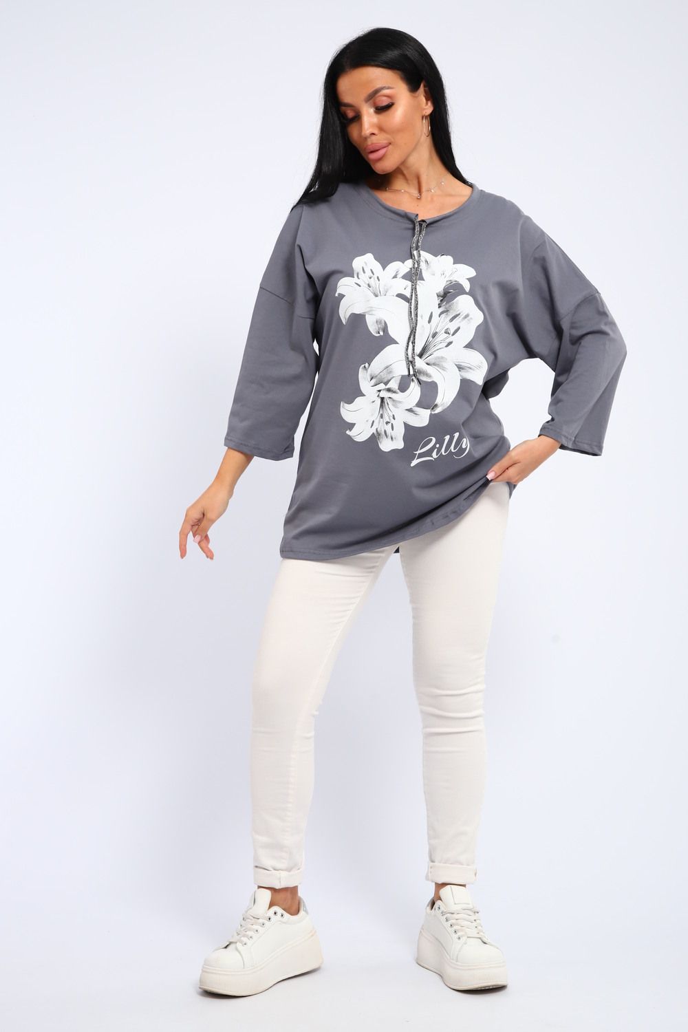Туника женская свободного кроя со шнурком на горловине и печатью на передней полочке.