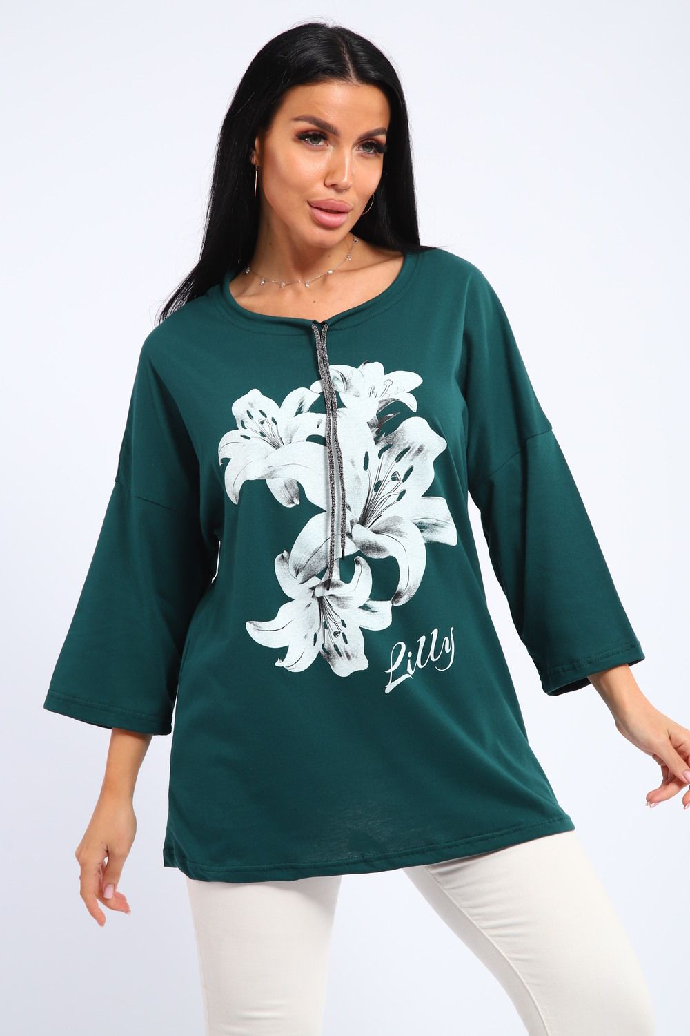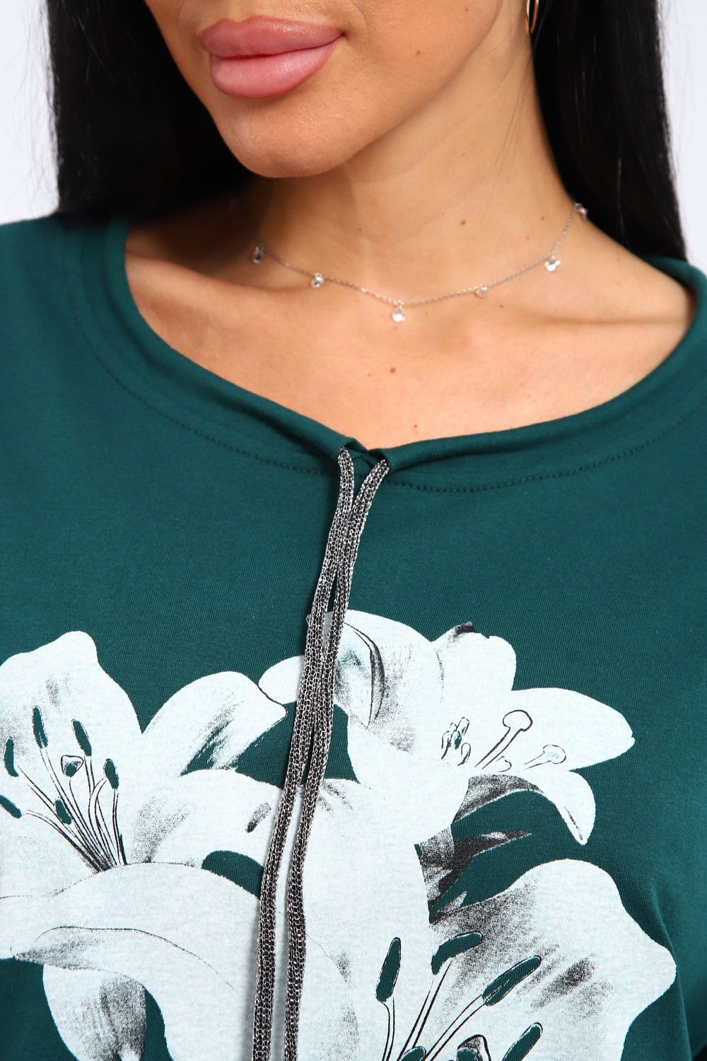 Туника женская свободного кроя со шнурком на горловине и печатью на передней полочке.