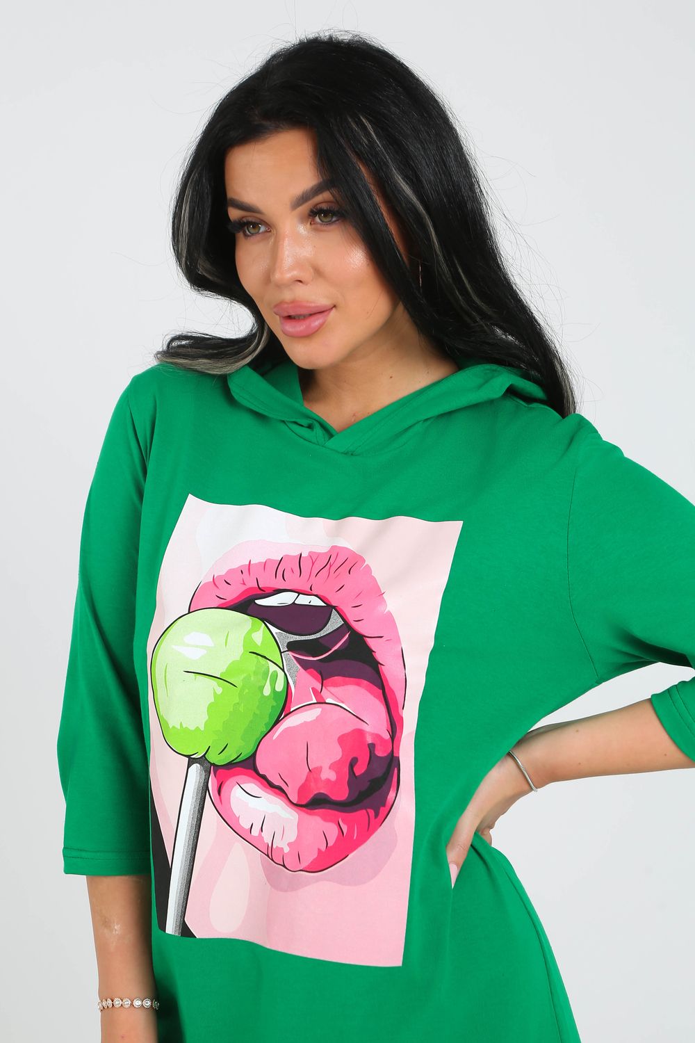 Туника с капюшоном 3320-0001-К-ОН - салатовый