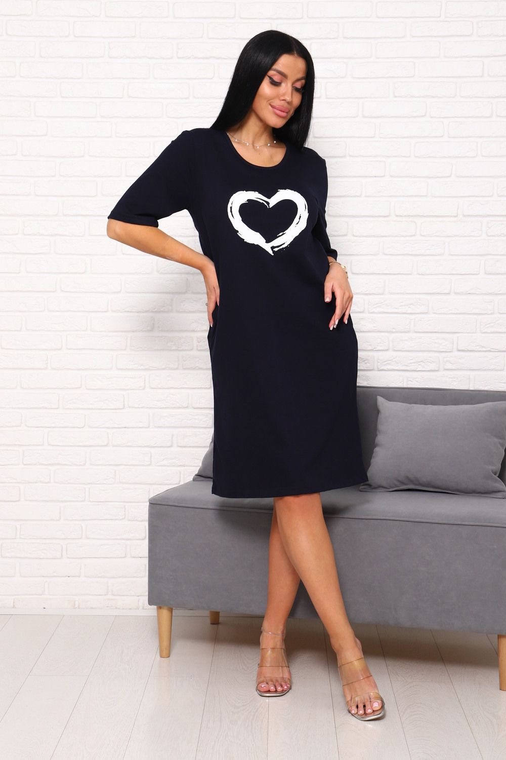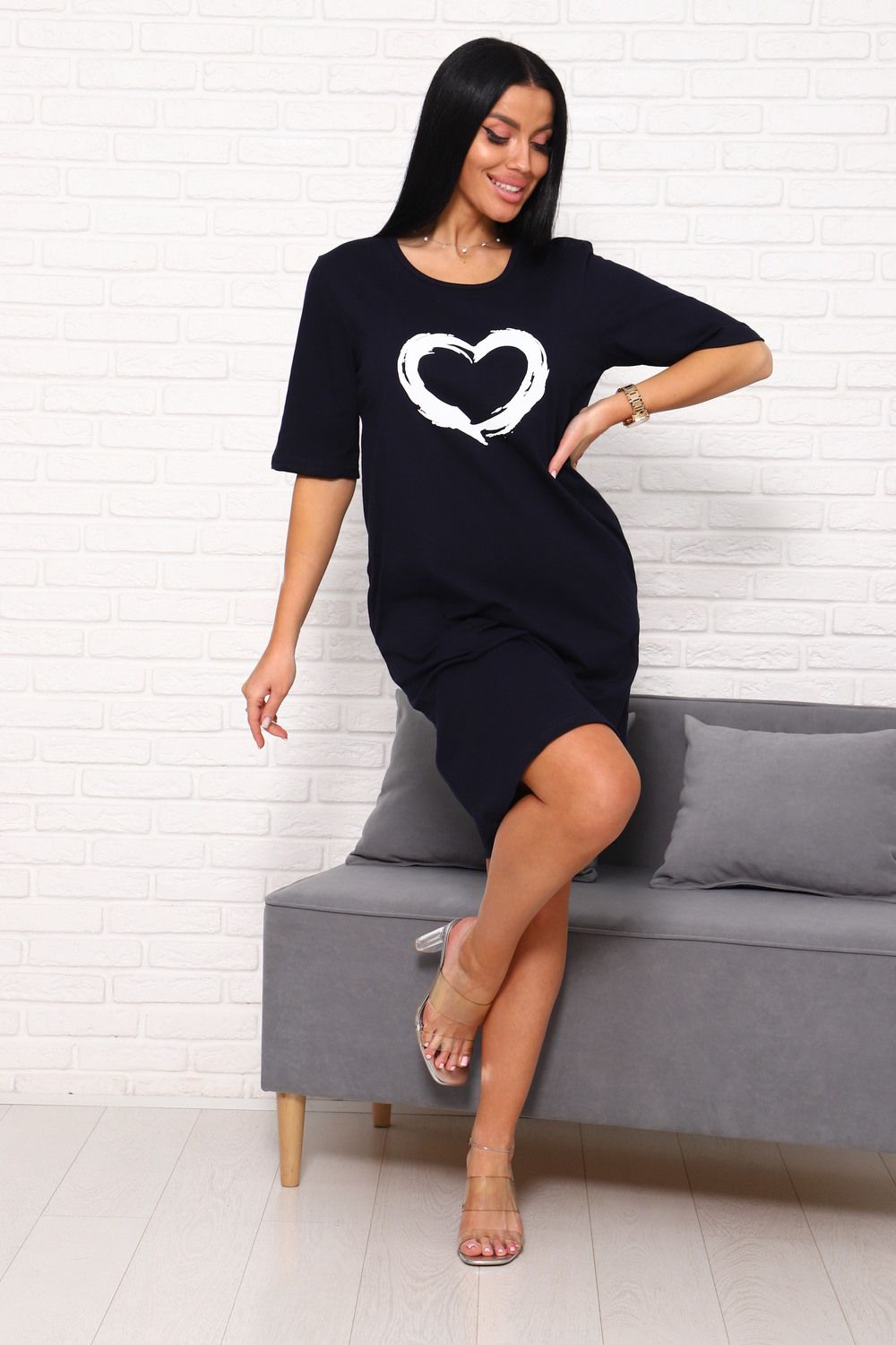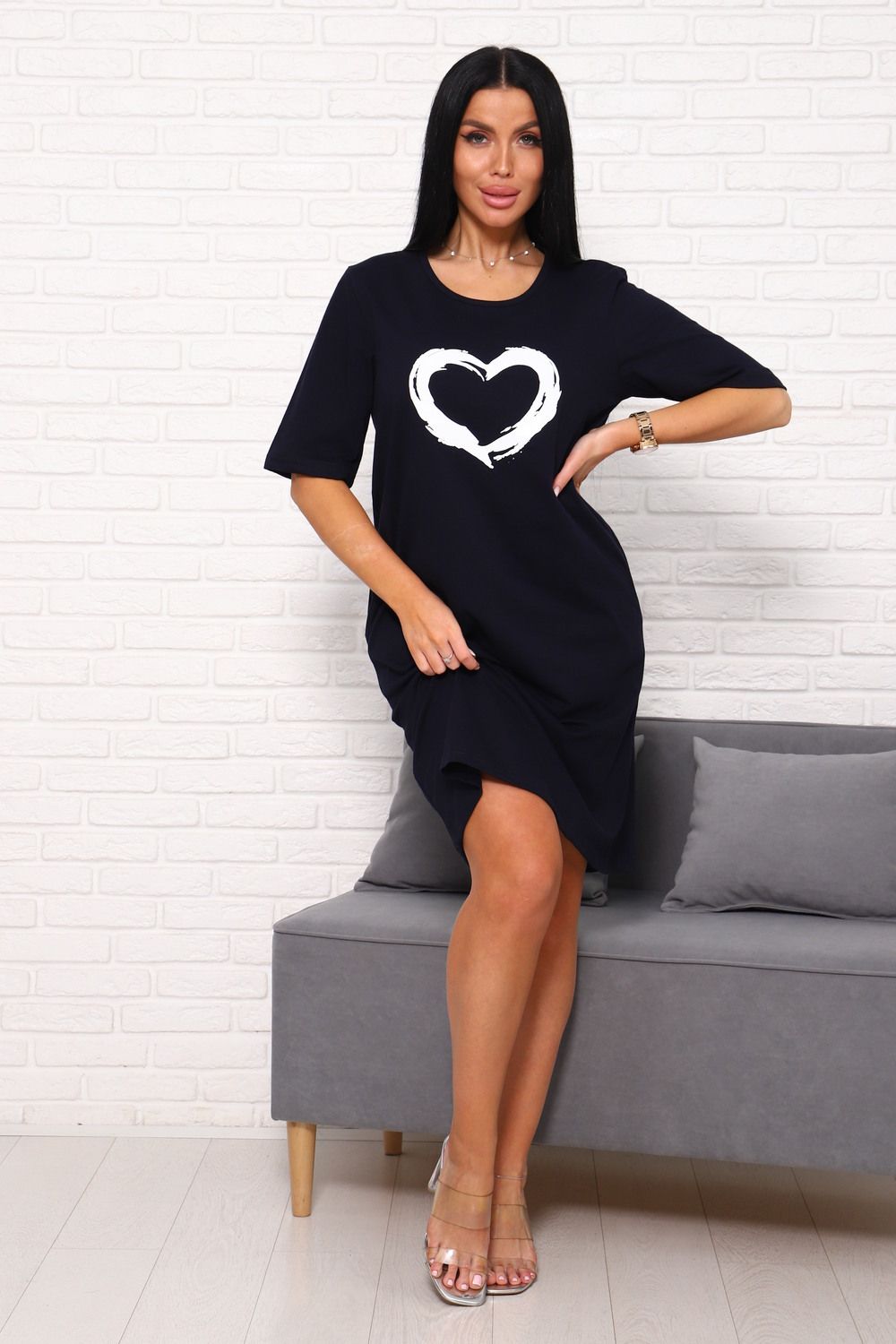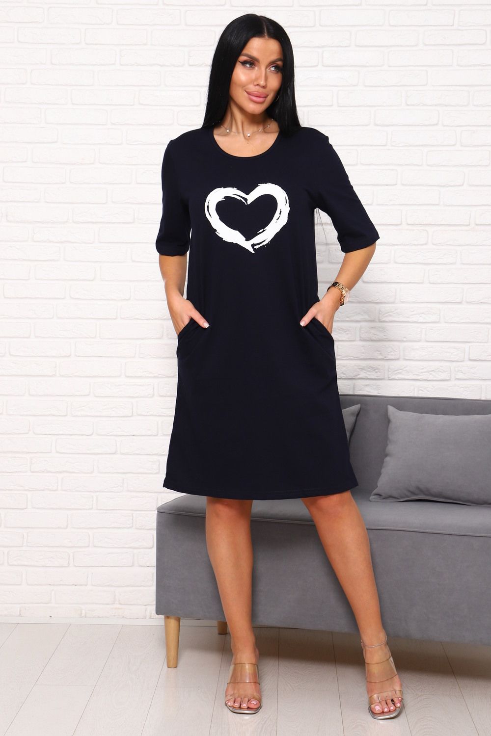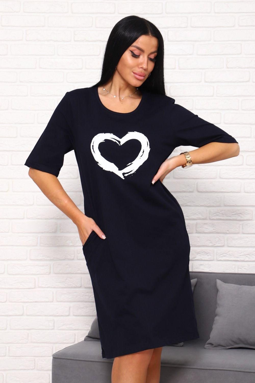 Туника с сердечком Арт. 1090 - темно-синий