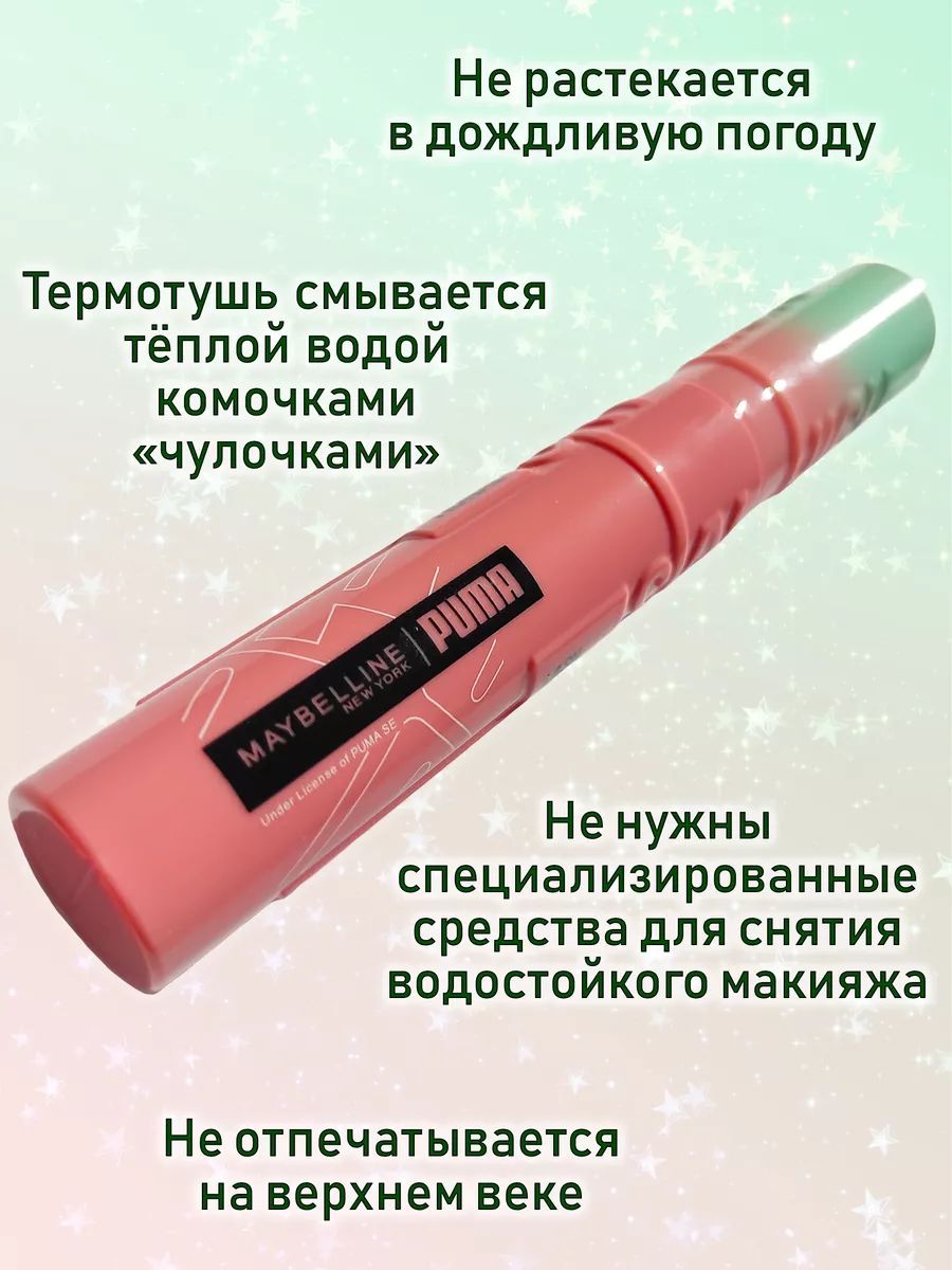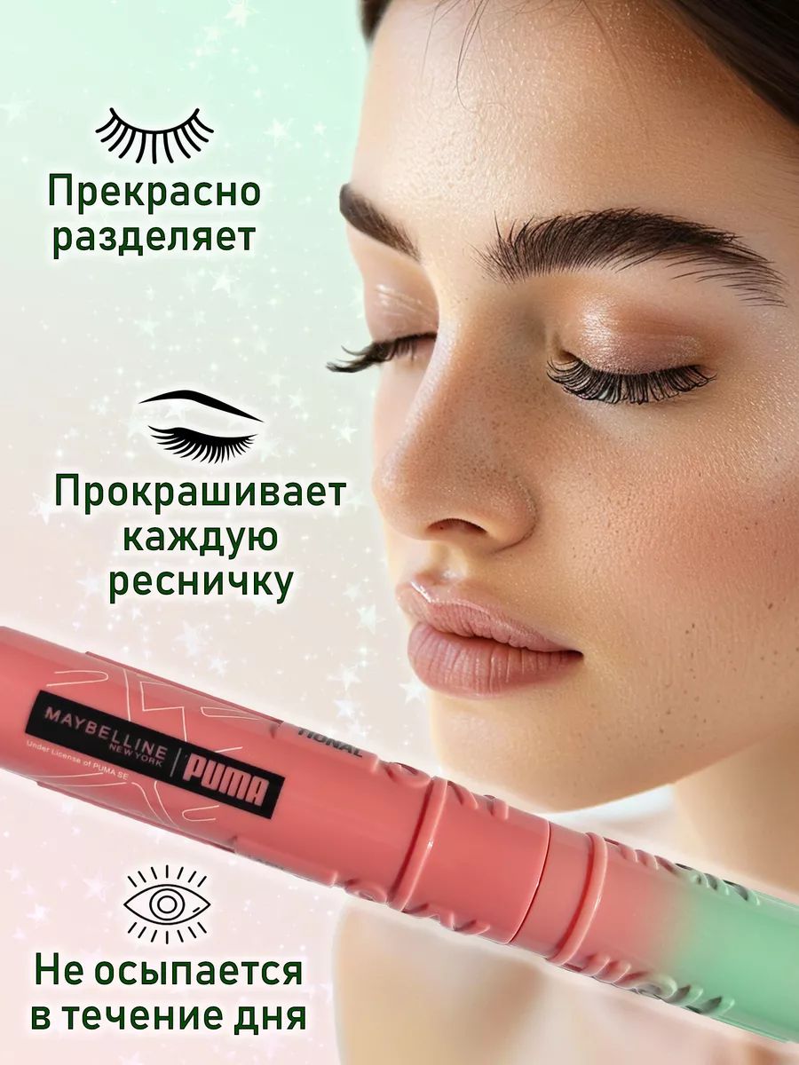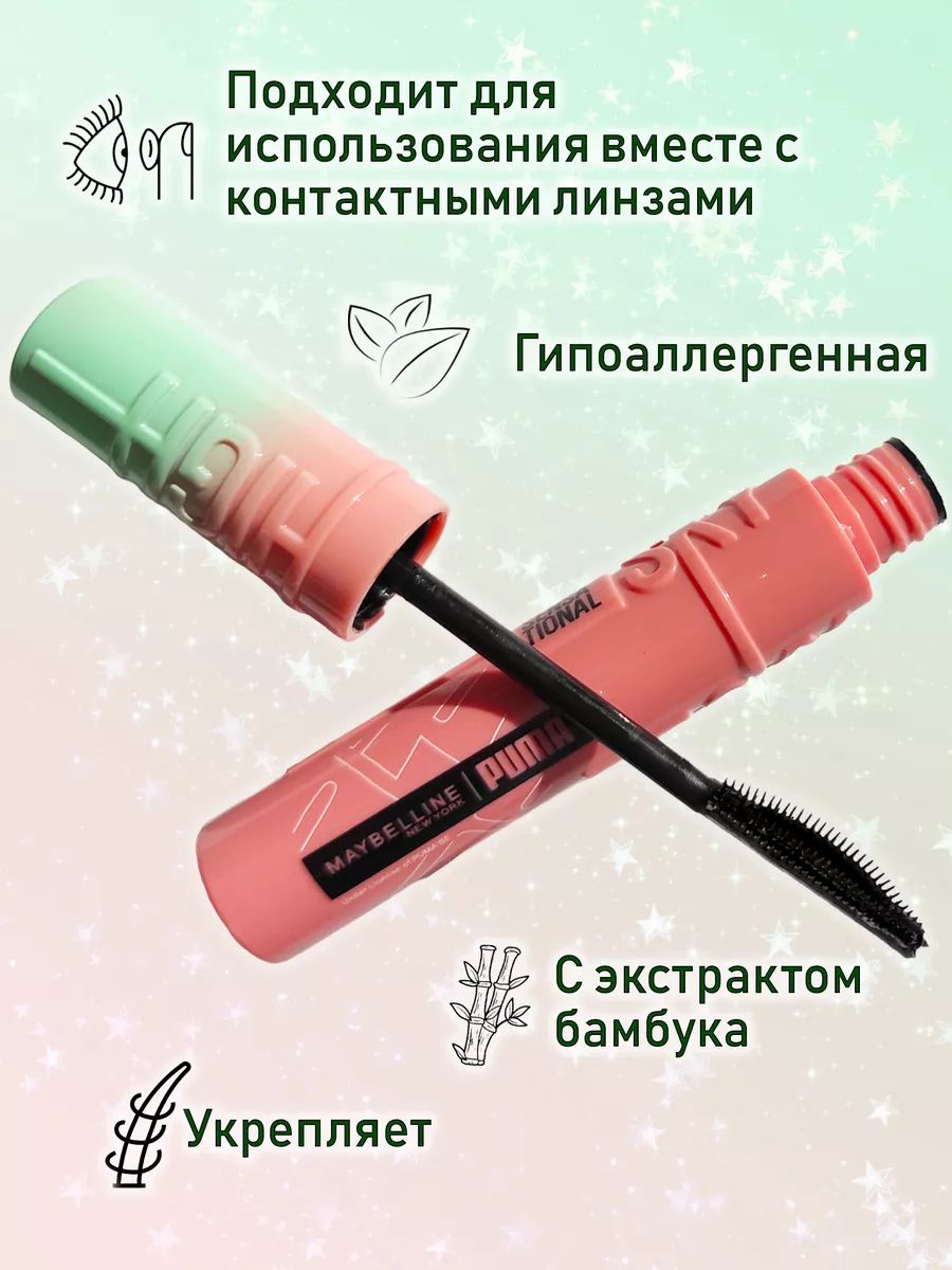 Коллаборация Maybelline New York с Puma. Данная коллекция сделана для активных девушек, которые хотят чувствовать себя безупречно всегда и везде. Экстрачерная тушь будет отличным дополнением к твоему ежедневному макияжу. Стойкость до 24 часов. Чистый объем без комочков. Влагоустойчивость. Все это поможет тебе быть совершенной 24 часа в сутки. А модный дизайн позволит чувствовать себя еще более особенной. Тушь обещает достичь максимального объема и невероятной длины всего в одно касание. Черная тушь глубоко подчеркнет ваш взгляд, добавляя ему интенсивности и выразительности. С помощью нашей туши вы сможете создать соблазнительные и сияющие ресницы, которые станут настоящим акцентом вашего макияжа. Наша тушь также обогащена экстрактом бамбука, который обладает ухаживающим эффектом для ваших ресниц. Он питает и укрепляет их, придавая им здоровый блеск и естественную красоту.