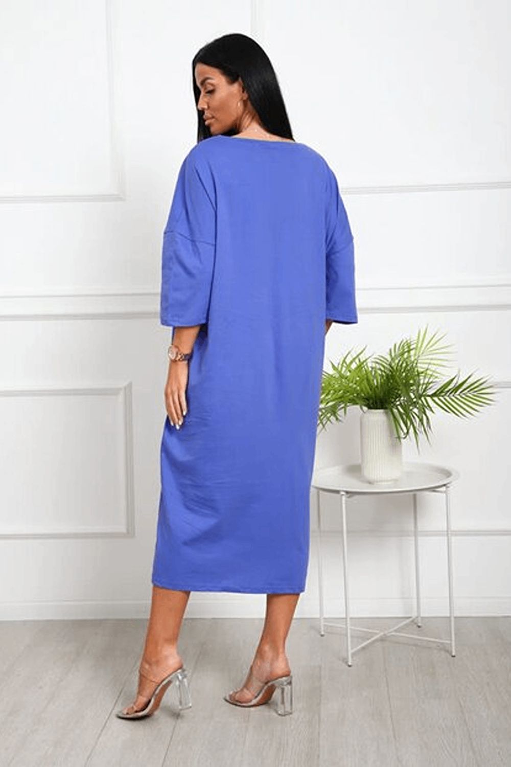 Удлиненная футболка хлопок с принтом Арт. 1092 - васильковый