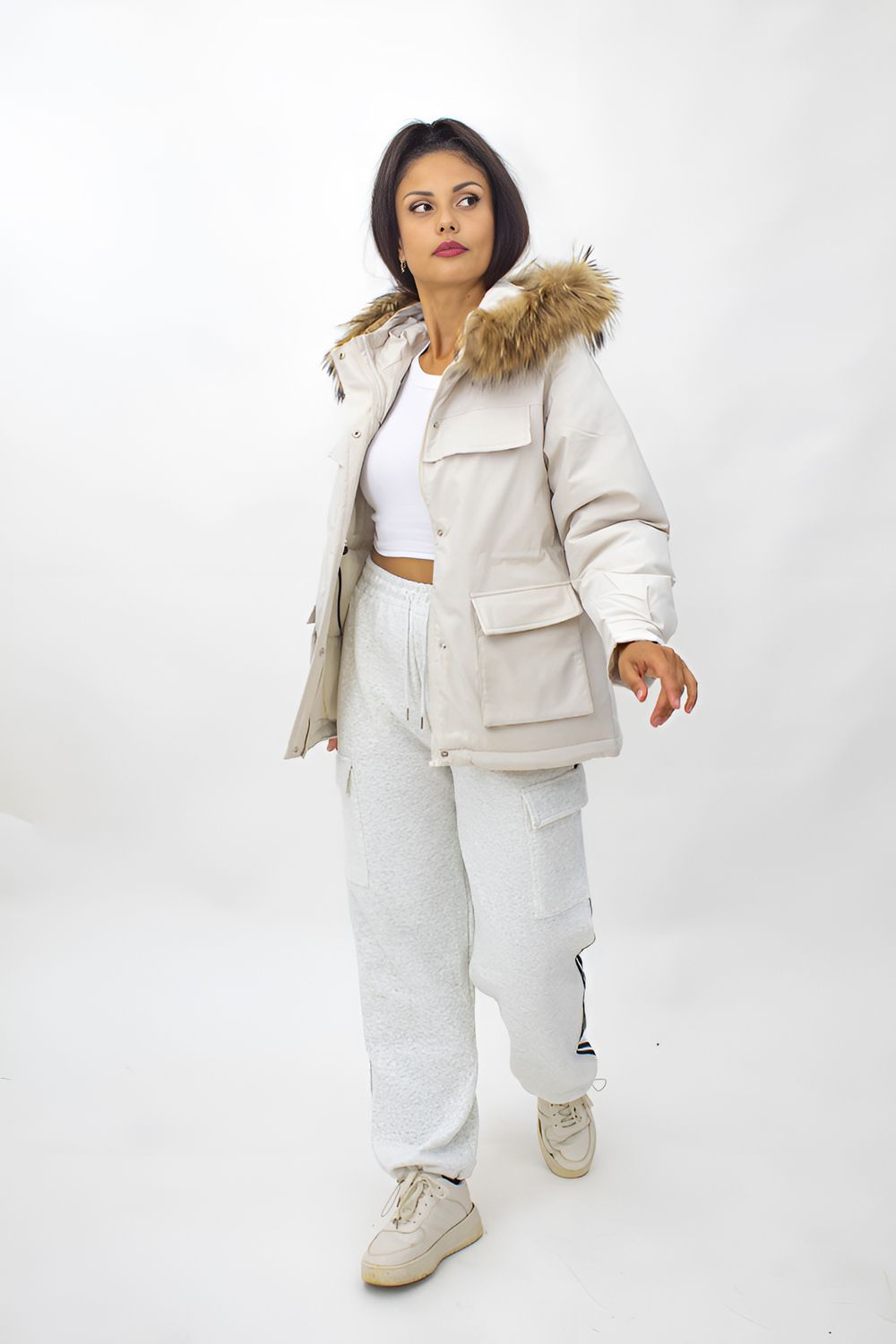Женская демисезонная парка - это актуальная и функциональная куртка, которая обеспечивает надежную защиту от холода и ветра. Парка изготовлена из матовой плотной ткани с утеплителем и отстегивающейся опушкой на капюшоне из натурального меха. Эта базовая парка свободного кроя с кулиской на талии имеет актуальный и современный дизайн, который добавит стиля к вашему осенне-весенне-зимнему гардеробу. Практичная куртка станет отличным выбором для повседневной носки, работы или школы создавая актуальный образ. Она обеспечивает комфорт и стиль одновременно.