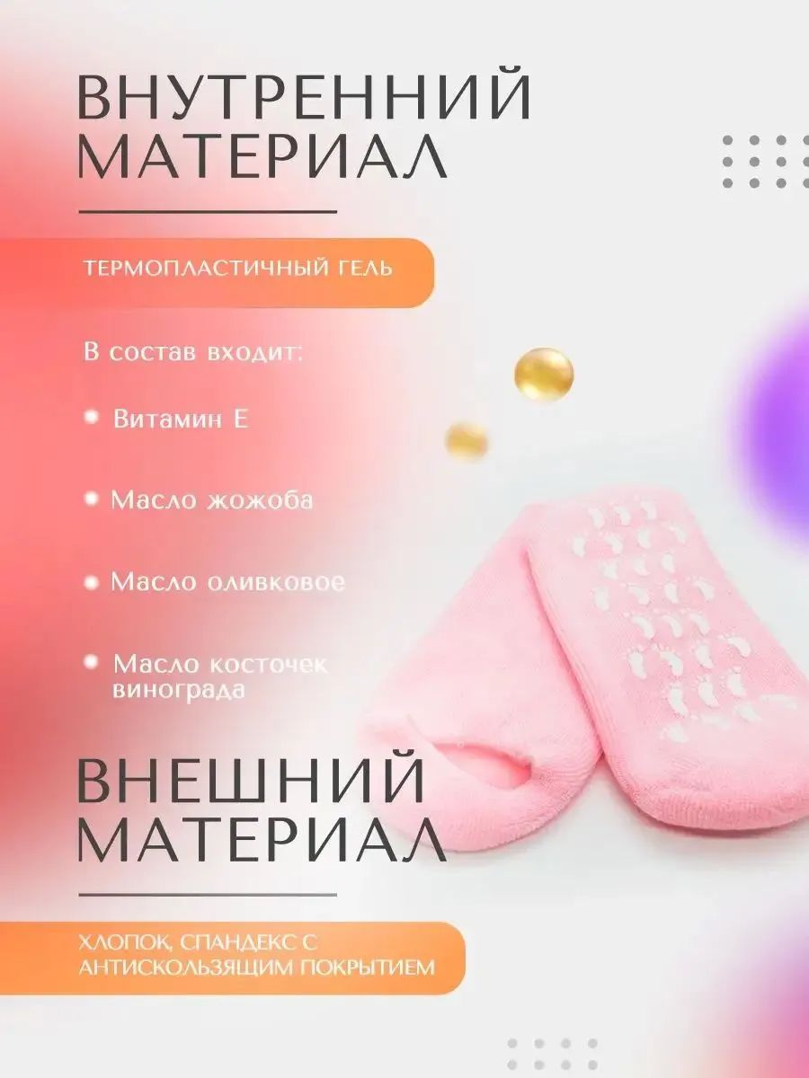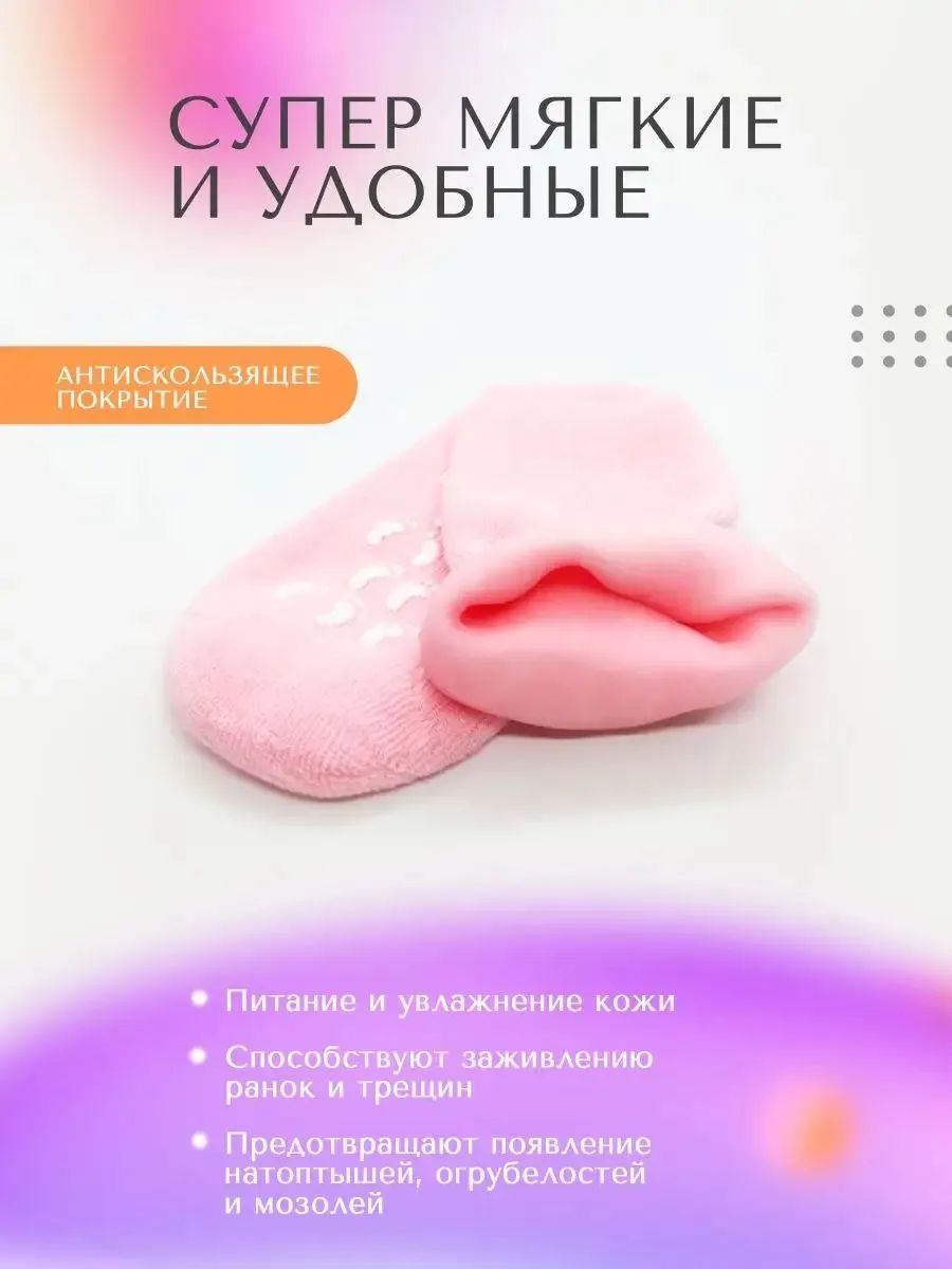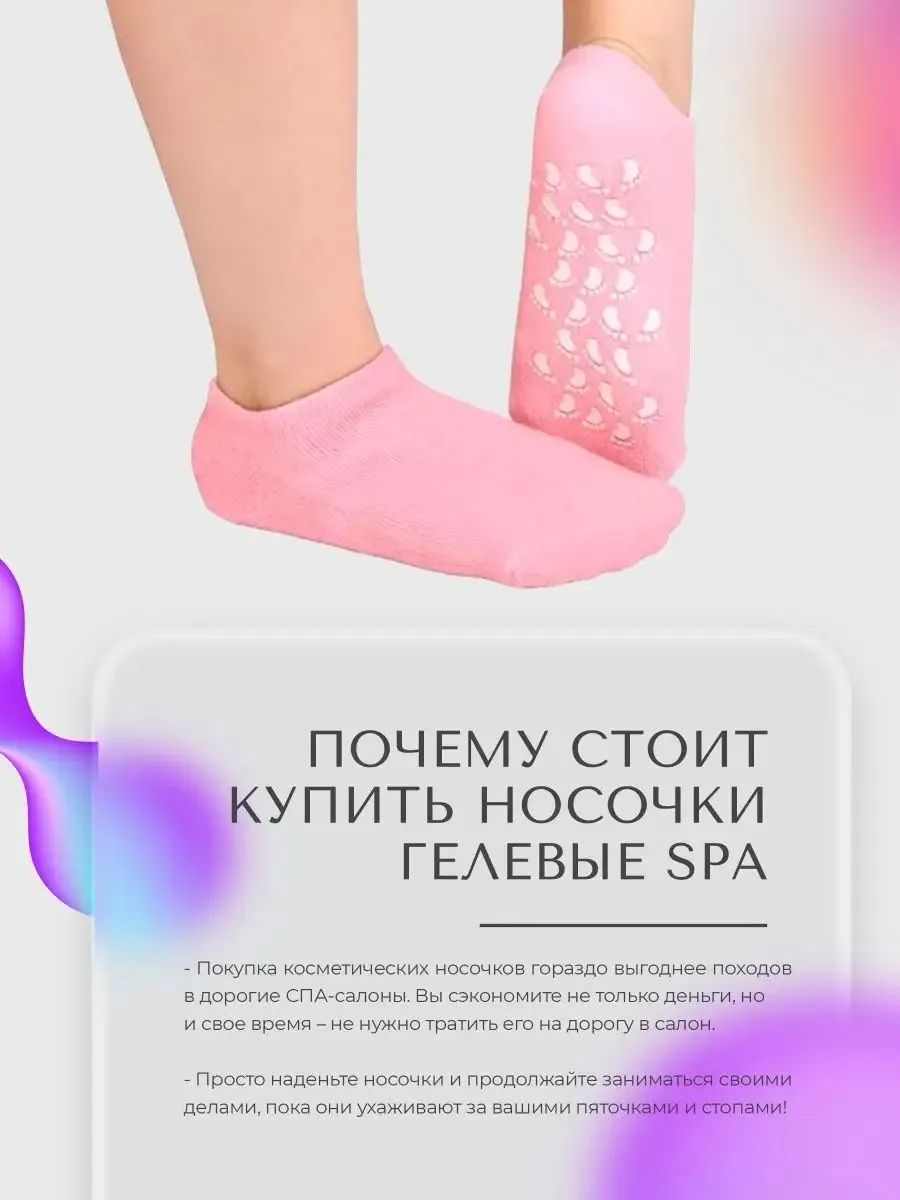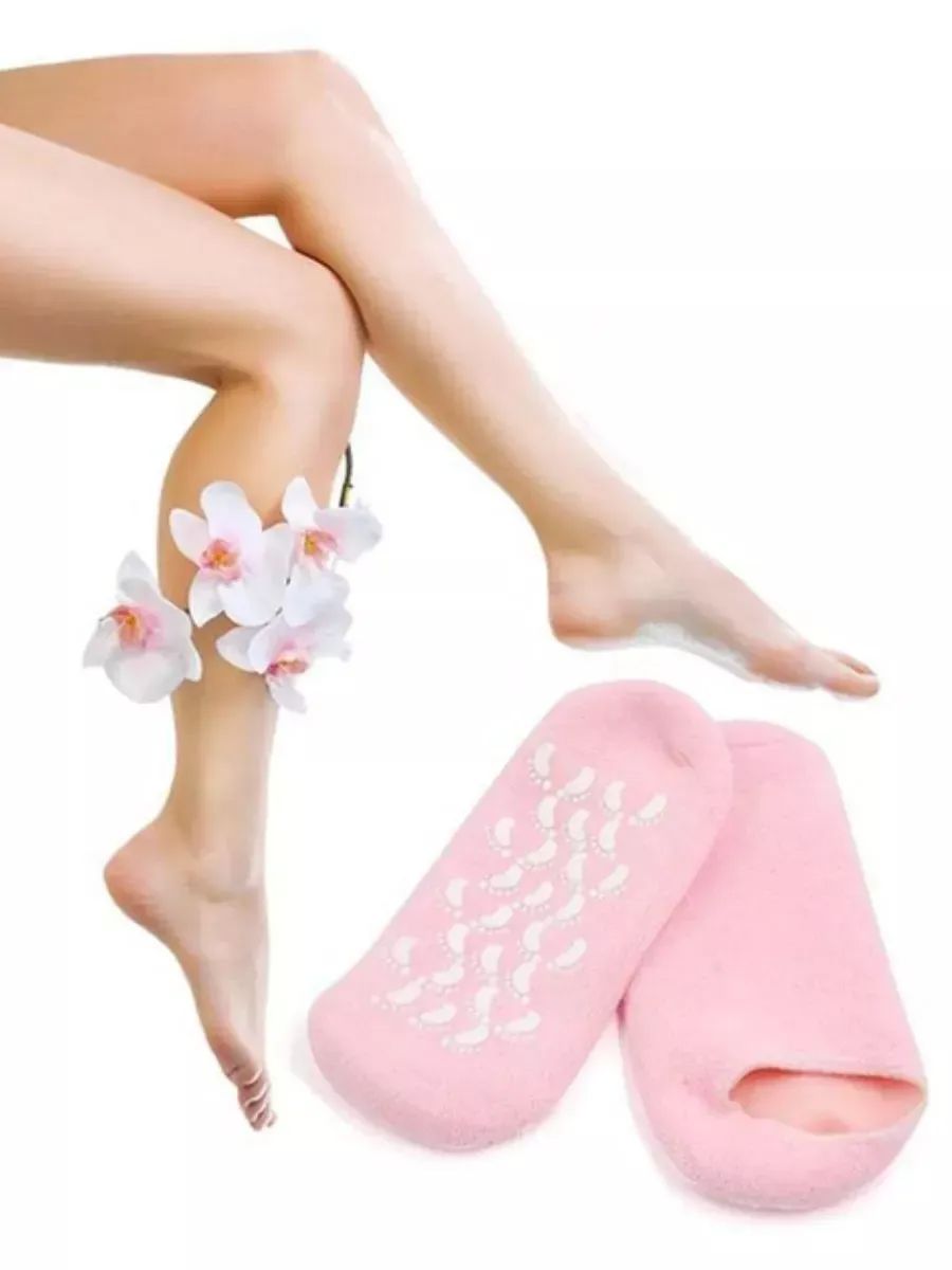 Увлажняющие SPA носки для педикюра будут ухаживать за ножками, пока вы будете отдыхать! Теплые и мягкие носочки очень приятно пахнут и расслабляют после тяжелого рабочего дня. С помощью геля создается эффект бани - кожа распаривается и пропитывается витамином Е, эфирными маслами жожоба, лаванды и оливы. Гелевый комплекс масел питает, увлажняет кожу, заживляет трещинки и раны, делает кожу более упругой, снимает отечность и уничтожает вредные бактерии, обладая антибактериальным эффектом. Также он способствует отслаиванию ороговевших слоев кожи. Надевайте женские отшелушивающие носки всего 30 минут в день, чтобы вернуть к жизни уставшие и сухие ступни, ослабленные ногти, провести мягкий пилинг пяткам и придать им мягкость. Короткие сеансы домашнего ухода не мешают, их можно оставлять на ночь как маску для пяток. Педикюрные носки многоразовые, 1 пара хватает для множества применений. Для создания эффекта бани рекомендуется предварительно нанести увлажняющий крем на ноги. Ткань у укороченных носочков плотная, но эластичная, и размер универсальный, подходящий для взрослых женщин, молодых девушек и девочек. Конечно же, это просто хит для уставших мам :). У силиконовых носков приятная ощупь махровая ткань, а резинка сжимает ножку. Они заменяют парафинотерапию. Чтобы избежать пересыхания, рекомендуется хранить их в холодильнике. Также их можно аккуратно стирать в прохладной воде (до 30°C) с мылом, без выворачивания наизнанку. Позаботьтесь о красоте и здоровье своих ног с помощью этих увлажняющих носков. Они станут отличным дополнением к вашему ритуалу маникюра и педикюра.