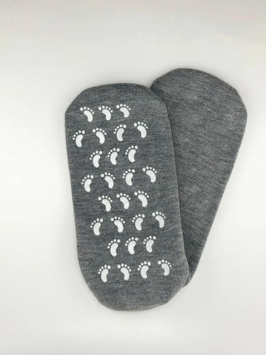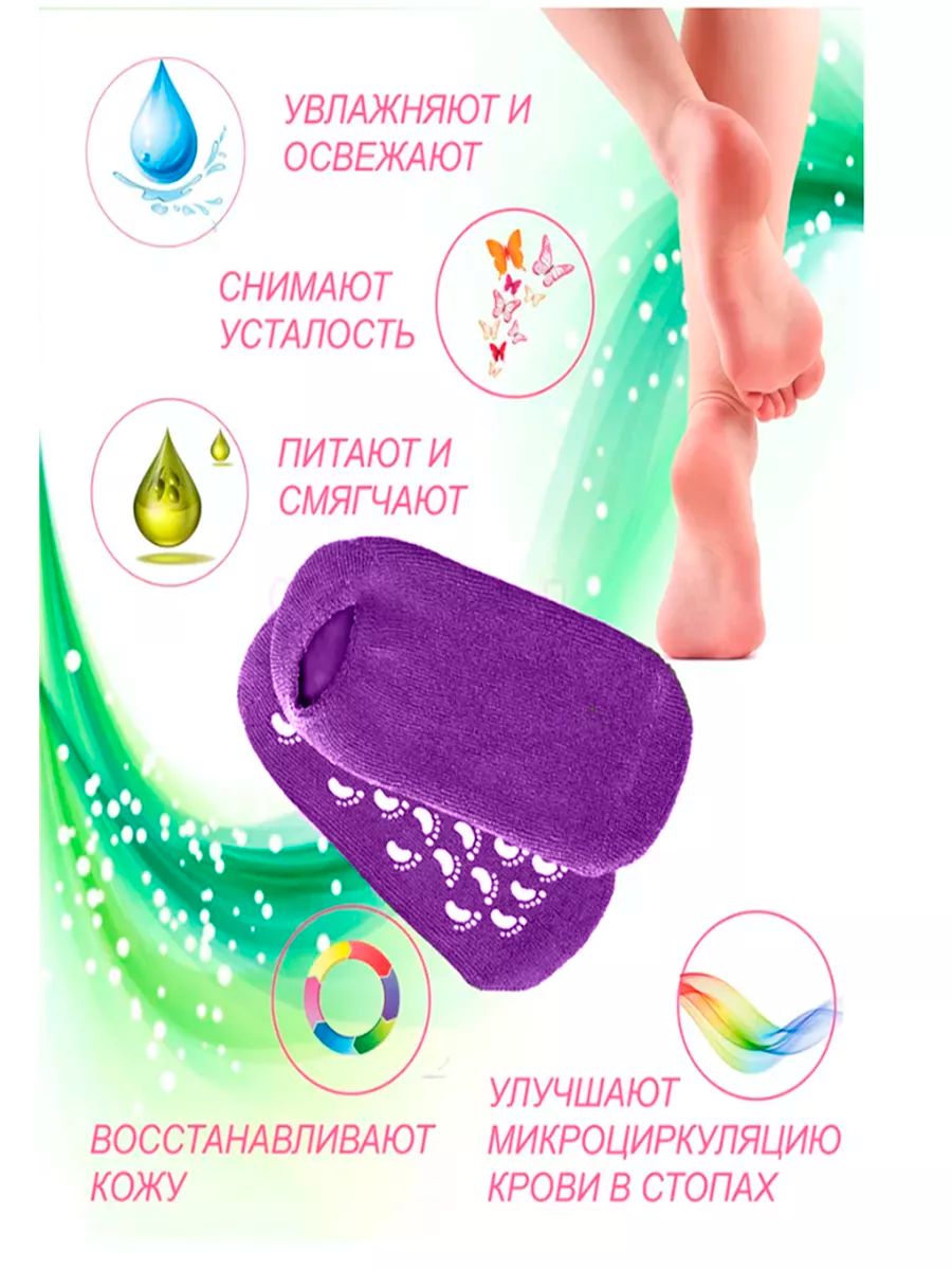 Увлажняющие SPA носки для педикюра будут ухаживать за ножками, пока вы будете отдыхать! Теплые и мягкие носочки очень приятно пахнут и расслабляют после тяжелого рабочего дня. С помощью геля создается эффект бани - кожа распаривается и пропитывается витамином Е, эфирными маслами жожоба, лаванды и оливы. Гелевый комплекс масел питает, увлажняет кожу, заживляет трещинки и раны, делает кожу более упругой, снимает отечность и уничтожает вредные бактерии, обладая антибактериальным эффектом. Также он способствует отслаиванию ороговевших слоев кожи. Надевайте женские отшелушивающие носки всего 30 минут в день, чтобы вернуть к жизни уставшие и сухие ступни, ослабленные ногти, провести мягкий пилинг пяткам и придать им мягкость. Короткие сеансы домашнего ухода не мешают, их можно оставлять на ночь как маску для пяток. Педикюрные носки многоразовые, 1 пара хватает для множества применений. Для создания эффекта бани рекомендуется предварительно нанести увлажняющий крем на ноги. Ткань у укороченных носочков плотная, но эластичная, и размер универсальный, подходящий для взрослых женщин, молодых девушек и девочек. Конечно же, это просто хит для уставших мам :). У силиконовых носков приятная ощупь махровая ткань, а резинка сжимает ножку. Они заменяют парафинотерапию. Чтобы избежать пересыхания, рекомендуется хранить их в холодильнике. Также их можно аккуратно стирать в прохладной воде (до 30°C) с мылом, без выворачивания наизнанку. Позаботьтесь о красоте и здоровье своих ног с помощью этих увлажняющих носков. Они станут отличным дополнением к вашему ритуалу маникюра и педикюра. Цвет в ассортименте