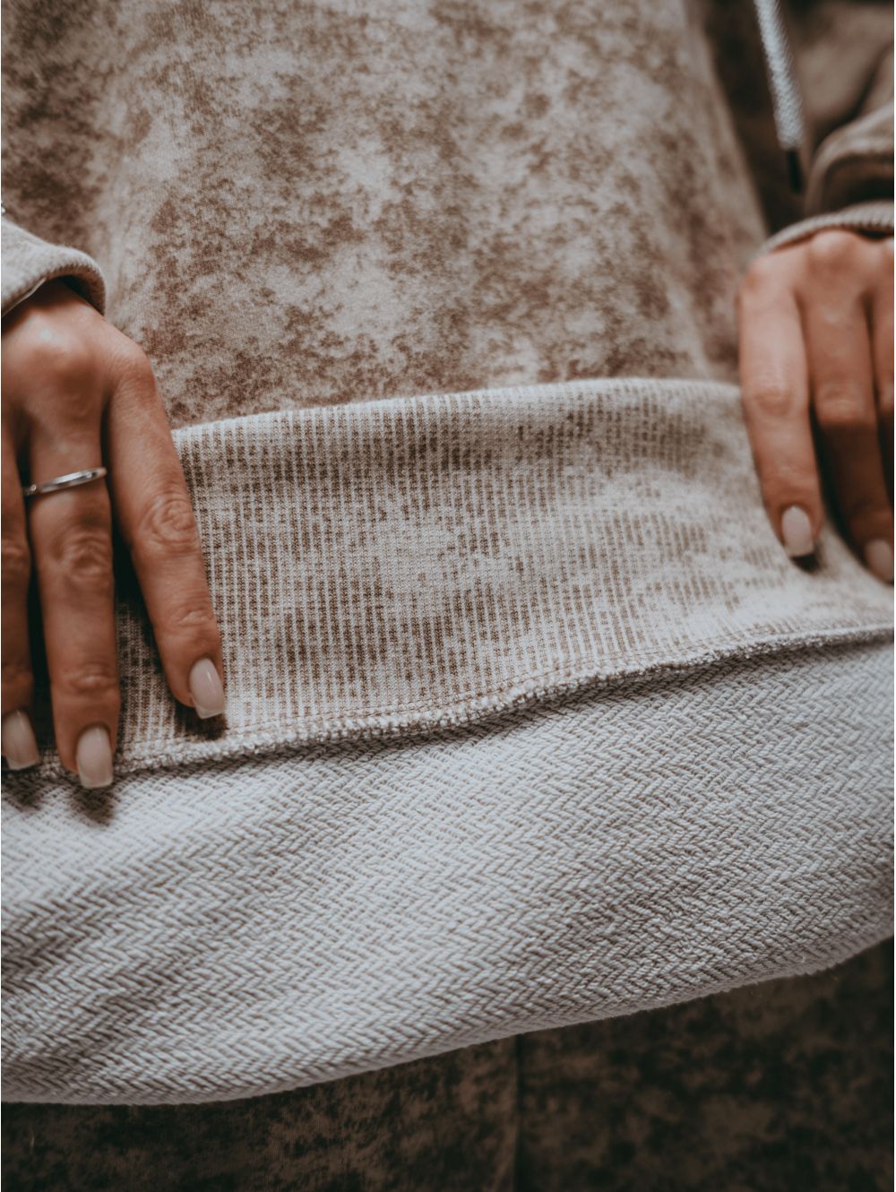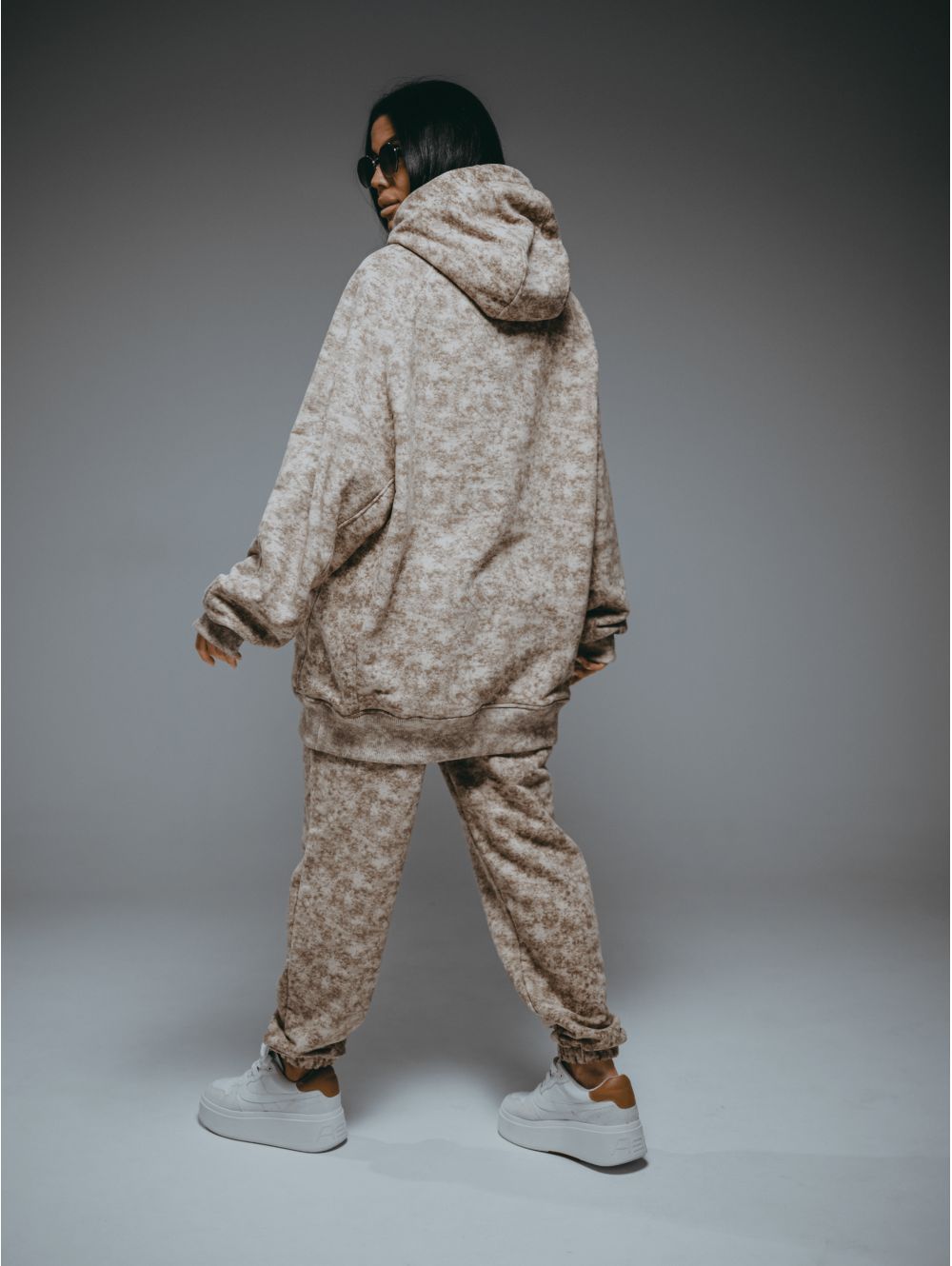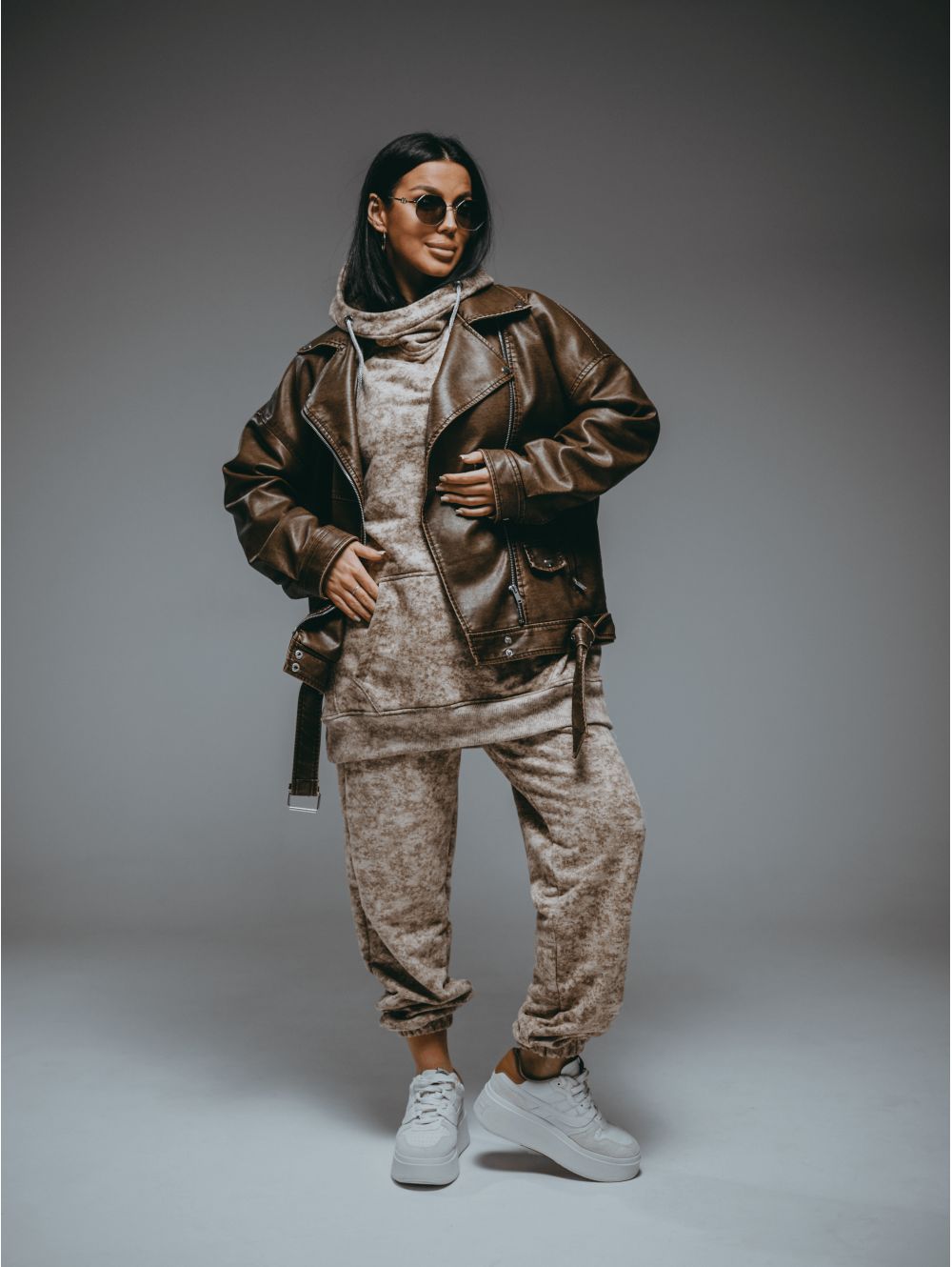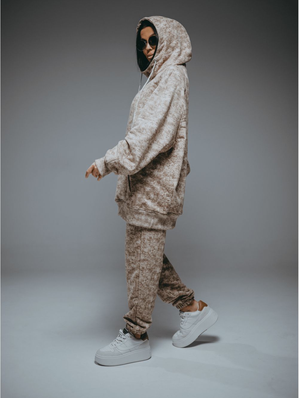 Худи – oversize кроя с притачным поясом по низу, с длинным рукавом реглан на манжете.