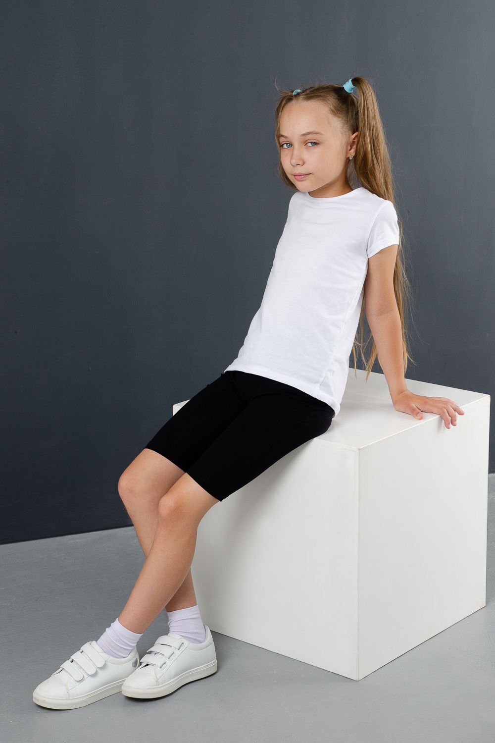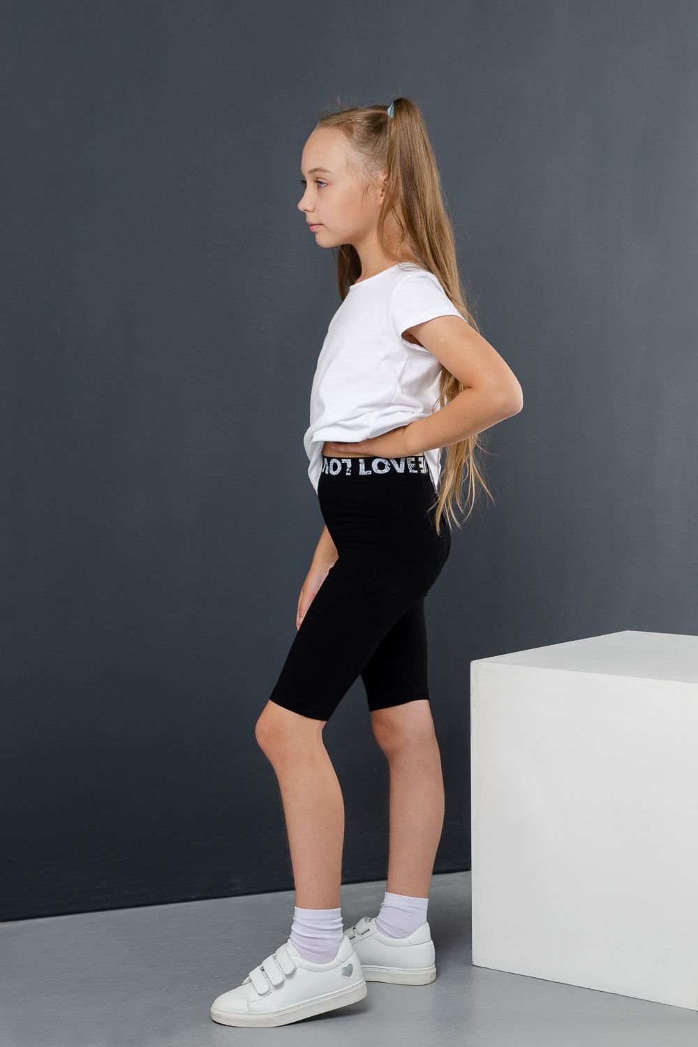 Бриджи-велосипедки облегающие, длинной выше колена, сверху на декоративной резинке.