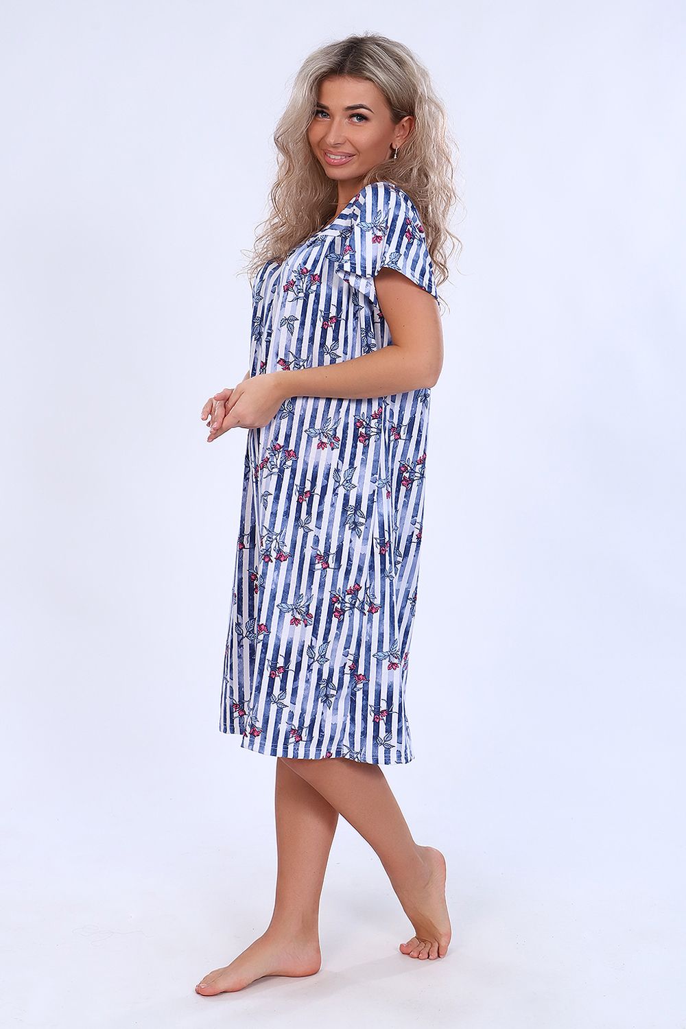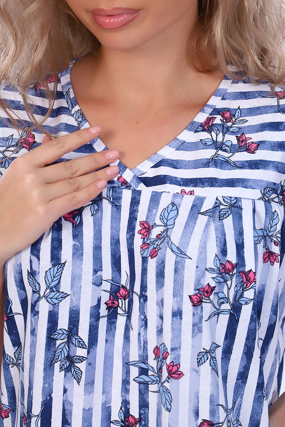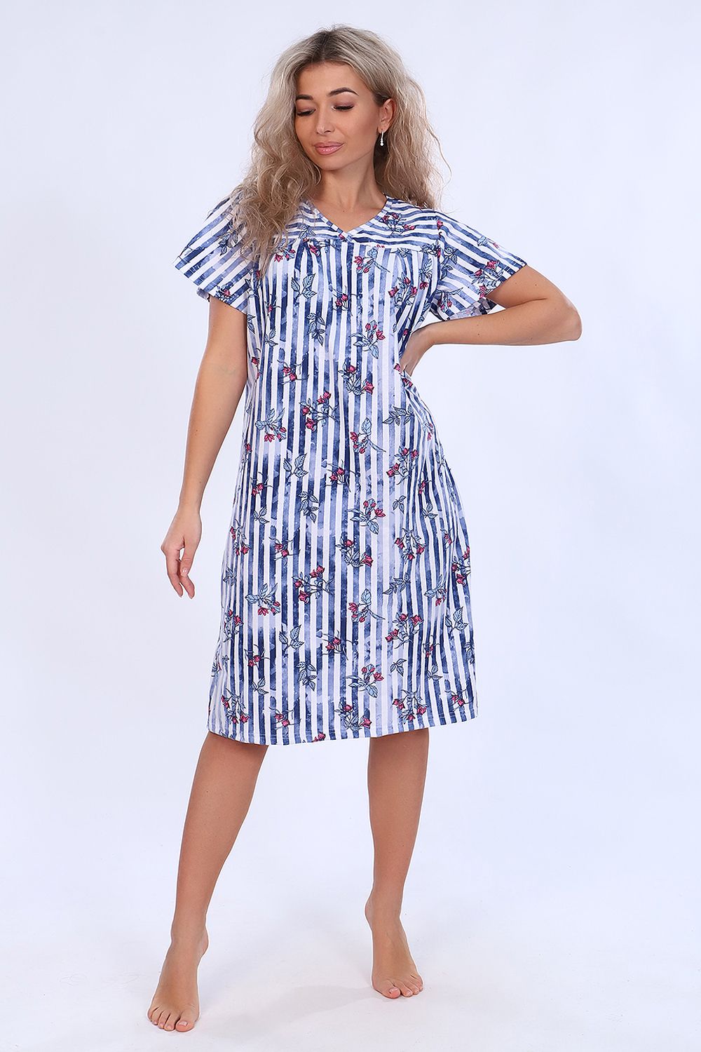Сорочка свободного кроя с отрезной кокеткой. По линии груди заложено по три складки с каждой стороны. Короткие рукава крылышки. Необходимый элемент домашнего гардероба. Комфортна для повседневной носки и сна. Рост модели на фото 165см, размер 44