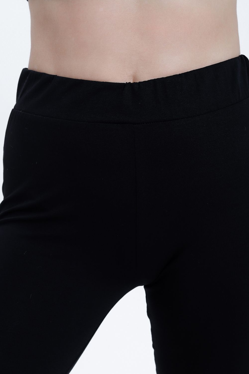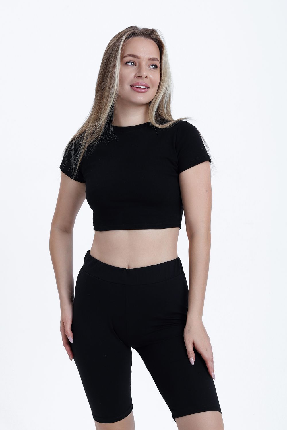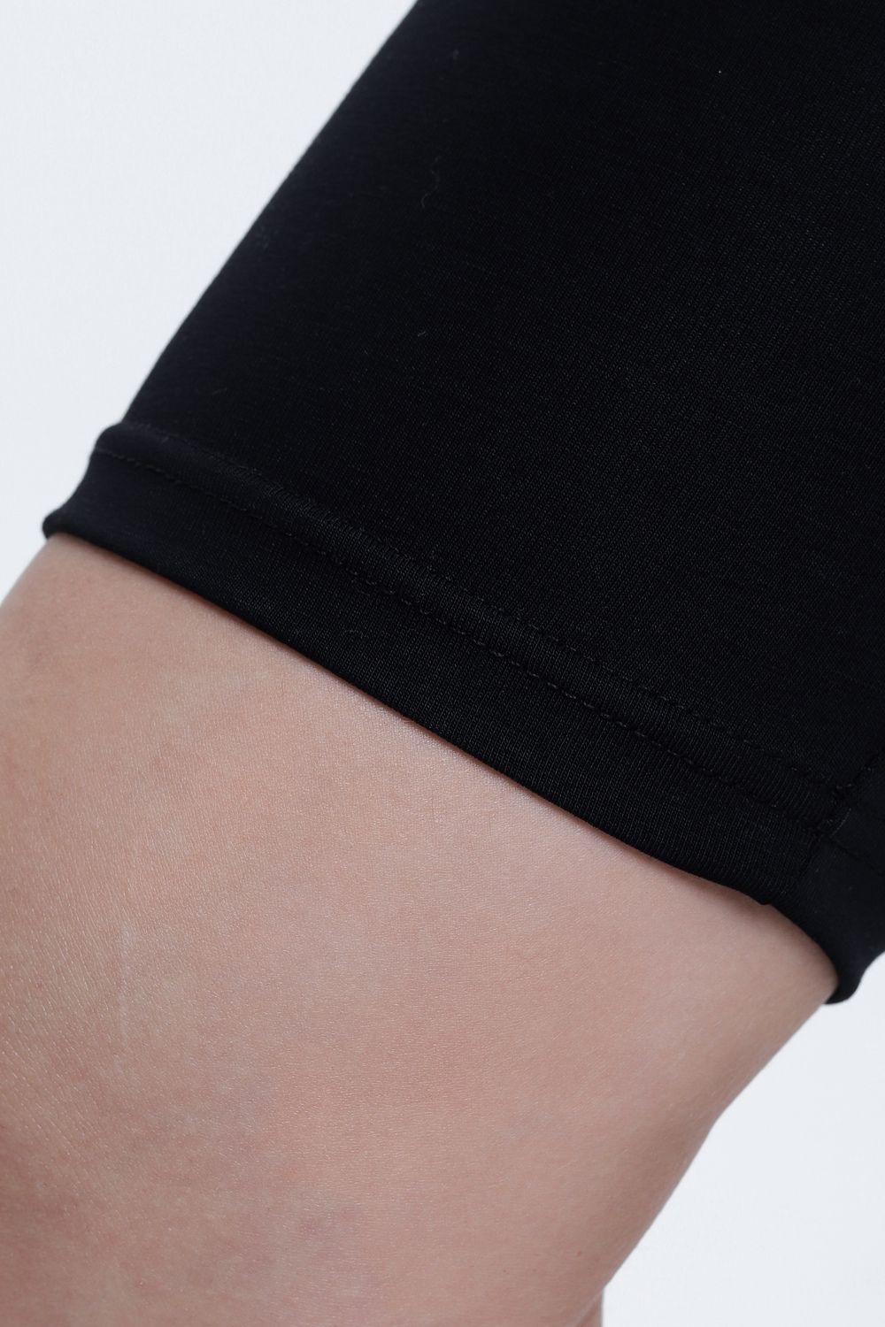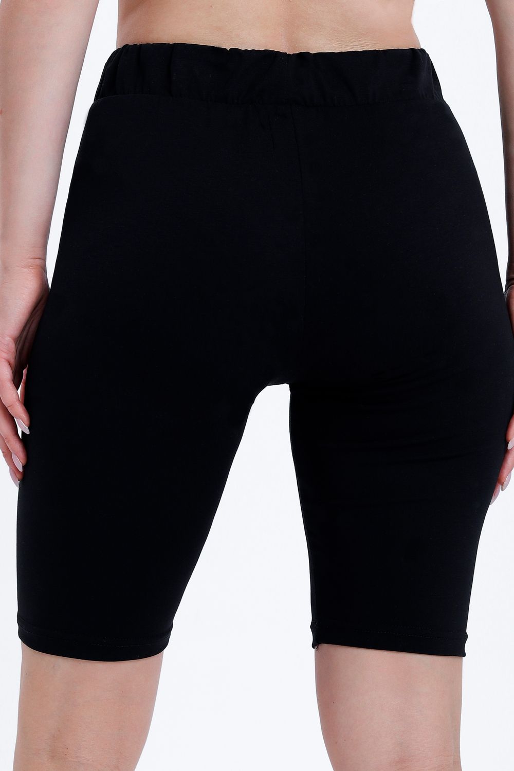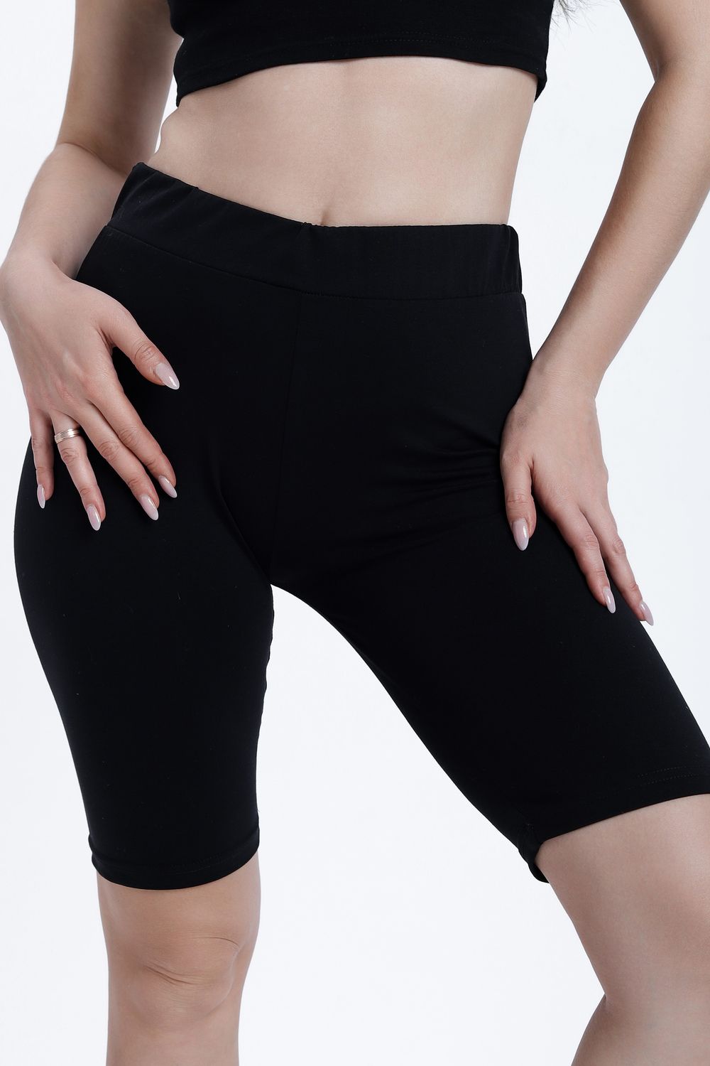 Велосипедки облегающего силуэта, с высокой линией талии. Пояс широкий отрезной с эластичной тесьмой внутри. Нижний срез обработан швом вподгибку.