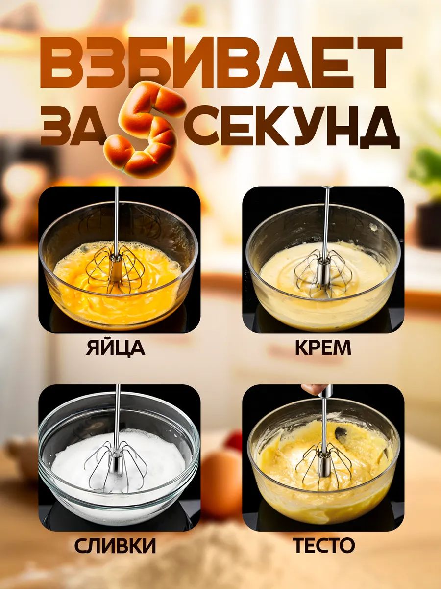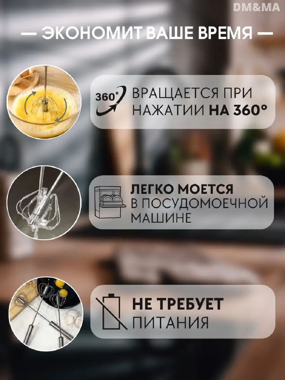 Нажимной полуавтоматический венчик - это универсальный инструмент для приготовления различных кулинарных блюд. Он идеально подходит для взбивания яиц, белка, жидких соусов, молока и теста. Венчик выполнен из нержавеющей стали, что делает его прочным и долговечным. Он компактный и маленький по размеру, что позволяет хранить его в любой кухонной посуде или коробке. 35см