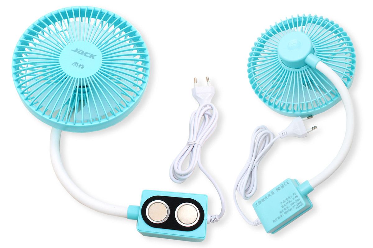 Портативный настольный вентилятор на гибкой ножке с удобным и надежным креплением на два магнита, оснащен защитной силиконовой накладкой. Три режима мощности (макс. 9 Вт). Подключается к стандартной сети питания. Обеспечивает естественный и приятный обдув за счет пяти лопастей, работает бесшумно. На корпусе расположена сенсорная кнопка управления.