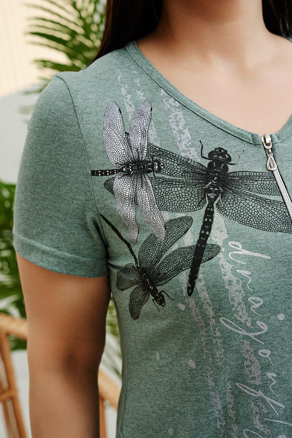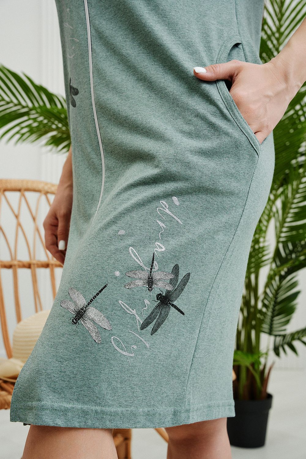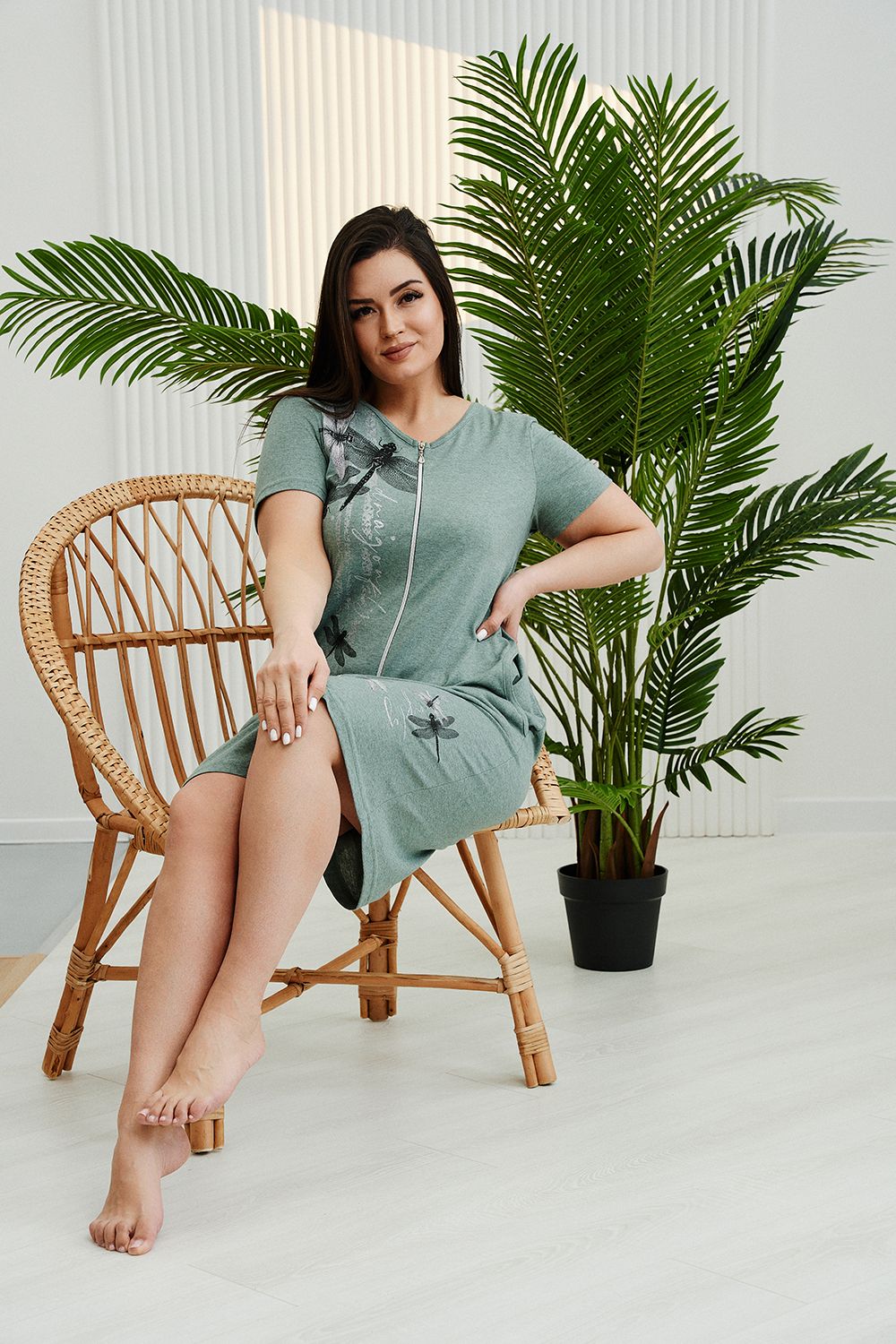 Халат женский полуприлегающего силуэта. Рукав втачной короткий. Вырез Y-образный. На полочках внутренние карманы. Оригинальный стильный принт на полочках.
