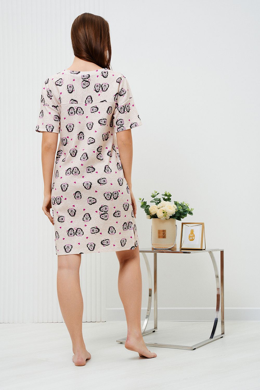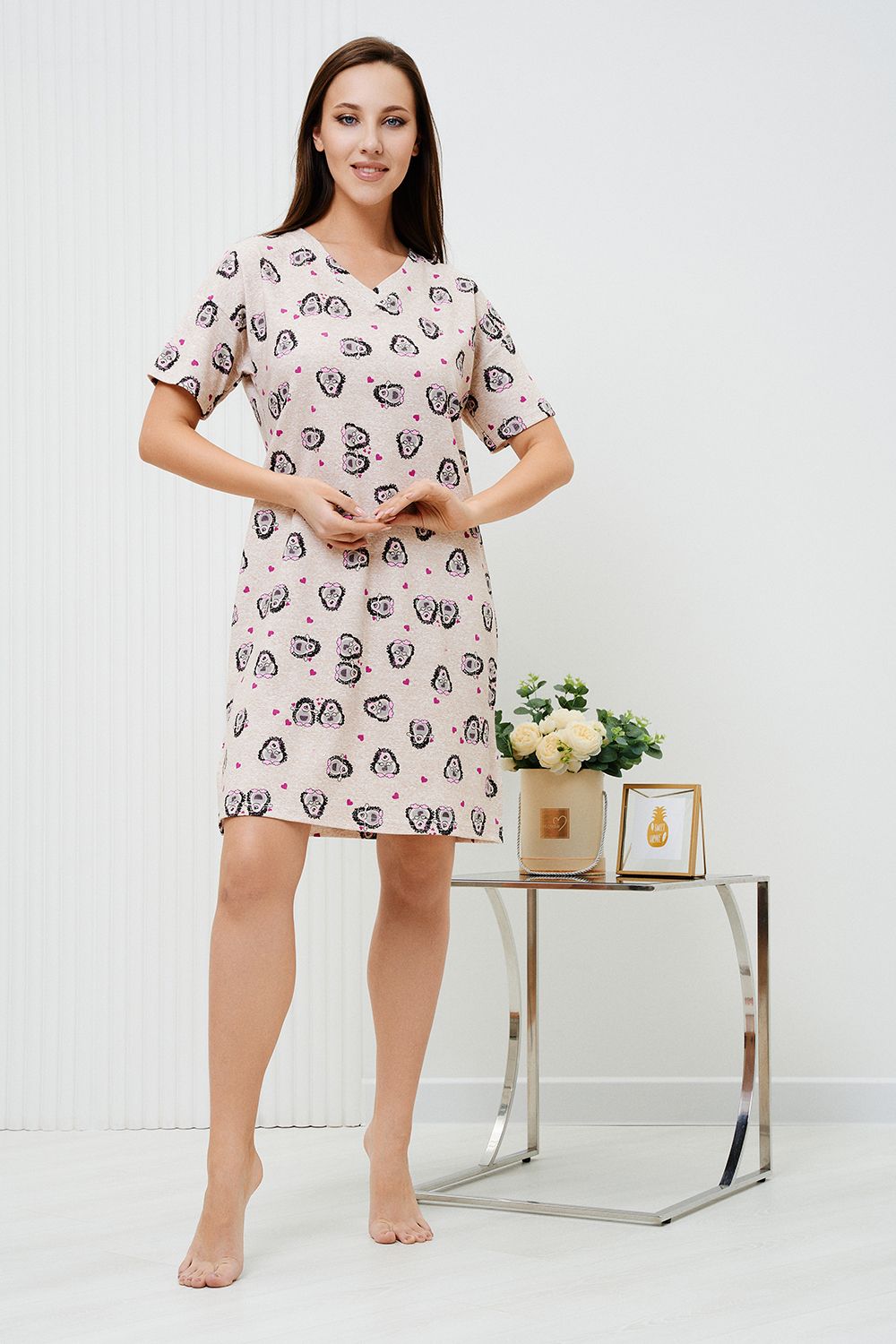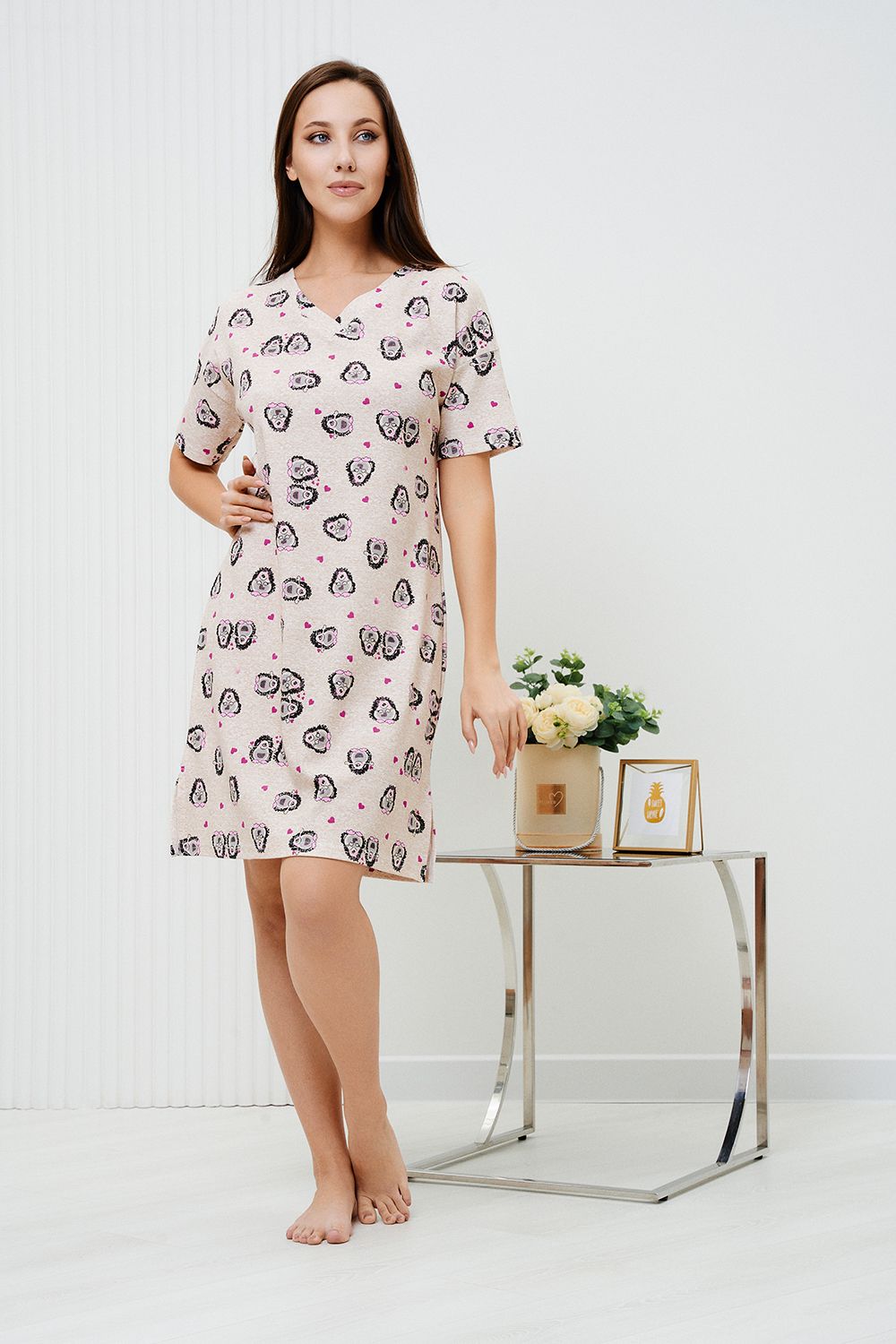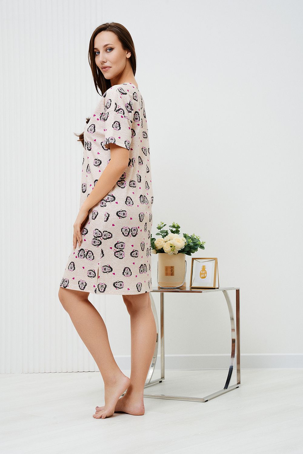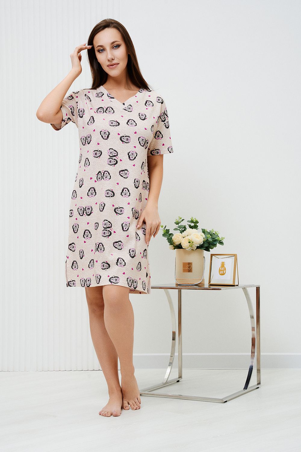 Туника прямого силуэта, с V-образной горловиной. Рукав короткий. Спинка с кокеткой. В нижней части боковых швов обработаны разрезы. Горловина обработана обтачкой из основного полотна.
