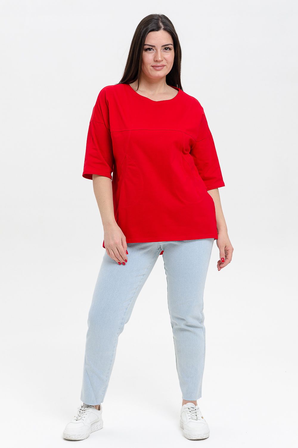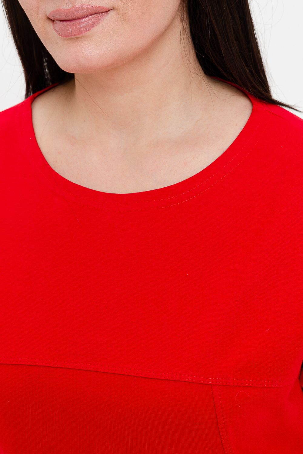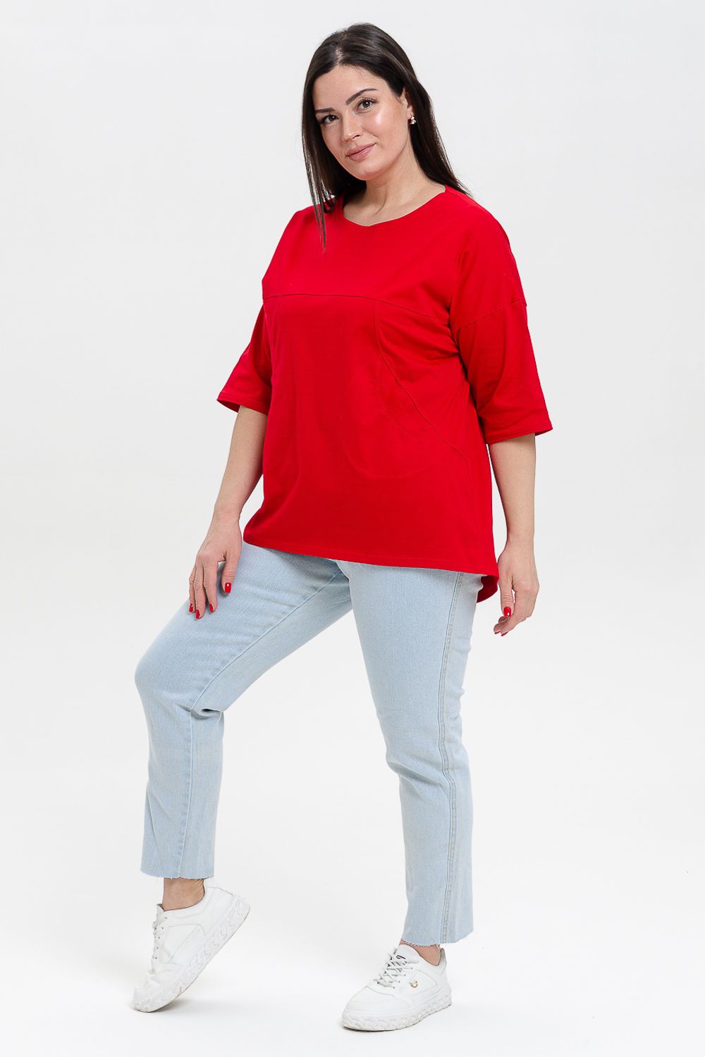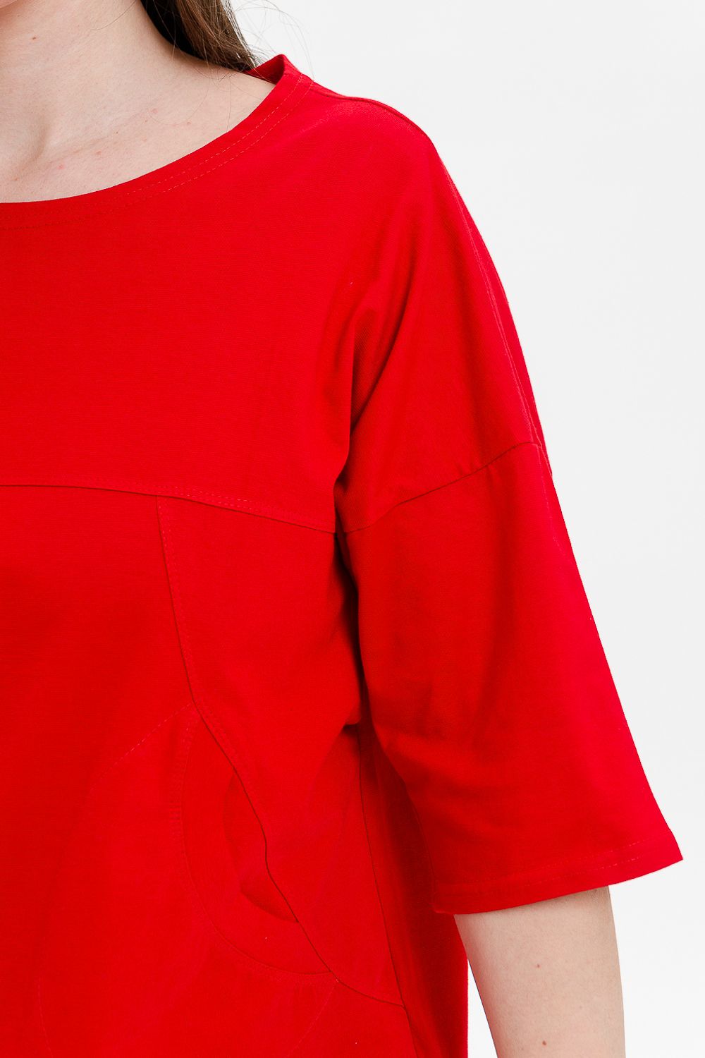 Туника женская полуприлегающего силуэта. Горловина округлая. Рукав цельнокроенный со швом, 3/4. На полочке кокетка. Внутренний карман с обтачкой в фигурном шве притачивания боковой части полочки к нижней части полочки. Спинка длиннее полочки.