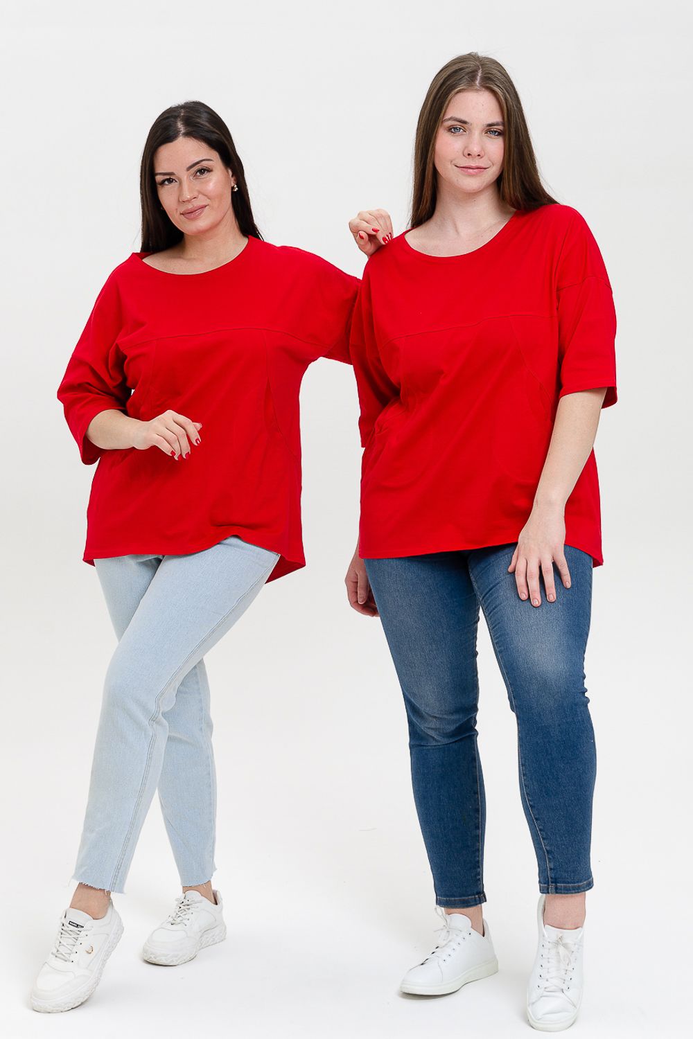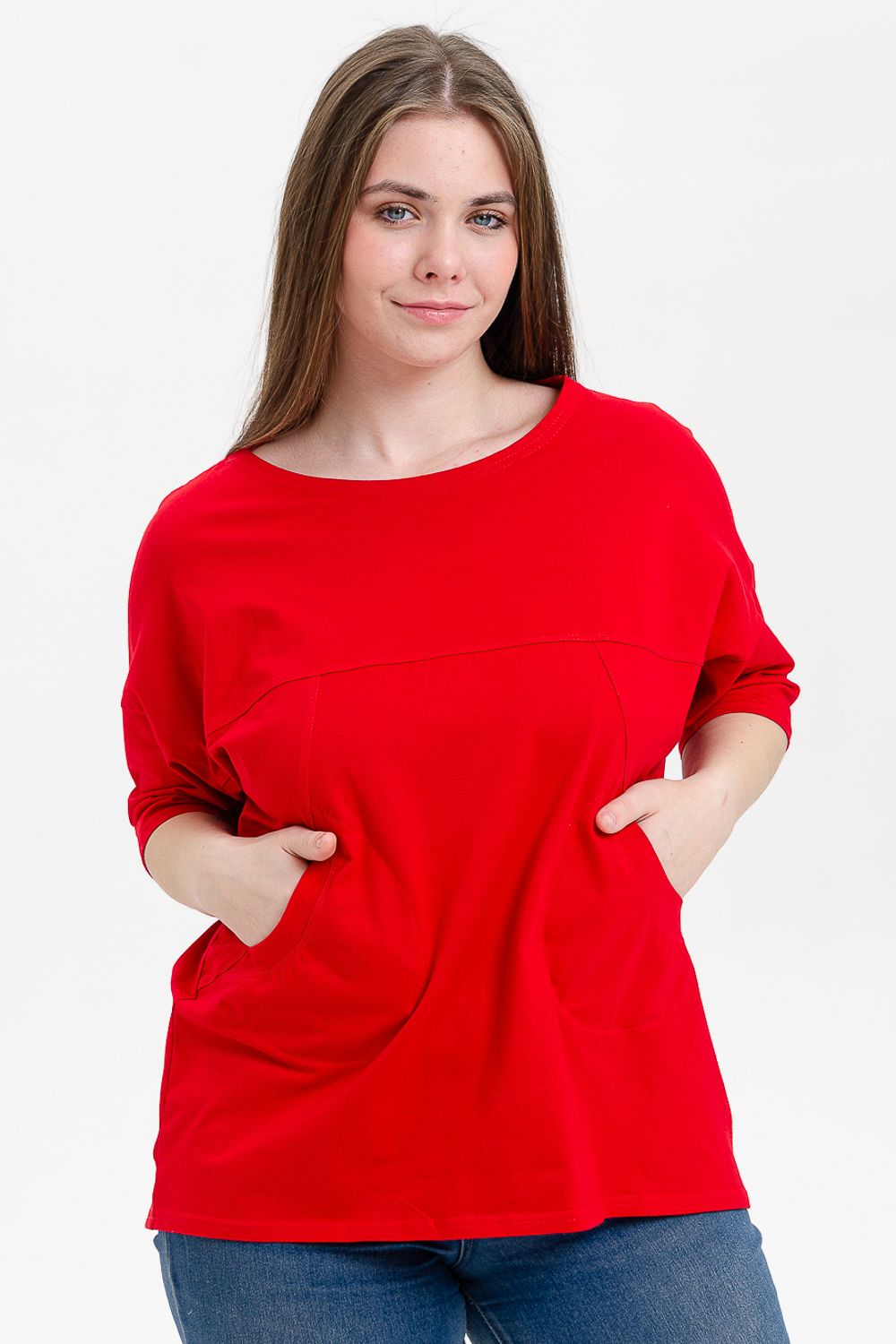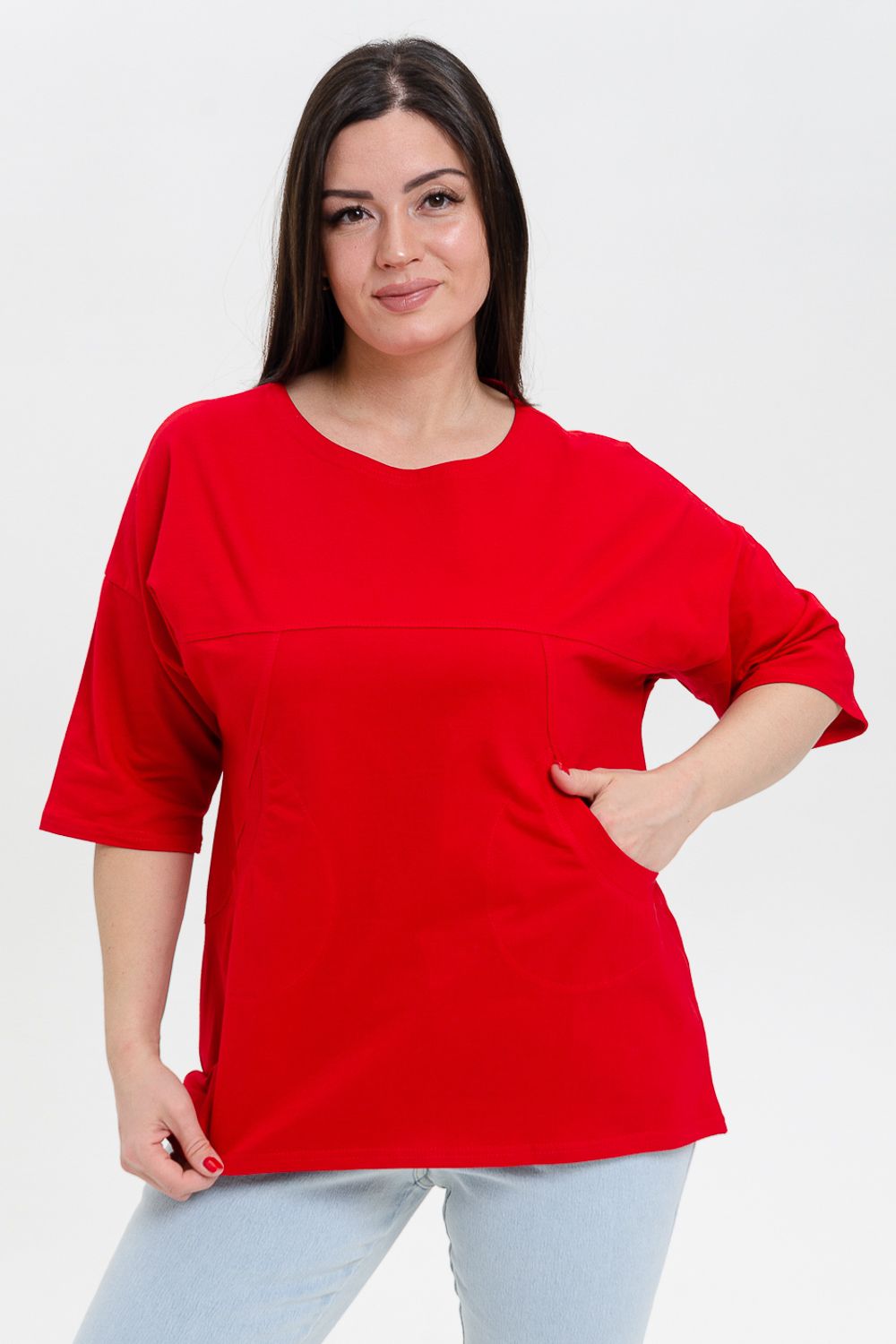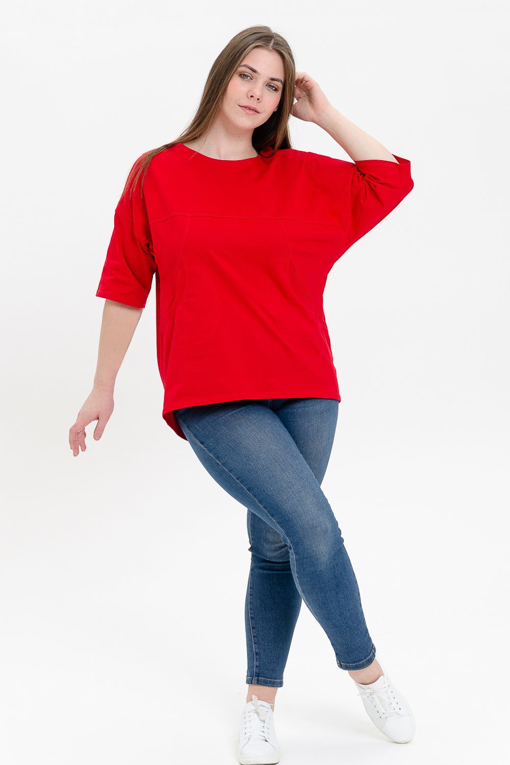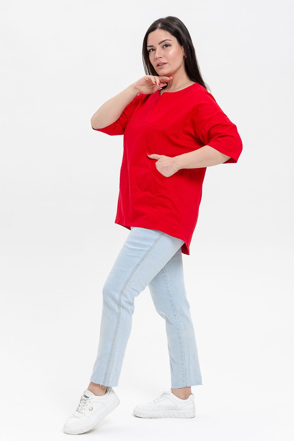Туника женская полуприлегающего силуэта. Горловина округлая. Рукав цельнокроенный со швом, 3/4. На полочке кокетка. Внутренний карман с обтачкой в фигурном шве притачивания боковой части полочки к нижней части полочки. Спинка длиннее полочки.
