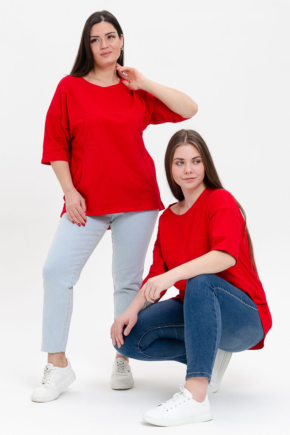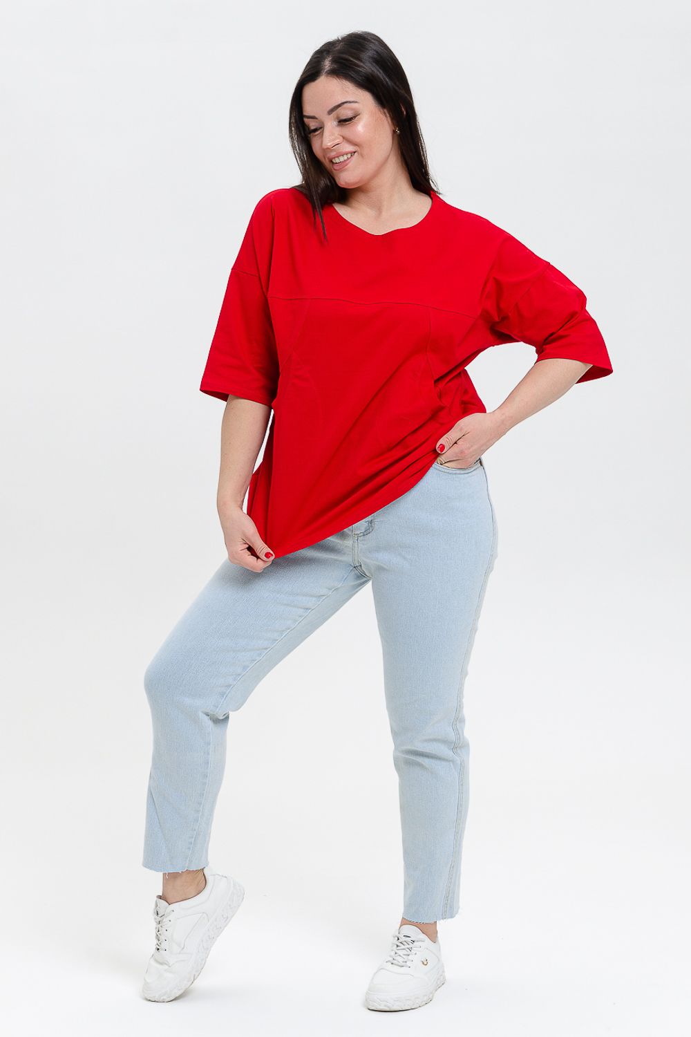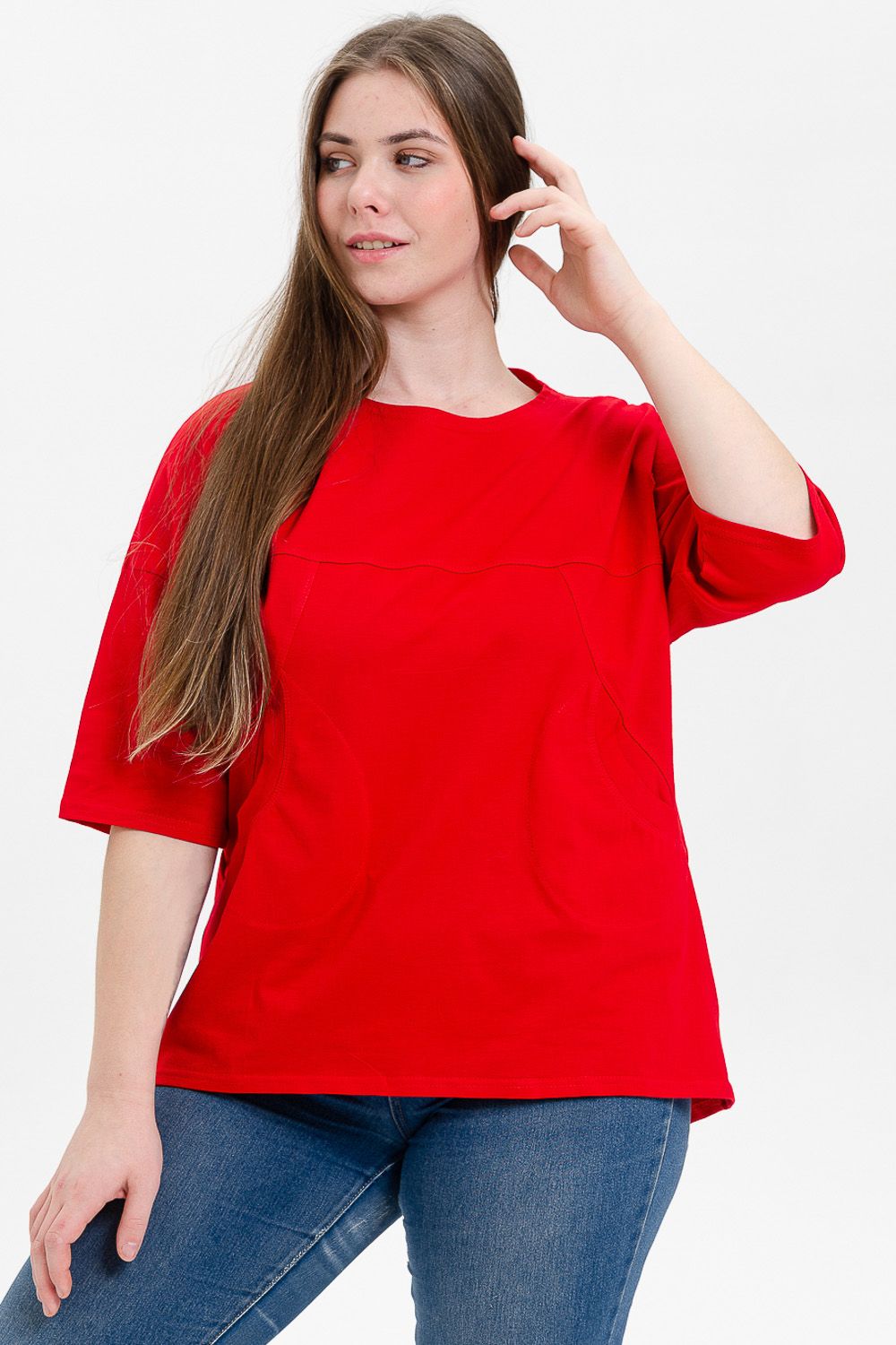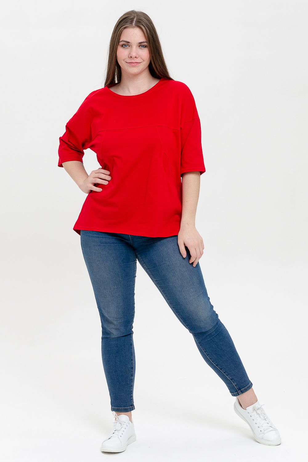 Туника женская полуприлегающего силуэта. Горловина округлая. Рукав цельнокроенный со швом, 3/4. На полочке кокетка. Внутренний карман с обтачкой в фигурном шве притачивания боковой части полочки к нижней части полочки. Спинка длиннее полочки.