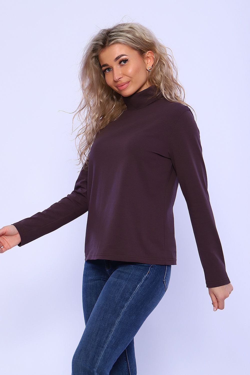 Женская водолазка изготовлена из трикотажного полотна с добавлением эластана. Базовая водолазка прямого кроя с воротником стойкой , прекрасное дополнение к зимнему обрразу.