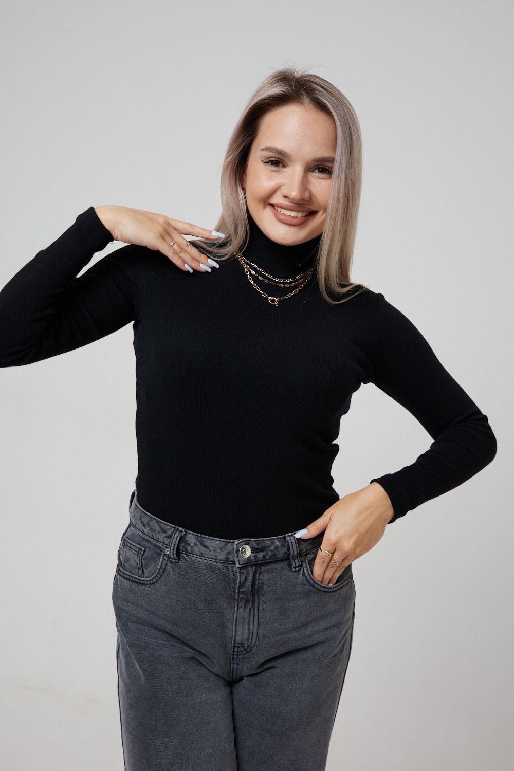 Водолазка идеально сидит на фигуре и подходит для любого сезона. Она отлично сочетается с одеждой любого времени года и подходит для всех типов фигур.