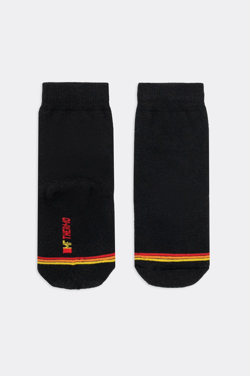Детские термо носки, изготовленные по специальной технологии, позволяющей аккумулировать тепло. Гладкие детские носки из термопряжи. Специальный полиэстер Termolite отлично сохраняет и удерживает тепло, мгновенно отводит влагу и делает изделие долговечным, а вискоза Viloft дарит полотну необычайную мягкость и увеличивает его прочность в мокром состоянии. Рекомендуем для прохладной погоды!