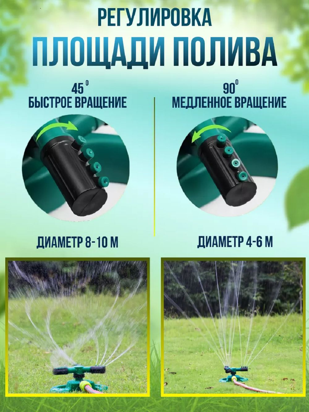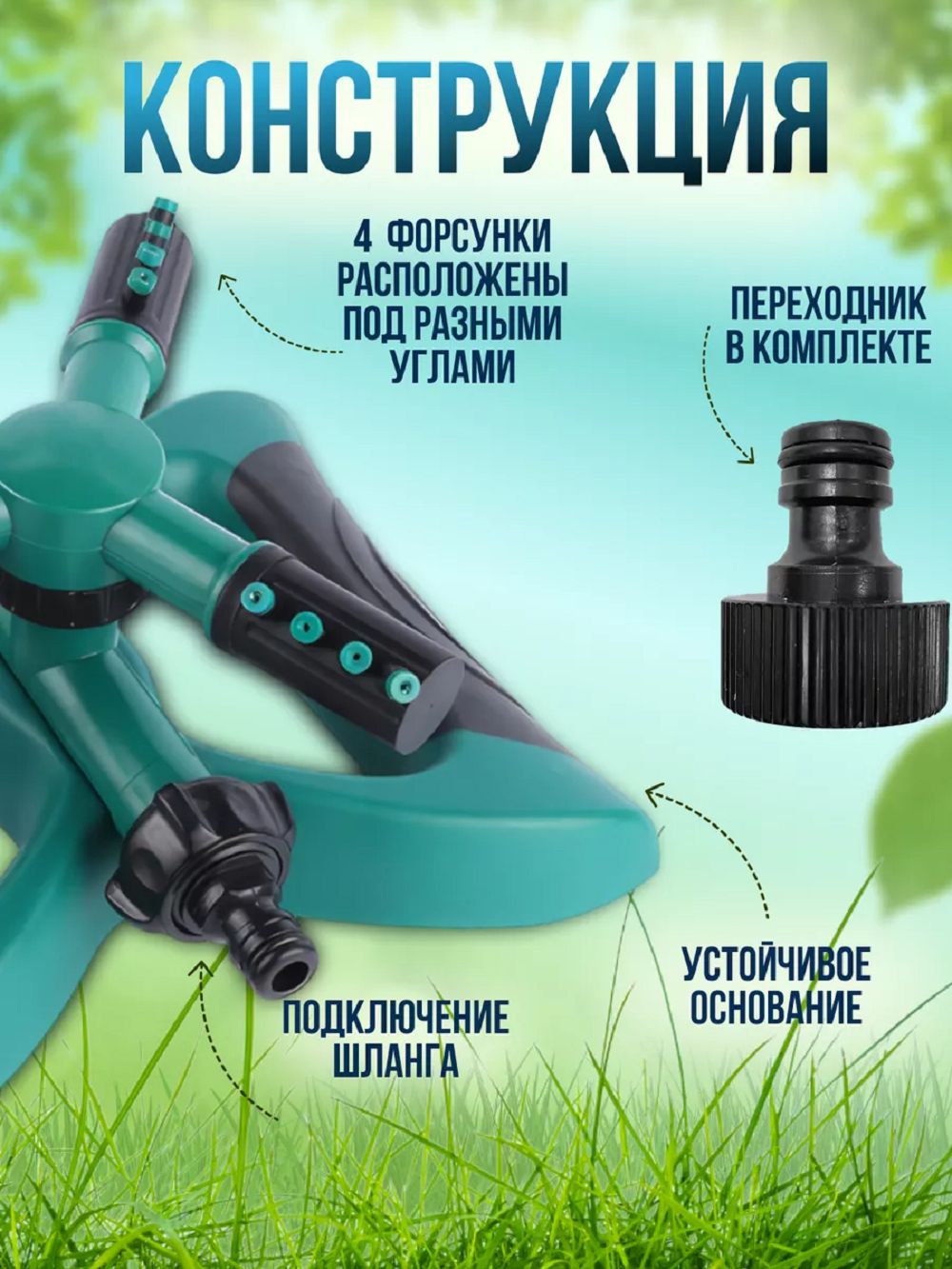 Система кругового полива для дачи и сада. Дождеватель для огорода или теплицы избавит от хлопот и сэкономит воду садоводам. Ороситель грядок можно установить как единично, так и в комплексе сразу несколько штук. Скорость вращения разбрызгивателя автополива, очень просто настраивается пользователем путем поворота форсунок по часовой стрелки или против. Веерный газонный опрыскиватель устанавливается путем присоединения шланга водоснабжения. Поливалки фонтанного типа это удобно, практично и экономно, замена капельных систем.