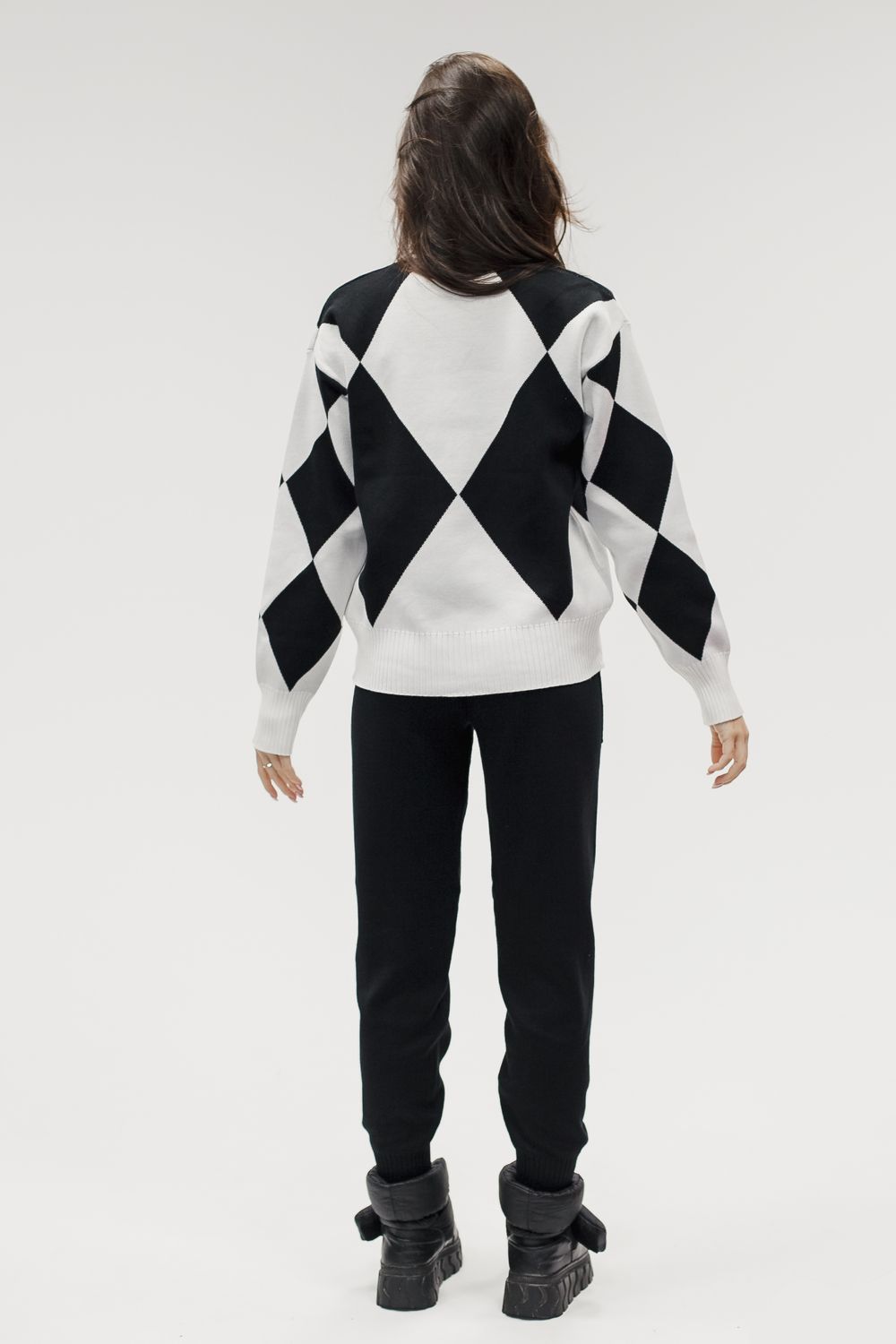 Этот тёплый женский вязаный костюм — гармоничный комплект из свитера и брюк, выполненный из плотной, мягкой и эластичной пряжи (состав: 30% хлопок, 40% вискоза, 30% полиэстер), который надёжно сохраняет тепло и при этом приятно прилегает к телу. Свитер свободногос аккуратной воротниковой стойкой средней высоты визуально стройнит и обеспечивает дополнительную защиту от холода, манжеты и нижняя кромка обработаны резинкой для лучшей посадки и сохранения формы. Плечи оформлены со скосом или лёгким «полупритёком» для комфортной посадки на фигуры разных типов; брюки средней посадки с эластичным поясом и внутренней мягкой тесьмой или шнурком обеспечивают индивидуальную регулировку, прямой или слегка зауженный книзу силуэт свободно сидит по бедру и книзу, благодаря эластичности материала изделие «тянется» и адаптируется под параметры от 40 до 46 размера и комфортно смотрится на росте до 160 см, при этом посадка и длина оптимизированы под невысокий рост — брюки не требуют сильной подшивки, а длина пуловера рассчитана так, чтобы сочетаться с верхней одеждой; в дизайне предусмотрены функциональные детали: скрытые боковые или накладные карманы в брюках, аккуратные декоративные швы или узорная вязка на передней части пуловера, что добавляет текстуре и визуального интереса, при этом декоративность не мешает повседневному использованию; палитра — нейтральные базовые оттенки (беж, серый, графит, тёмно-синий) и несколько насыщенных цветовых акцентов (бордо, изумруд, горчичный), которые легко сочетаются с верхней одеждой и аксессуарами; материал и плотная вязка делают костюм универсальным для осенне-зимнего периода и прохладной весны — он отлично подойдёт как для прогулок и поездок, так и для уютных домашних вечеров или неофициальных встреч; уход: рекомендована деликатная стирка руками или в машине на щадящем режиме при температуре не выше 30°C, сушить в расправленном виде на горизонтальной поверхности, не отбеливать, при необходимости возможна бережная химчистка; благодаря продуманной посадке и использованию качественной пряжи комплект сохраняет форму и внешний вид даже при регулярной носке, подчёркивает женственность без лишней вычурности и станет практичным элементом гардероба тех, кто ценит комфорт, тепло и стиль.