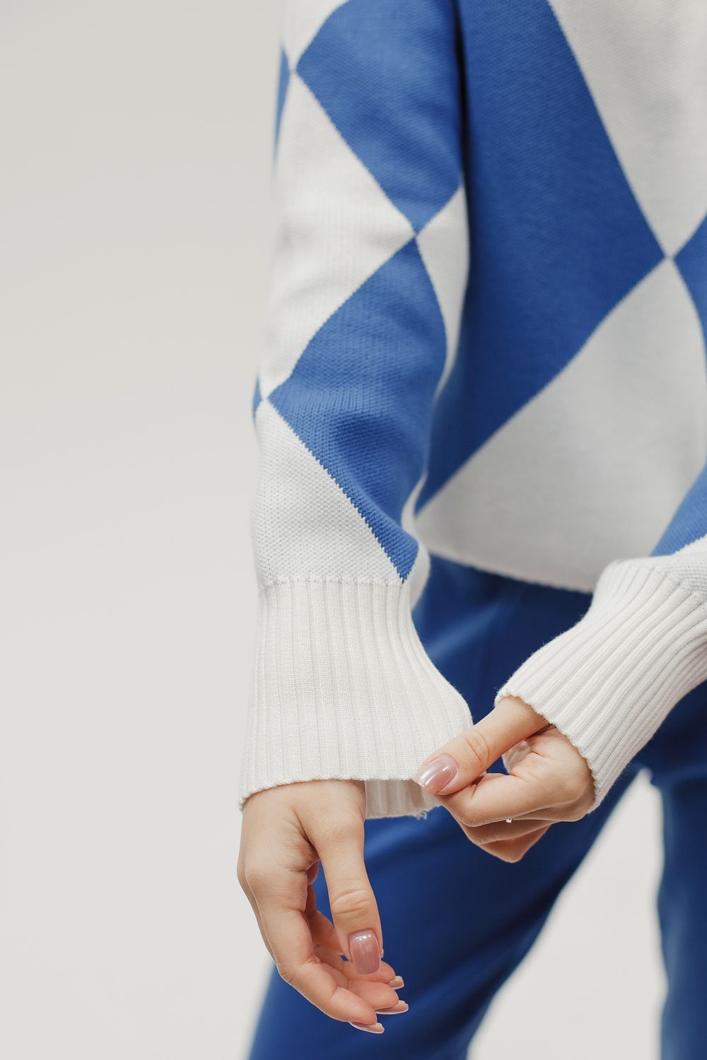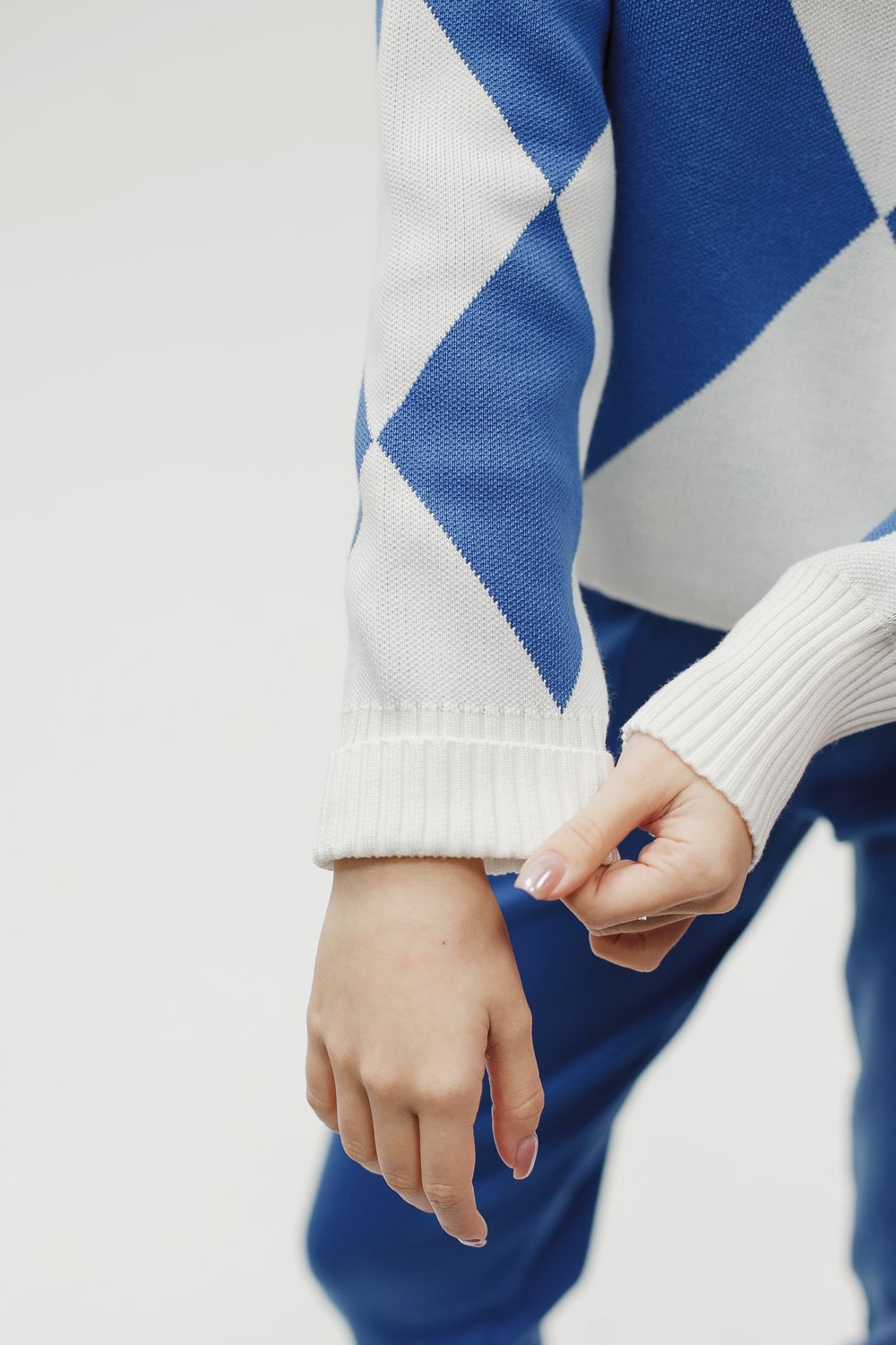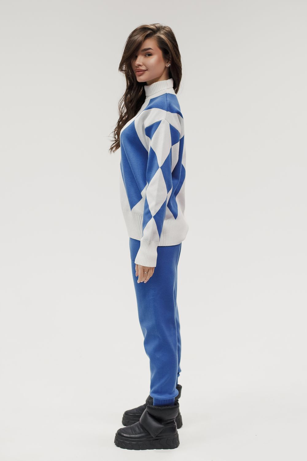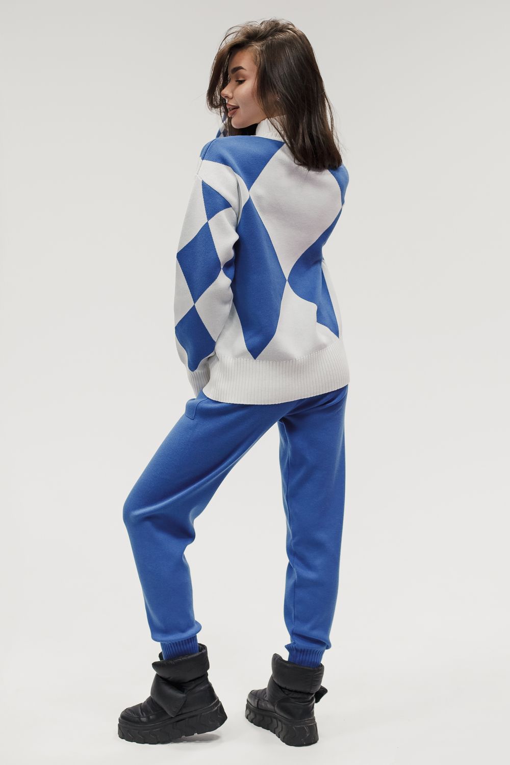 Вязаный костюм трикотажный с брюками - голубой