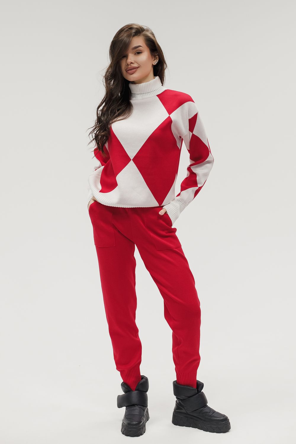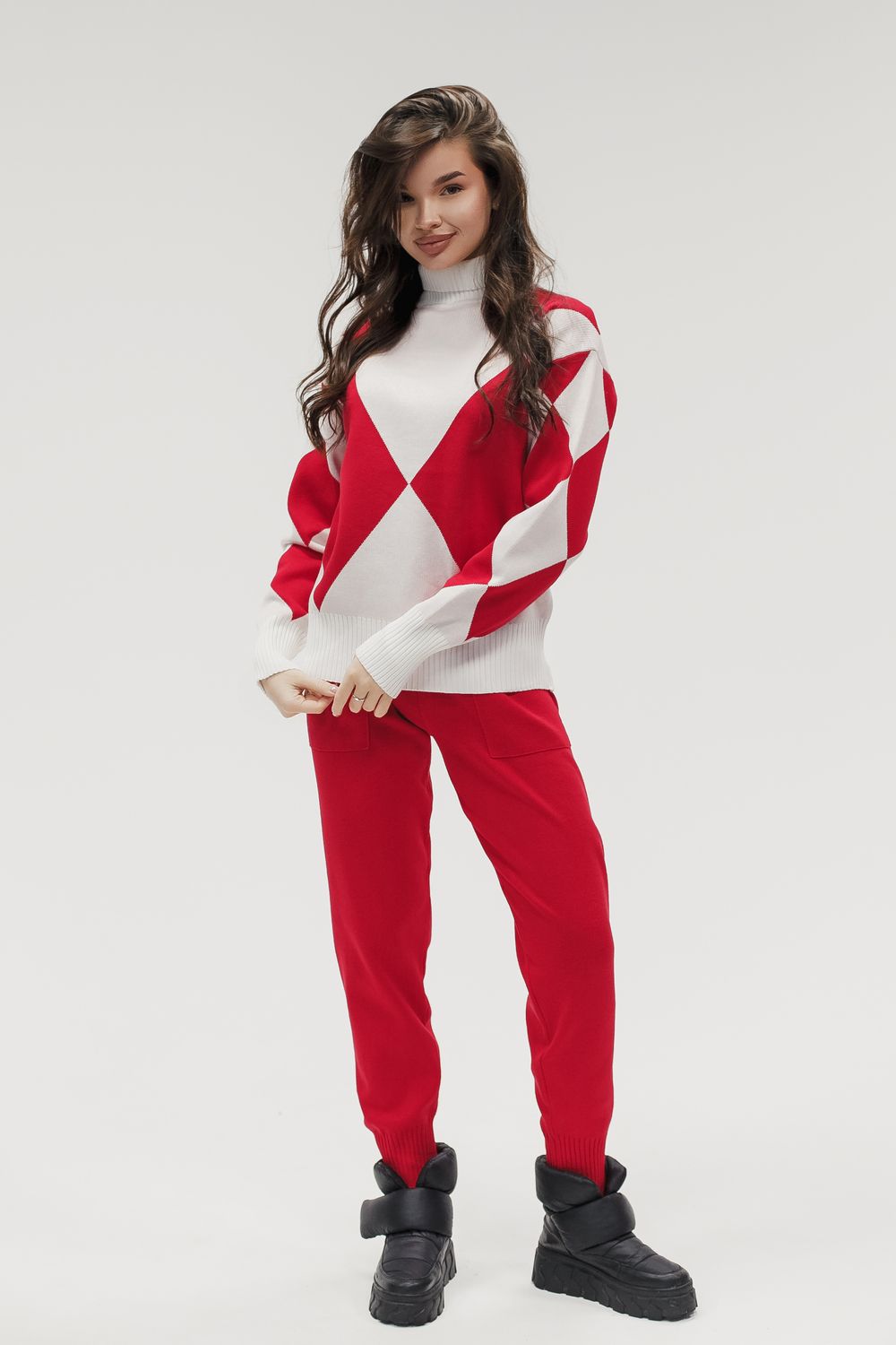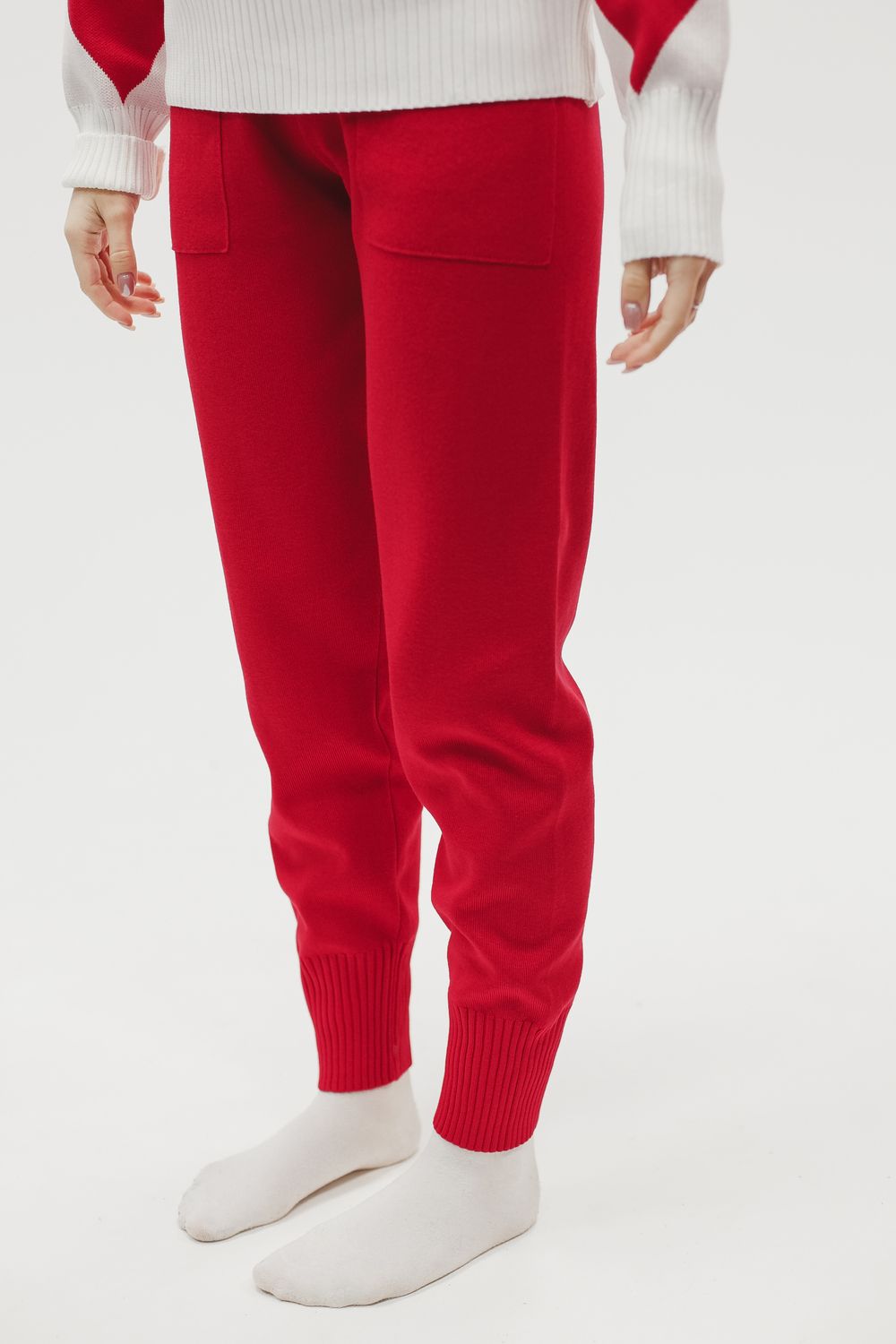 Вязаный костюм трикотажный с брюками - красный
