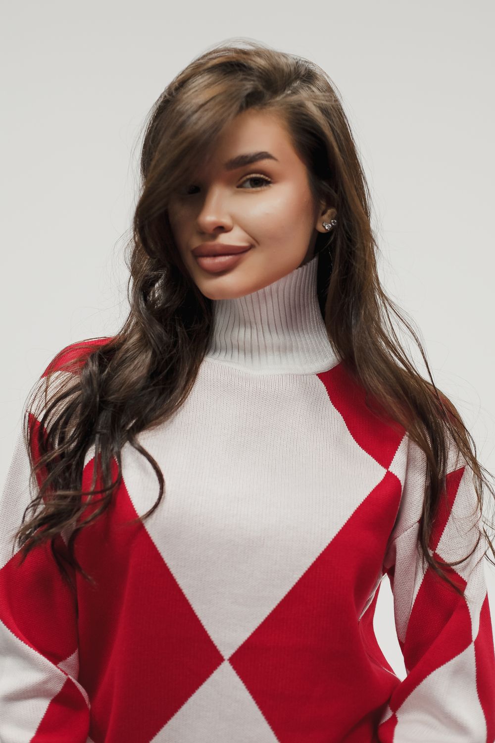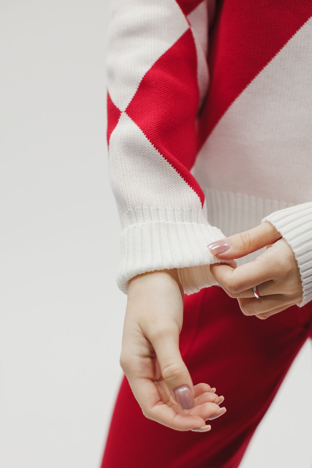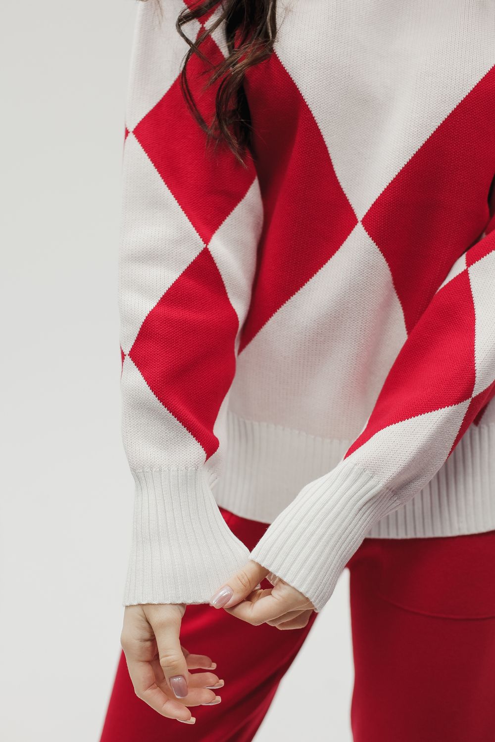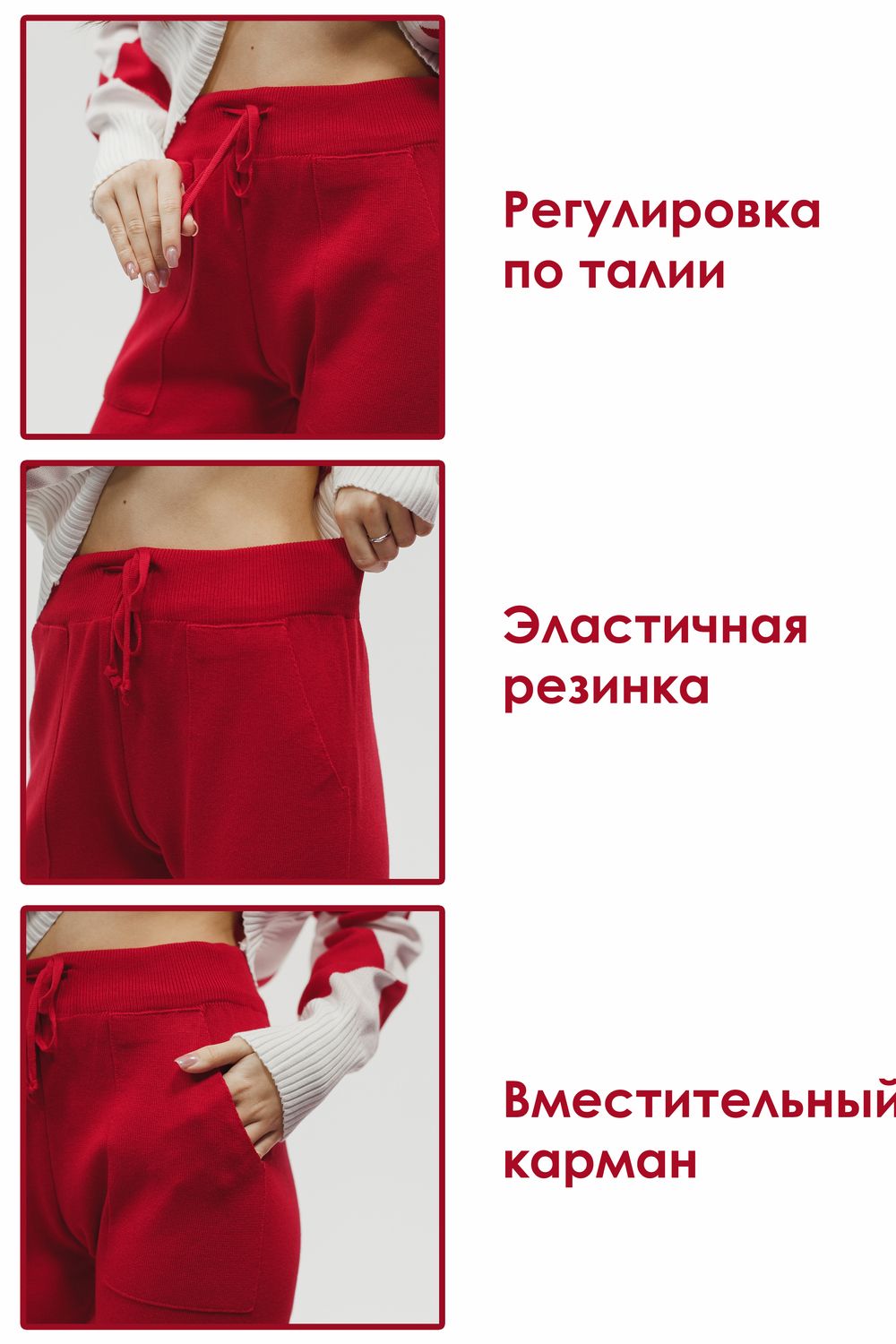 Вязаный костюм трикотажный с брюками - красный
