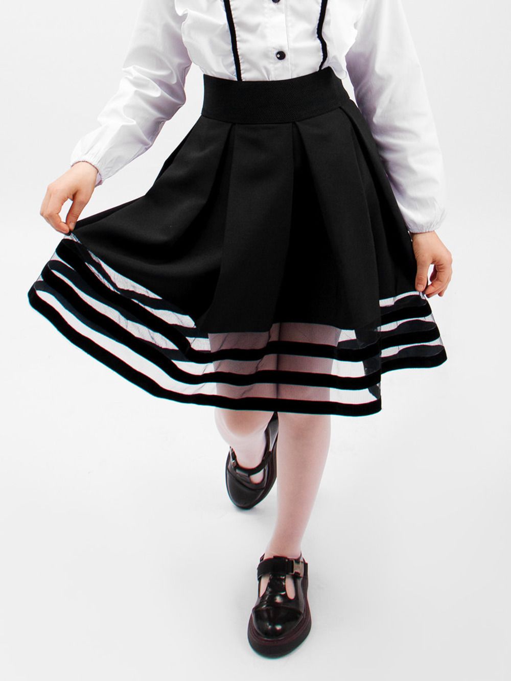 Юбка для девочки Соль&Перец в классическом стиле, с фатиновыми вставками. Модель с удобным широким поясом - резинкой, сзади застегивается на молнию. Безупречно сочетается с любой блузкой и идеально вольется в современный школьный гардероб.