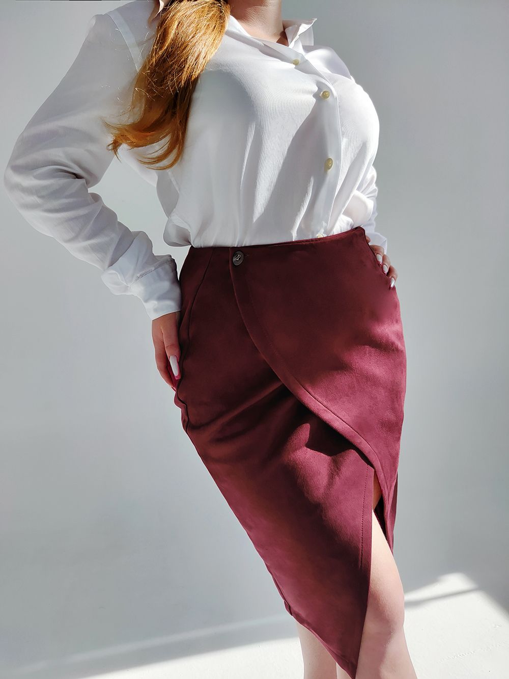 Юбка на запах замшевая 3202 - винный