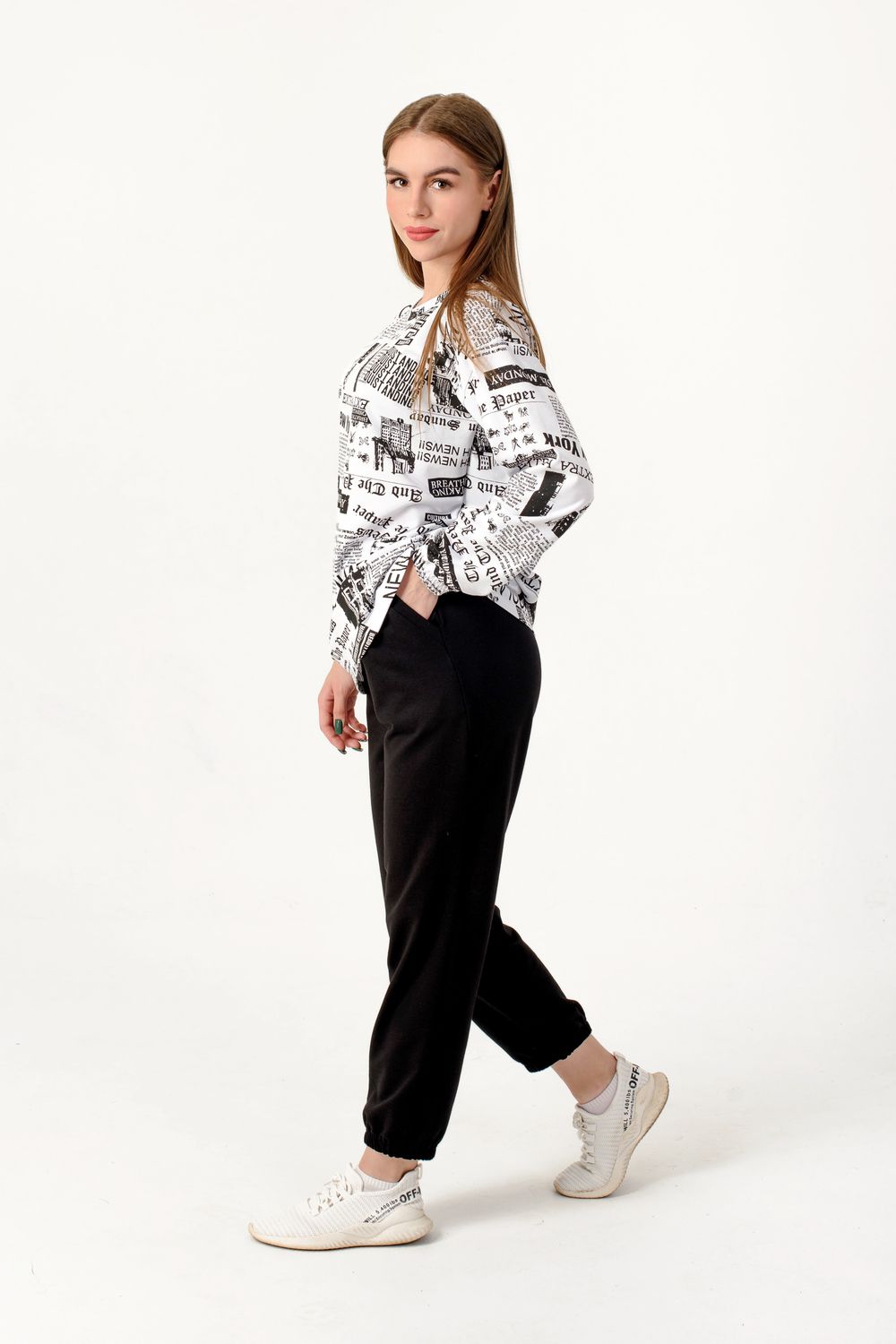 Стильный женский костюм со свитшотом и прямыми штанами на резинке с карманами. Внизу они собраны на резинку в виде манжеты. Поможет Вам быть в тренде этого сезона! Брюки подходят для любого типа фигуры, скрывают ее недостатки и подчеркивают достоинства. Костюм из мягкой кофты со спущенным рукавом и брюками прекрасно подойдет для вечерних и повседневных образов, для прогулок и занятий спортом, а также в качестве костюма для дома. Такой фасон может быть женственным и легким. Брюки из футера очень удобны в качестве повседневной одежды, не сковывают движения. Костюм двойка выполнен из плотной ткани футер 2х нитка (петля), не теряет форму после многочисленных стирок, не скатывается.